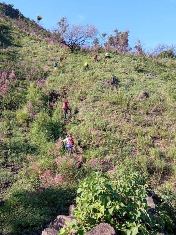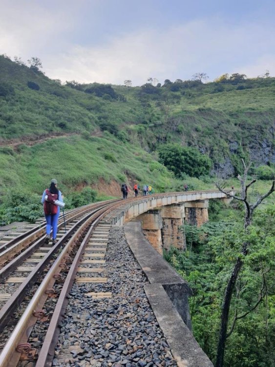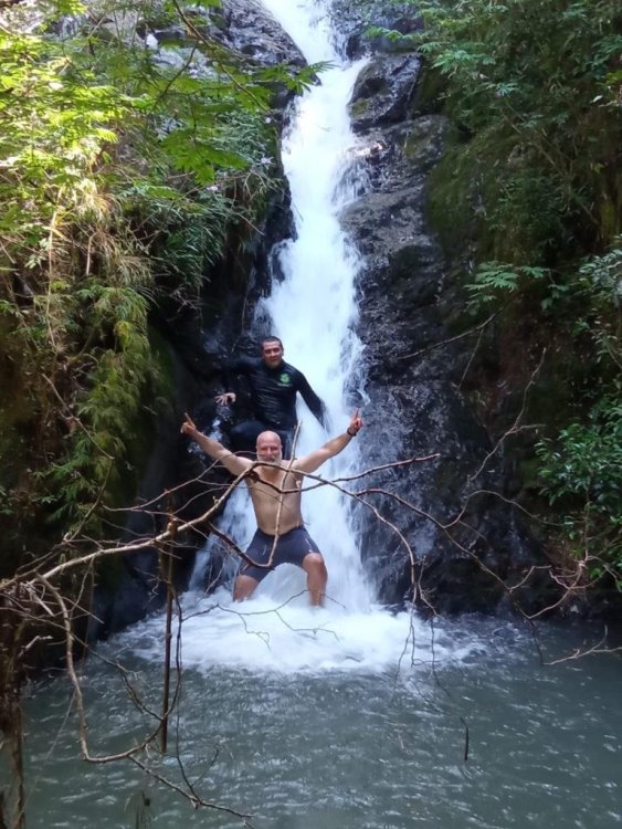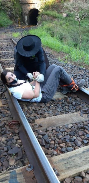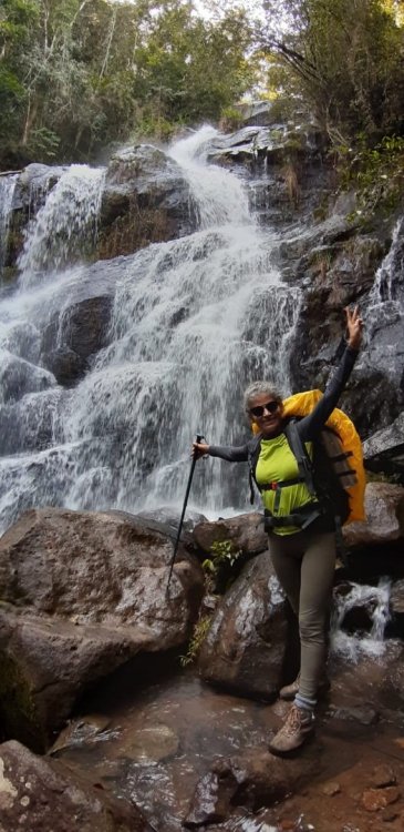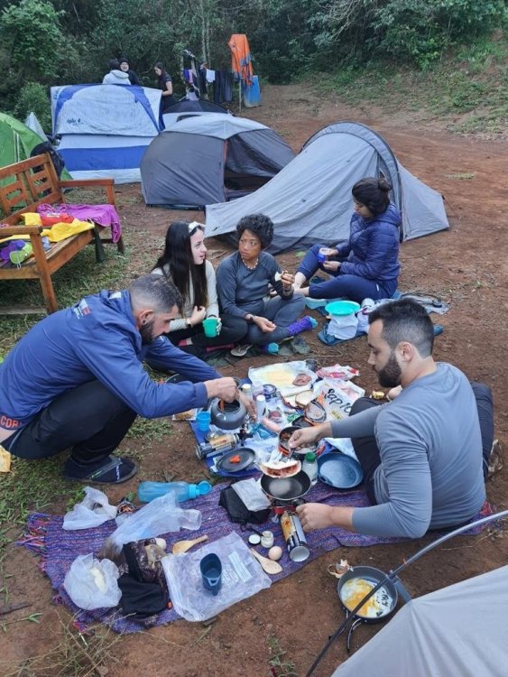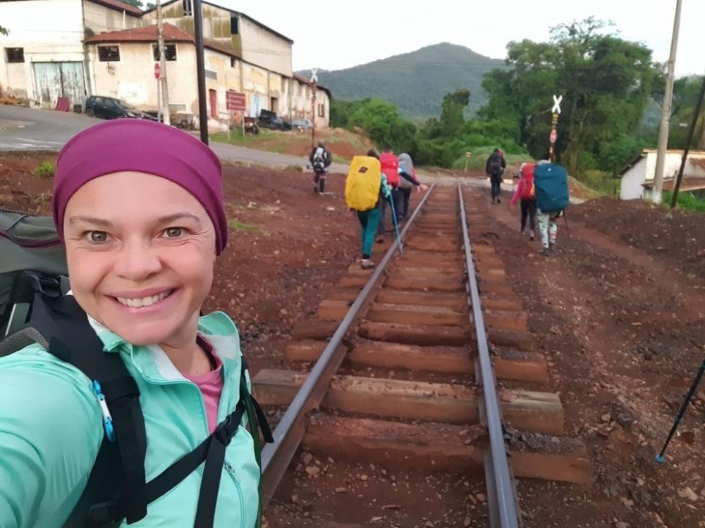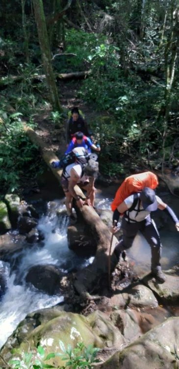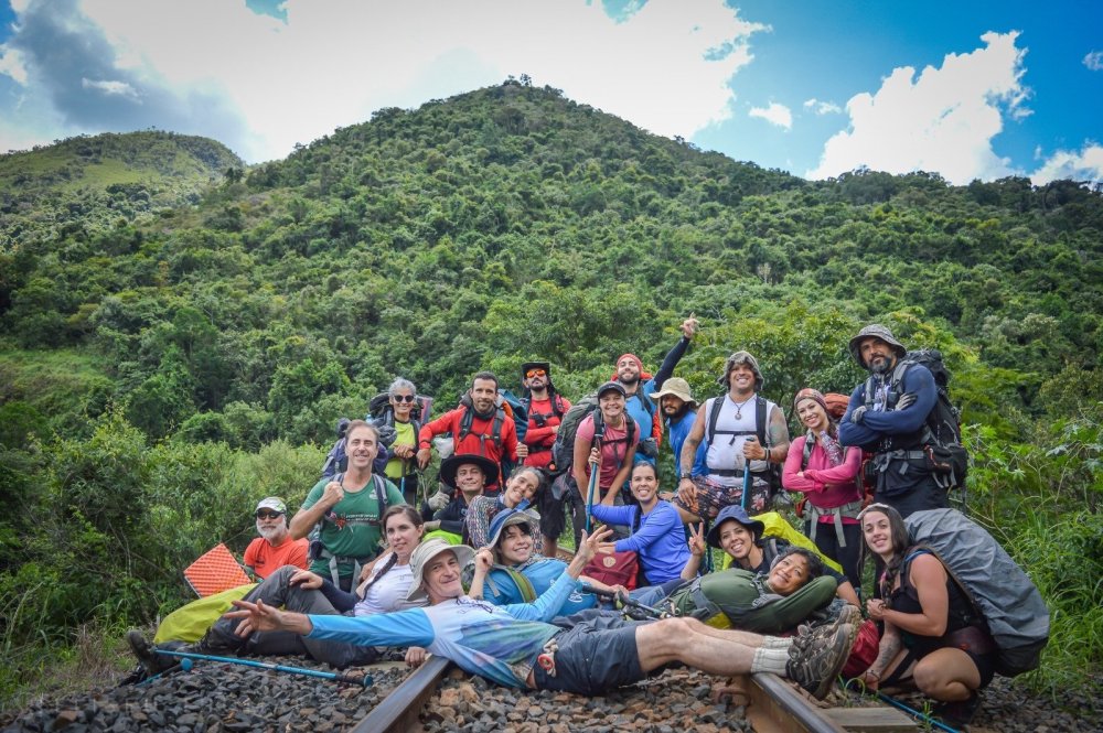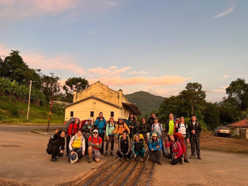Travessia Poços de Caldas - Águas da Prata Ferro trekking, montanhismo e cachoeiras A proposta surgiu pelo grupo Arcanjos, altamente especializado em Serra do Mar, sem descuidar-se de viabilizar grandes e complexas expedições em outros biomas. A intenção era acrescer à tradicional travessia Poços de Caldas - Águas da Prata pela linha férrea a oportunidade de contemplar os horizontes distantes trilhando também pela crista da serra. Pela logística, a saída foi marcada para as 23:30, com duas paradas, mais para “comer hora” que necessidade de repouso do bravo motorista que nos levaria. Já fui pro trampo com a mochila pronta e após a labuta aproveitei o vestuários da empresa para alternar de “engenheiro responsável” para “trilheiro doido” … na ida, assim mesmo, sem acento… na volta… após ser surrado pela encosta da caldeira de um vulcão… acresça o acento e grafe em letras capitais… kkk. Subi, aproveitando para dar carona pra Amandinha, logo no começo da Anchieta. Cargueiras no carro, tocamos para o Tatuapé, para deixar a Lady no estacionamento de confiança. Na ansiedade pra chegar logo, esqueci os bastões de caminhada no carro, tendo que voltar pra buscar… umas 22h já estávamos na padoca, discutindo pernadas e esperando o resto do pessoal. Aos poucos os demais 18 insensatos se apresentaram: meu xará, o Homem-Pássaro, o Douglas Garcia, a Silmara, Carina, Dayane, a Sandy, o Eliseu, a Fernanda (vamos Pelotão), o Josenilson, o Caio Banks, a Cheryl, a Natasha, o Reinhold alguns eu já conhecia, outros travava contato ali, pela primeira vez …. *NOMES* No horário previsto a van encostou para que embarcássemos e o primeiro desafio do rolê se apresentou: colocar 20 trilheiros e respectivas cargueiras na van… minha mochila é pequena, então foi tranquilo arrochar ela na prateleira superior. Para muitas mochilas, a única alternativa foi dispô-las no corredor ou sob os pés do dono. Em poucos minutos, o Tetris estava finalizado e partimos para Poços de Caldas. A playlist montada pela Dani começou a entoar as primeiras músicas, conforme os pedidos prévios e, após discutir algumas ideias de trilhas futuras, caí nos braços de Morpheus. Fizemos a primeira parada próximo de 02:00, ainda meio que bom onero da viagem… o processo de retirar as cargueiras para desembarque foi testado a primeira vez, com alguma morosidade. Nossa equipe aprimoraria o método, ao longo das paradas subsequentes. Um posto de combustível simples, sem nenhuma similaridade com os famosos (e abusivos) Graals nos entregou lanches e refris, com um banheiro asseado e que ainda ofertava, sem custo, banho. A co-pilota e o navegador perceberam, não se sabe como, que as informações de navegação estavam direcionando para o ponto final da travessia, na estação de Águas da Prata. Corrigido o engano e disponibilizada a correção à equipe de navegação e operação do rádio, partimos para lanchar. Serviço honesto, ainda que simples, nos atenderam muito bem. Aliviados e alimentados, nos encaixamos nos bancos e retornamos a viagem. Tentei cochilar, mas a viagem foi curta e logo estávamos chegando no ponto de início da trilha, pouco antes das 05:00. Como queríamos iniciar a trilha com o dia claro, o pessoal optou por dormir um pouco mais na van. O Douglas estendeu o isolante na calçada ao lado da van e logo roncava. Eu aproveitei para revisar alguns arranjos, colocar as lentes de contato e dar umas voltas no quarteirão da estação, enquanto espera o dia clarear. Fiz algumas fotos, pedindo inutilmente aos doguinhos, que não fizessem o escarcéu que inevitavelmente (pensei eu) acordaria toda a vizinhança. Preocupação vã, pq não me entenderam, não se dobrando aos meus pedidos… também nenhuma luz se acedeu ou palavrão foi desferido… menos mal. 😳 Ao lado da estação, um lindo banco de madeira, amplo e convidativo, me tentou nas duas vezes em que passei ao lado, cogitei levá-lo comigo, para esticar os ossos na quase uma hora que faltava para o nascer do sol. Como a alvorada já estava se apresentando, preferi terminar por acordar o grupo que dormitava na van, já eram tardios 5:40, e o clarear do dia vinha acelerado. Foi a medida, em pouco mais de 20 minutos, meus companheiros de caminhada despertam e arrumaram as mochilas. Ansiosos pelo aquecer do corpo e inebriados ante o desconhecido da trilha, tomamos coragem e, “pontualmente” às 6:00 nos colocamos em movimento. Ainda antes que o grupo dispersasse e, com a lembrança de perdidos anteriores, fizemos alguns registros fotográficos com a Estação de Cascata ao fundo. Nada mais funcional para saber, em caso de necessidade como cada um estava vestido. Registros feitos, acessamos os trilhos e começamos a caminhar, tentando acertar os dormentes ou sentido o massagear da brita na planta dos pés, através das somas, mais ou menos grossas, de nossos calçados. Para quem anda a primeira vez numa linha férrea é uma sensação bem esquisita, enquanto os tornozelos e músculos trabalham em formas e ângulos incomuns. Já vi gente sair enjoada de um caminhar de poucas horas, outros saírem da caminhada “institucionalizados” com os passos na medida dos dormentes, kkkk. Eu me divertia em explicar o conceito de propriocepção, maneira “erudita/pedante/precisa” de se referir à “manha “ do pisar, meio que à maneira de gato. Todos temos, em graus variados, uma espécie de memória muscular na pisada que, à semelhança de quase tudo, é tanto mais desenvolvida quanto mais estimulada na infância. Conversava com o Douglas sobre alguns planos ainda menos sensatos que a proposta do dia, quando decidimos apertar o passo e passar a trilhar à frente do grupo. Em uma corrida sem motivo, nem pretenção de vitória nenhuma, fomos apertando o passo e contornando os colegas até que não houvesse mais quem contornar. Reduzimos a passada, acompanhando o grupo por alguns minutos, enquanto eu estudava o