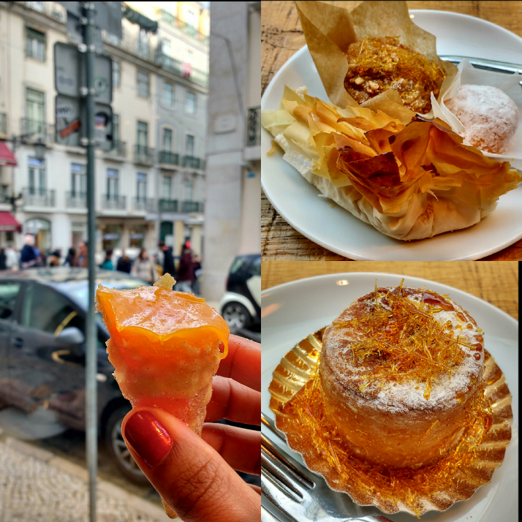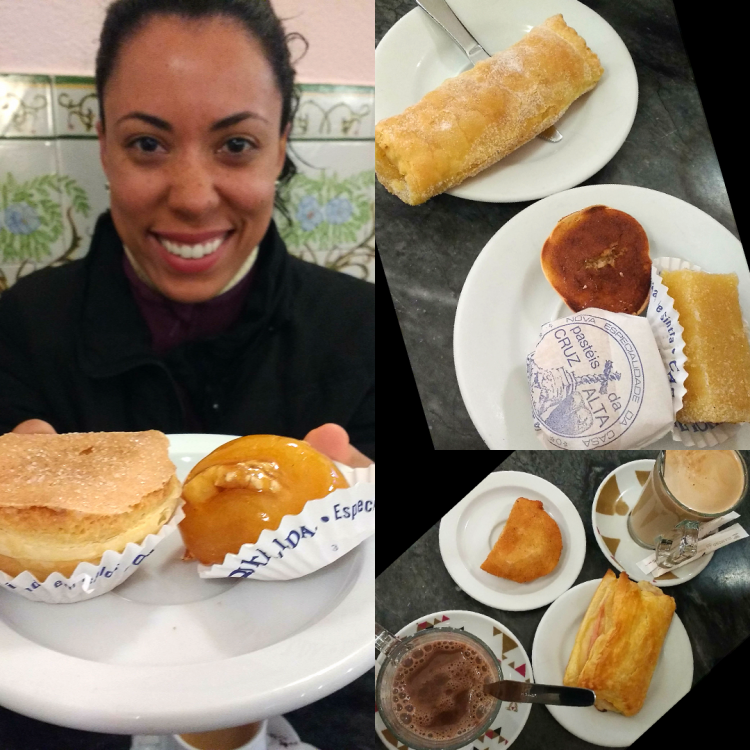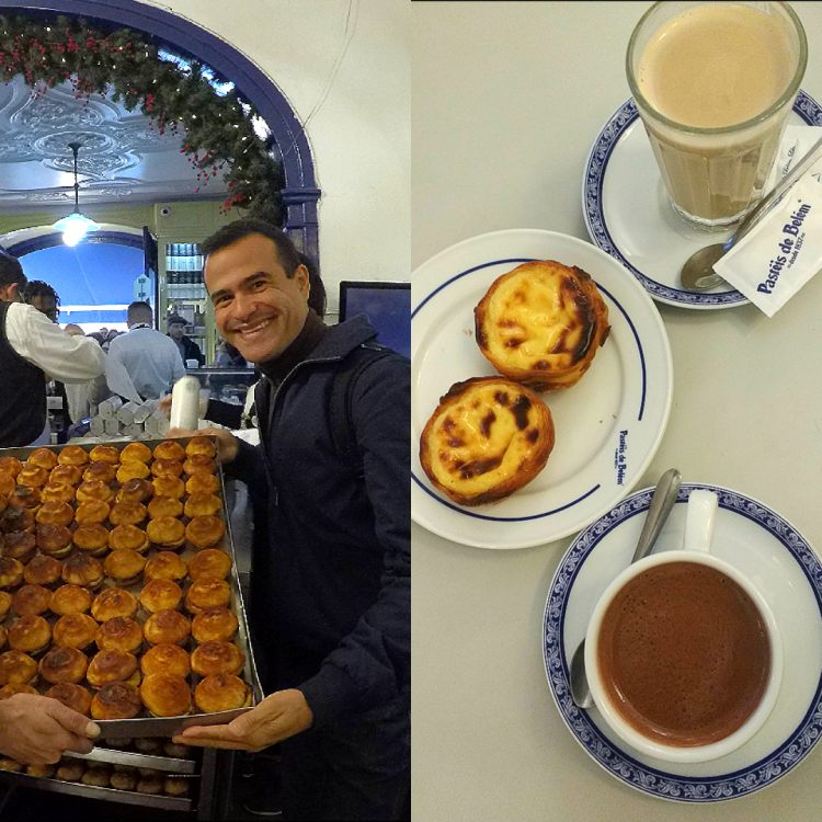 Aqui estão reunidas nossas experiências cometíveis por terras Lusas . Acompanhe tbm nossas viagens pelo Instagram/ Facebook @polymsousa. Come-se mto bem e com preços mto bons em Portugal. A comida é deliciosa e barata em relação a SP. Por ex: sopa + prato de bacalhau sai em torno de 15 reais por pessoa. DICA 1: peça pratos para 1 e divida, as porções costumam ser grandes. Assim é possível pedir entrada, prato principal e sobremesa e ter uma degustação total sem gastar tanto. Os valores são mto parecidos com o que vc gastaria no Brasil comendo arroz e feijão, porém lá vc come bacalhau kkkkk. DICA 2: geralmente fazemos compensações, então se um dia esbanjamos um pouco mais com alimentação no outro seguramos a onda e seguimos o baile. DICA 3: Vc encontra os cardápios com valores de todos os restaurantes no site Zomato. DICA 4: se não quiser o couvert (pães e patês) é só não mexer que não será cobrado. Vamos lá: LISBOA -Restaurante Costa Vicentina: ambiente aconchegante, atendimento excelente feito por brasileiros rsrs. Nos receberam com um vinho do Porto! Eles são especializados em comida portuguesa então pedimos pratos com frutos do mar: Gamba Aguille (camarão alho e óleo) + Cataplana de Mariscos + sobremesa Sericaia (lembra um curau) + taça de vinho verde. Tudo delicioso e muito delicado. -Landeau: onde tem o famoso bolo de chocolate. Tipo um bolo-mousse realmente delicioso. Fomos na unidade da LX Factory mas tem tbm no Baixa-Chiado. -Restaurante Frade dos Mares: Um ritual gastronômico! Pedimos a sugestão do chef e fomos muito felizes kkkkk: folhado de leite de cabra com doce de frutas vermelhas (couvert) + mexilhões com manteiga de ervas (entrada) + Camarão alho e óleo (entrada) + Polvo a Lagareiro (principal) + Entrecôte maturado (principal) + Leite-creme folhado com abacaxi ao vinho do Porto e sorvete (sobremesa) e ainda um vinho branco delicioso. Meuuu Deus, pensa numa riqueza! Maravilhoso! Se não bastasse, o atendimento é primoroso e rápido e a música ambiente dá um clima. Super romântico. Recomendo muito! Áh lá precisa reservar pq são poucas mesas. Vá, sério. -Fábrica da Nata (no bairro Restauradores). Lindo ambiente com azulejos portugueses, preparação dos pastéis visível (o que é mto legal, pois se torna uma experiência), ótimo atendimento. No teto estão em movimento forma de pasteis de nata que parecem ter saído do forno, mas é só decorativo kkk. Comemos pão com queijo da serra da estrela e presunto Parma + bolinho de bacalhau + croquete de vitela + pastel de nata com vinho do Porto. Não sabia que faziam essa combinação de pastel e vinho, amamos!!!! Td delicioso mas o pastel de nata quentinho e cremoso foi demais! -Restaurante Nepalês Himchuli: nunca tínhamos visto comida do Nepal. Pedimos indicação de pratos típicos e veio de entrada ‘papada’ tipo uma torrada com 3 molhinhos. De prato principal um cozido de frango com especiarias e guioza. Tava muito gostoso, o ambiente é todo decorado, tem vela na mesa. O garçom não conseguia entender português e tivemos que fazer o pedido em inglês (hummmm phyna kkkk) e deu td certo kkkkk. -Alcoa (doces conventuais): São doces típicos portugueses em q a base é gema e açúcar. A história desses doces é interessante e data do séc. XV: as freiras usavam as claras para engomar roupas e como as gemas sobravam começaram a produzir doces com eles (por isso conventual). O Alcoa é especializado nesses doces desde 1957 e seguindo a tradição ainda o fazem em tachos de cobre. Vários doces deles são premiados. Pega essa: o Coroa de Baronesa feito por eles foi a sobremesa do Papa quando visitou Portugal, pira? Provamos 6 doces premiados, incluindo o do papa kkkk. São deliciosos e uma obra de arte. Se quer algo menos doce aposte no Ovos do Paraíso. Áhh sabe quem tbm estava lá? Willian Bonner e família! Chupa essa manga kkkkk -Restaurante Cantinho do Avillez: faz parte do grupo de restaurantes do chef José Avillez e este é de comida portuguesa com influência de viagens, achamos mto interessante o conceito. Pedimos Tartar de atum e Ovos à Professor do séc XXI, kkkk deliciosos. Depois Vieiras e Tagine de Cordeiro. Por fim, sobremesa de Avelã e Cheesecake de framboesa. Tudo é muito delicado e delicioso. O vinho é escolhido com um tablet que contém as informações do vinho e com que comida do restaurante combina, mto legal! Pedimos vinho verde e um vinho tinto q eles estão desenvolvendo. Jantar demais!!!! -Pastéis de Belém (o de Belém de fato rsrs): Esse é o clássico e original desde 1837. Sabia que só eles podem usar o termo “pastel de belém”? É marca registrada. Como a receita é secreta é um pouco diferente dos pastéis de nata dos outros lugares. São deliciosos tbm e não pode sair de Portugal sem provar! Tomamos tbm um galão (café com leite) e um chocolate quente que dá vontade de comer de colher! -Pop Cereal Café: estávamos mto curiosos pra experimentar por ser super novidade pra gente. O ambiente é td decorado com histórias em quadrinhos, colorido e mtas caixas de cereais. Tem mais de 100 tipos de cereais entre nacionais e importados. A graça é combinar os cereais, adicionar os toppings, escolher o leite e desfrutar. Como são mtas opções resolvemos pedir as preparações indicadas no cardápio. Pedimos o King Coco e o Heaven is made of chocolate e acrescentamos sorvete de nata kkkk. Cara, q massa!!! Uma delícia, super anos 90, nostalgia total mto legal. Atendimento primoroso! Tem que ir. SINTRA -Byron Bar: a entrada do bar fica embaixo e não é mto óbvia mas tenha fé que vai dar certo kkk, tem uma seta apontando para a entrada. O nome é em homenagem a um poeta que visitou a cidade no séc XIX e por ter gostado mto escreveu sobre Sintra. Começamos com um chocolate quente pra tirar a friagem kkk delícia. Experimentamos bolinho de bacalhau e as especialidades da casa: os travesseiros de Sintra e as queijadas. Tudo 