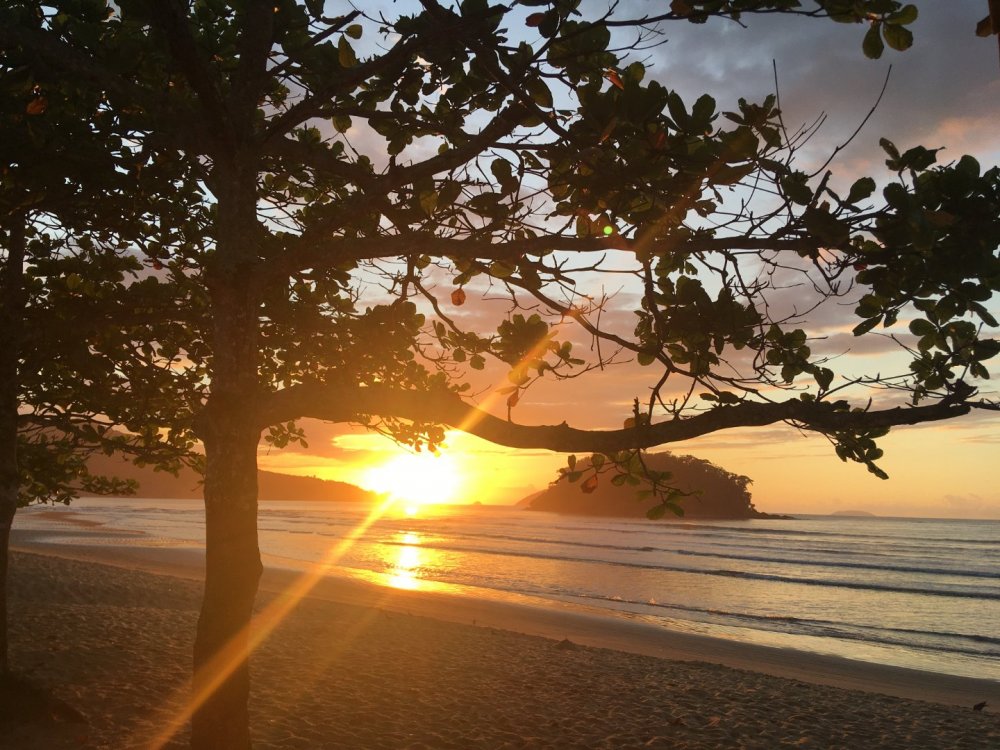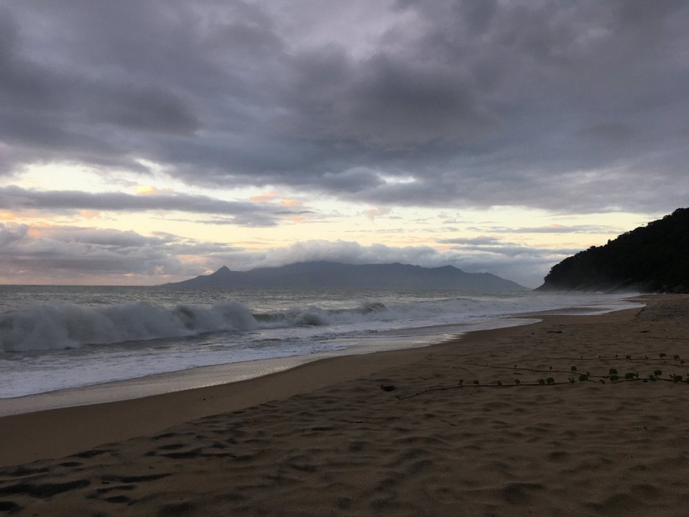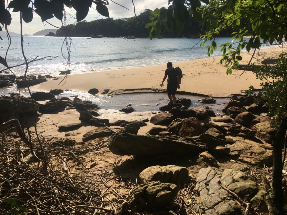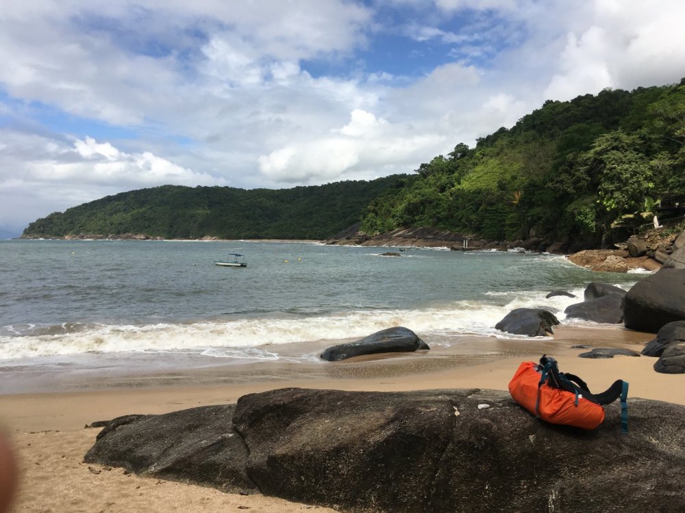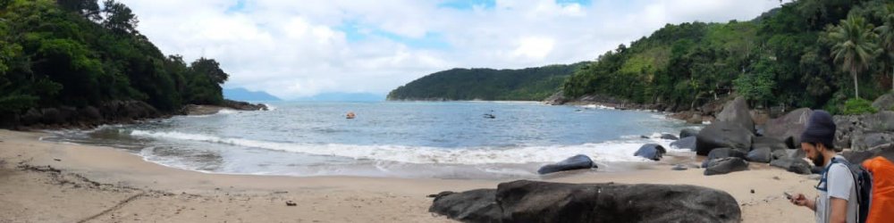 Trilha Saco das Bananas ou Trilha das 10 Praias Desertas - Caraguatatuba x Ubatuba - SP Praias: Praia da Tabatinga, Praia da Figueira, Praia da Ponta Aguda, Praia da Lagoa, Praia do Simão, Praia Saco das Bananas, Praia da Raposa, Praia da Caçandoquinha, Quilombo Caçandoca, Praia do Pulso, Praia da Maranduba e Praia do Sape. Dificuldade: Moderado Distância: 28 km Salve salve mochileiros! Segue o relato desta trilha fantástica situada entre Caraguatatuba e Ubatuba no litoral Norte de São Paulo, iniciada na Praia da Tabatinga a aproximadamente 20 Km da cidade de Caraguatatuba e finalizada na praia do Sape. A trilha é de nível médio com subidas e descidas mostrando belas paisagens e diversas praias. A maioria das praias são quase que desertas com pontos de água potável. Partida - 17/11/20 - Ida 7:30am - São Paulo x Caraguatatuba -> BlablaCar R$45,00 - Caraguatatuba x Praia da Tabatinga -> Ônibus R$4,65 Partimos do bairro do Butantã em São Paulo capital onde combinamos com o motorista do aplicativo BlablaCar para sair às 7:30am. Saímos no horário marcado e fomos em 4 pessoas no carro. A viagem foi tranquila, segura, todos de máscaras pela pandemia e com duração de duas horas e meia até chegarmos ao Terminal Rodoviário de Caraguatatuba onde pegamos um ônibus do transporte público com sentido a cidade de Ubatuba. Depois de aproximadamente 35 minutos descemos no último ponto da praia da Tabatinga próximo ao Mercado Prime onde fica o início da trilha pela rua à direita do mercado. Compramos mais alguns mantimentos e água e iniciamos por volta das 11:00am a Trilha do Saco das Bananas ou Trilha das 10 praias desertas. A trilha teve início na rua ao lado direito do Supermercado Prime pela Rua Onze onde seguimos por ruas com um terreno muito acidentado com muitos buracos e lama até chegar na entrada para a Praia da Figueira. Resolvemos não entrar nesta praia pois o tempo não estava ajudando muito e então seguimos em frente. Alguns metros a frente chegamos no Mirante da Praia da Ponta Aguda de onde se tem uma bela vista da Praia da Figueira e da Praia da Ponta Aguda. (Entrada Praia da Figueira) (Estrada) (Mirante da Praia Ponta Aguda) - (Praia da Figueira) (Praia da Figueira) (Praia da Figueira) Passando o mirante a trilha começa a adentrar a mata mais fechada passando por diversos pontos d'água. Andamos por mais ou menos mais 1 hora e chegamos em um casarão abandonado com várias bananeiras ao redor. Não sei a história desta casa mas parecia ser bem antiga. Neste ponta a trilha se divide em duas, para a esquerda se segue a trilha para a Praia do Simão, e para a direita se chega na Praia da Ponta Aguda. Descemos uns 15 minutos de trilha passando por um descampado até chegar na Praia da Ponta Aguda. (Praia da Ponta Aguda) (Praia da Ponta Aguda) Ficamos pouco tempo na Praia da Ponta Aguda pois estávamos correndo contra o tempo que a todo momento mostrava que podia desabar com muita chuva. Retornamos pela mesma trilha que chegamos na praia e continuamos a trilha seguindo as placas rumo a Praia da Lagoa. (Praia da Lagoa) A Praia da Lagoa que faz jus ao nome contém uma lagoa que desagua no mar situada do lado esquerdo da praia. Retornamos pela mesma trilha e seguimos as placas para a Praia do Simão que a princípio iríamos pernoitar e seguir no dia seguinte. Apesar da placa de proibido resolvemos seguir em frente e caminhamos por mais ou menos umas 2 horas neste trecho. A trilha estava muito molhada pela chuvas do dia anterior tornando o trecho escorregadio e muito difícil de render a caminhada. O tempo até que estava colaborado pois só tínhamos pego chuviscos durante o caminho, até que chegando próximo da Praia do Simão o tempo simplesmente resolveu dizer qual seria o nosso destino pelos próximos 3 dias ahahauhauhauha. Começando com um chuva bem fina, toda aquela água que estava acumulada durante o dia resolveu cair bem na hora que estávamos chegando na Praia do Simão ahuahuah e não parou mais. Depois de vários escorregões e tombos passando por alguns trechos que sem chuva até seriam fáceis, mas com toda aquela água caindo do céu com a trilha encharcada e muito escorregadia ficaram bem complicadas. E depois de algumas horas chegamos na Praia do Simão ou Praia Brava do Frade. (Praia do Simão ou Brava do Frade) (Praia do Simão ou Brava do Frade) (Praia do Simão ou Brava do Frade) (Praia do Simão ou Brava do Frade) Segundo moradores a Praia Brava do Frade possui este nome pois a um tempo atrás morou um frade na praia por muitos anos, razão do nome original. A praia é bastante procurada também por surfistas que buscam tranquilidade em uma praia deserta longe da badalação, mas neste dia não tinha ninguém na praia. Chegamos e já montamos acampamento no meio das inúmeras árvores pensando em obter alguma sombra pra caso no dia seguinte o sol desse as caras ahuahuah. A praia tem mais ou menos 1 km de extensão com mar de águas agitadas, areia clara, praia de tombo, aparentemente com muitas correntes de retorno. Também ficamos próximos ao um ponto de água potável que fica no meio da praia formando uma pequena lagoa que com a forte chuva virou uma grande cachoeira que corria até o mar. A pernoite estava garantida, mas a chuva não parou mais aquela noite e nem no outro dia. Choveu forte, com trovoadas e muito vento o tempo todo. (Praia do Simão ou Brava do Frade) (Praia do Simão ou Brava do Frade) (Praia do Simão ou Brava do Frade) (Acampamento) (Praia do Simão ou Brava do Frade) (Bica d'água) Acordar em uma praia deserta certamente é um desejo de muitas pessoas, mas acordar com a praia deserta e com muita chuva também foi uma experiência muito boa com sentimento de frustração e agradecimento. Ficamos por três dias nesta praia por causa da chuva, as barracas viraram nossos lares naquele paraíso por alguns dias ahuahua. A chuva não deu trégua no segundo dia, choveu por várias horas de manhã até o meio da tarde. Ti