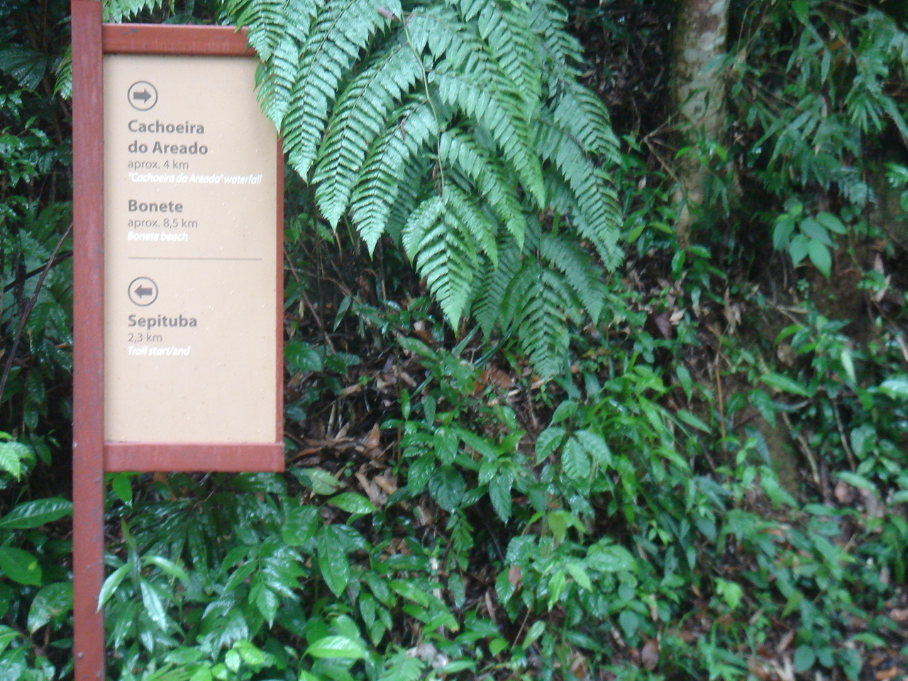 Essa trilha seria o início do nosso feriado prolongado, iríamos caminhar até Bonete ficar por lá 3 dias e voltar de barco. Mas a chuva mudou nossos planos... Foram 9h na estrada/balsa até chegar no bairro de Borrifos, sul da Ilhabela-SP. Estava chovendo, sem nenhum indício de que iria parar. A chuva já vinha durante a semana, mandamos mensagem perguntando ao hostel se a trilha seria possível de ser feita com chuva e a resposta foi “com chuva leve é possível, há pontes para atravessar as cachoeiras”. Éramos 4 pessoas: L., G., A. e eu. Meu pressentimento era de teríamos que procurar outra hospedagem em Ilhabela. G. perguntou no restaurante Nova York (onde termina o asfalto, caminho pra Sepituba) se era possível fazer a trilha com aquele tempo. Lá disseram não. Havia uma pousada e estacionamento ao lado, fomos ver se havia quartos vagos e o que diziam sobre fazer a trilha. Não havia hospedagem disponível. O dono do lugar disse que a trilha era possível de ser feita, seriam umas 3 a 4h de caminhada, acabamos animando. Como o barco na volta ficaria próximo a esse local, usamos o estacionamento (R$10,00/dia) e iniciamos a trilha a partir dali mesmo (2km até Sepituba, onde tem uma porteira identificando a Fazenda da Laje e inicia a trilha para Bonete, cerca de 11km). Fomos preparados: dentro da mochila tudo estava em sacos plásticos ou estanque, tínhamos capas de chuva e capas nas mochilas. Saímos do estacionamento às 13:30h. Caminhamos cerca de 30 min até a porteira e início da trilha para Bonete. Após cerca de 1h 10min de subidas e descidas, chegamos na primeira cachoeira: Cachoeira da Laje. Os borrachudos estavam fazendo a festa apesar de todo repelente que passamos. Ao abaixar para lavar o rosto, G. perdeu seus óculos de sol para a água...infelizmente eles não fizeram falta por aqueles dias... Essa cachoeira parece bem gostosa para banhos, mas não foi possível aproveitar por causa do tempo: chuva e pressa para chegar antes de escurecer. Passamos pela ponte suspensa e caminhamos mais 2h até a Cachoeira do Areado. Nesse caminho atravessamos várias quedas de água, muito barro, mais subidas, descidas e borrachudos. Após mais uma 1h30 atravessamos a última cachoeira, Cachoeira do Saquinho. Essa trilha seria impossível se não houvessem as pontes nas cachoeiras. Após a terceira cachoeira, caminhamos por trilha aberta e já conseguimos visualizar a praia de Bonete. Tínhamos reserva no Hostel Sambaqui, foi fácil de chegar. Tudo é muito perto. Vilarejo é bem simples, com gerador a óleo e placas de captação de energia solar. Após 23h em geral acaba energia, não esqueçam de levar lanternas. O lixo orgânico é enterrado e dejetos despejados em fossas. O lixo não orgânico é levado de barco, uma vez por semana, até S. Sebastião. O dia seguinte amanheceu chuvoso, desde a noite anterior chovia sem parar. Após café da manhã, ficamos no hostel e jogamos baralho por horas. Saímos para almoçar tarde e andamos um pouco pela praia mesmo com chuva. As ondas do mar estavam muito fortes. No restaurante disseram que não tinha mandioca porque estava perigoso sair de barco para buscar. Logo começamos a pensar na volta: e se não saísse barco por causa do mar? Voltar pela trilha e chegar de madrugada, com transito da volta de feriado??? Decidimos antecipar a volta e fazer a trilha novamente no dia seguinte. Mesmo com os 3 dias de chuva contínua, tínhamos mais medo do barco do que da caminhada! Afinal, já sabíamos que seriam umas 6h, conhecíamos o caminho e não haveria risco de ter que caminhar no escuro, já que sairíamos logo após o café da manhã. No dia seguinte, no hostel, avisaram que os barcos conseguiriam sair pela manhã. Mas como dizia G. “prefiro encarar a trilha que o ‘titanic’”, voltamos caminhando mesmo. Esse dia teve menos chuva que em todos os outros e foi mais tranquilo que o trecho da ida. Encontramos dois rapazes no caminho, um israelense e um brasileiro dono de um hostel que o acompanhava. Eles não tinham muita informação sobre Bonete, quando dissemos que já estávamos caminhando havia 3 horas, desistiram e voltaram pra Sepituba. Como estavam com uma pick up corsa, ofereceram carona na caçamba desde a saída da trilha até o local onde o carro estava estacionado. Foi um anjo que surgiu para aliviar 2km das nossas pernas!!! No estacionamento / pousada, pedimos para tomar um banho (R$5,00 cada) Conseguimos voltar a ter cara de gente! Como é bom ficar limpo e seco! Nesse dia era aniversário da A. e merecíamos um almoço para comemorar tanto o aniversário quanto nossas aventuras! Paramos no All Mirante, restaurante maravilhoso, com vista pro mar e comida ótima. É caro, mas vale cada centavo! E como falamos que era o aniversário da A., ela ganhou a sobremesa! Teve até foto do por do sol!!! Temos que voltar para Bonete, com tempo bom para aproveitar melhor o lugar. Gostei da caminhada, mas por lá não conseguimos fazer nada com chuva. A praia é mais para surfistas, mas disseram que há uma trilha de 40 minutos para praia de Anchovas que é bem tranquila e muito bonita também. Tem mirante do lado oposto do que chegamos e uma cachoeira bem próxima da vila (Poço Encantado), que também ficou para próxima. O staff do hostel Sambaqui é muito atencioso, gostamos! Eles nos recomendaram na próxima deixar o carro na av. principal de S. Sebastião, atravessar a balsa a pé e pegar o ônibus até Borrifos para fazer a trilha. Ou pegar o barco direto de S. Sebastião para lá, sem precisar passar pela Ilha. Frases da viagem: “vai com cautela” e “já era previsto”... Frase inspiradora: “tudo vale a pena se a alma não é pequena” -