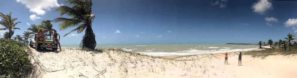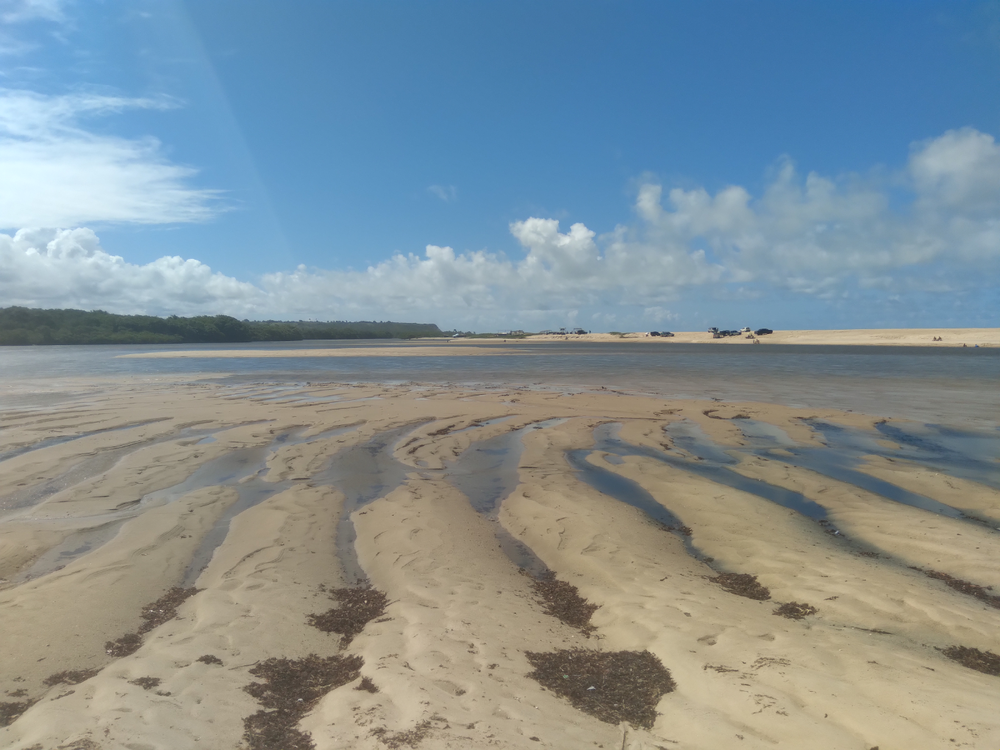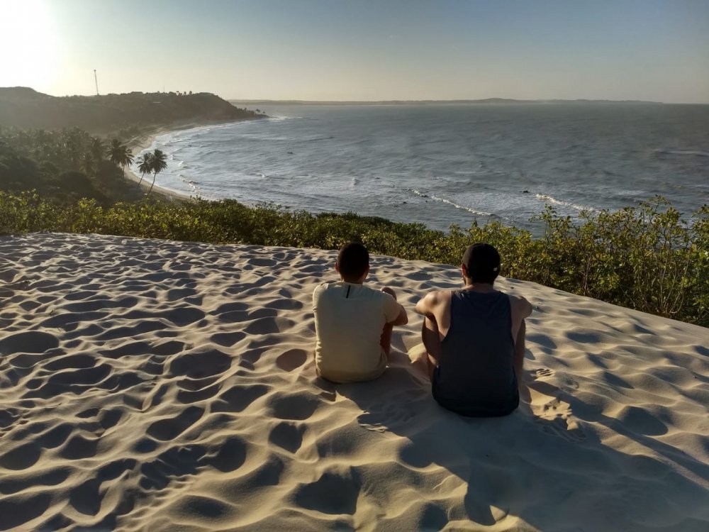 Olá pessoal, compartilhando com vocês esse passeio que fiz com meu namorado até Baia Formosa/RN de carro - buggy saindo de Natal/RN. Somos de Natal e assim como a maioria das pessoas que vivem aqui, não costumamos fazer esse tipo de passeio (apesar de ser um desperdício já que temos um litoral incrível, cheio de paisagens espetaculares) no máximo vamos as praias urbanas e só. No dia anterior ao passeio entrei em contato com o pessoal do insta @baiaformosa.rn e pedi uma indicação de passeio que poderíamos fazer em um dia percorrendo a maior parte dos atrativos. Em Baia Formosa existem basicamente 3 tipos: buggy, quadricíclo e 4x4 onde opamos pelo de buggy por ser mais em conta para duas pessoas (R$ 350), lá você encontra até por R$ 280, mas como não conheciamos optamos por esse. Assim eles nos indicaram o cara que acredito ser o melhor e mais conhecido bugueiro da região, Welligton (84-99114-1756 @bugueirowellingtonbf) uma pessoa incrível, extremamente pontual e responsável. Ótima escolha! Depois de agendarmos com Wellington no dia anterior, partimos de Natal para Baia formosa de carro pela BR101, esse trajeto muito tranquilo dura cerca de uma hora e meia. Fomos direto para o centro da cidade onde havíamos marcado com ele as 9:30h e de lá partirmos para o primeiro destino que seria dá uma passada em Barra do Cunhaú para conhecer esse lindo lugar que faz parte do município vizinho a Baia Formosa, Canguaretama. Fomos pela praia antes que a maré subisse e o ja nos primeiros metros ainda na praia principal de Baia Formosa nos encantamos desde o inicio com um dos cenários principais da novela Flor do Caribe: água calma, tranquila, falésias, areia, vegetação... O passeio pela praia é de boa e leva de 15 a 20 minutos até Barra do Cunhaú. Chegando lá a visão é muito linda! Quem nos recebe é o rio Curimataú que em encontro com o mar fica verdinho e tranquilo. Nesse trecho a areia é bem branquinha e o pessoal pratica kite surf aproveitando os ventos favoráveis a esse esporte na região. Ali no rio ficamos por cerca de 40 minutos, tomando banho, agua de coco e deitando nas redes que eles colocam dentro da água. O consumo de bebidas e comidas nesse ponto é um pouco salgado mas é aquilo né, lei da oferta e da procura: colo lá tem poucas barracas, eles vendem caro mesmo. Depois pegamos o buggy e voltamos para Baia Formosa mas não mais pela praia e sim por dentro de uma fazenda pois o mar ja estava alto e nao havia faixa de areia para o carro passar. Essa mudança do trajeto já é informada desde o inicio para que a pessoa saiba que vamos passar por esse lugar que também é bem legal onde é cobrado um pedágio de R$ 10,00 por carro. Dentro dessa fazenda podemos ver a mata nativa de restinga, com vários rios e lagos entre dunas (tinha até vacas rssr). O Bugueiro nos leva ao alto de uma duna para ver a baia e é tudo muito perfeito: o mar com diversas tonalidades de azul, a areia, o coqueiral!!! Esse passeio por ali, com a parada na duna deve dá por volta de 30 a 40 minutos. Dali fomos em direção a Lagoa Araraquara mais conhecida como lagoa da coca-cola devido a tonalidade de suas águas que lembram o famoso refrigerante. Pra chegar lá saímos da fazenda e pegamos a estrada asfaltada de entrada da cidade, atravessamos todo o centro dela (passamos em frente da casa do campeão mundial de surf 2019 Ítalo Ferreira) descendo pelas praias do centro e indo em direção ao Sul . A lagoa fica dentro de uma reserva florestal muito importante para o RN e Brasil, a mata da Estrela que é o maior remanescente da mata atlântica sobre dunas do país, para chegar lá nós passamos por dentro dessa mata que é belíssima diga-se de passagem. A lagoa é muito interessante mesmo com suas águas escuras e quentes onde permanecemos por cerca de 30 minutos. Depois disso, partimos em direção a ultima praia do litoral potiguar, a praia do Sagi. No caminho passamos pelo farol do Bacubari e Museu do Mar, uma inciativa particular de um senhor que coleta espécies marinhas mortas na região e enterra numa espécie de cemitério que ele organizou. Depois ele expõe os cascos de tartarugas e ossos de animais interessantes como golfinhos, baleias, peixe-boi e outros. Continuando o passeio chegamos na praia do Sagi e como já passava das 12:00h, fomos direto no restaurante "reservar" nosso almoço. Aqui uma dica interessante dele: Fomos na Ombak - Camarão, cachaça e MPB (@cahacaria) para dá uma olhada rapida por lá, já que é uma cachaçaria bem interessante, ver o cardápio e já fazer o pedido (pois a montagem do prato demora uns 40 minutos) ou seja, escolhemos e fomos dá um passeio enquanto ficava pronto. Sim, isso é possivel!!! Então, como tínhamos essa possibilidade, fomos direto para o limite entre o RN e PB que é o estuário do rio Curimataú, um lugar muito lindo e tranquilo. Ali ficamos uns 30 minutos tomando banho no rio/mar e relaxando. Nesse espaço tem umas barracas onde se pode beber e comer petiscos. Ali também você consegue fazer passeio de barco e salto de tiroleza. Depois retornamos para o Ombak e o prato estava pronto, um camarão no coco verde com arroz maravilhoso, acompanhado com suco fresco de caju e de sobremesa cocada (R$ 95,00). Dali fomos fazer o passeio de canoa no Rio Sagi com direito a parada para tomar banho no interior do mangue num trecho com terra clara e plana. Quem for fazer esse passeio não deixe de conhecer Toreba, uma figura muito engraçada e carismática da região. O passeio com ele é super animado e interessante ($20 por pessoa) e dua reca de 30 minutos ou até 2 horas se a pessoa quiser ficar tomando banho de rio. Como queríamos apenas conhecer foi bem rápido. Vale salientar que quem quiser pode tomar banho de lama também e não custa nada rrsrs. O passeio se encerra com a volta para o centro de Baia Formosa porém antes ainda teve uma surpresa do nosso bugueiro: ele nos levou para ver o por-do-sol num lugar fantás