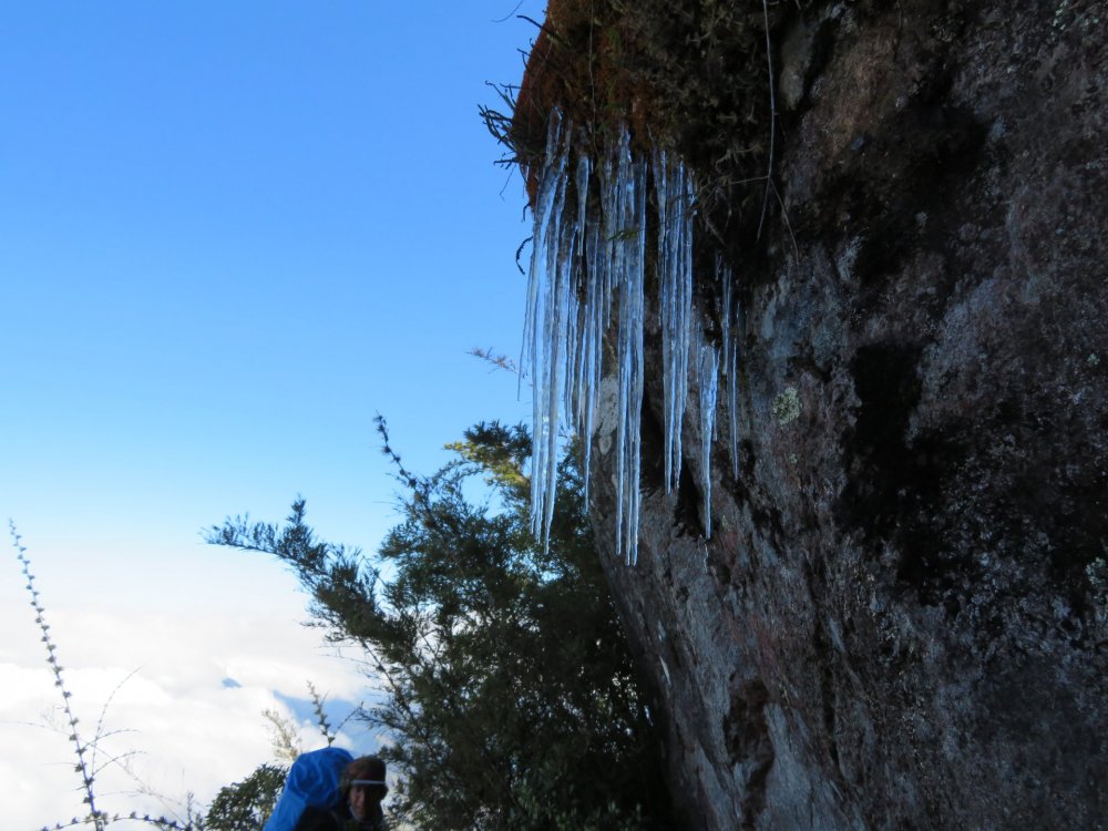 Bom dia/tarde/noite aos aventureiros e aventureiras. Apesar de existirem dezenas de relatos sobre a Travessia da Serra Fina, creio que, independente de todos compartilharem do mesmo objetivo (completar o roteiro), também possuímos experiências e perspectivas diferentes das situações que planejamos e encontramos, portanto, como os relatos nos ajudaram muito, retribuirei com minha parte, para quem sabe ajudar próximos aventureiros também. Não tem como escapar, a rotina de trabalho dificulta muito os planejamentos para realizar estes desafios. Juntando a temporada ideal + 4 dias de folga seguidos = feriado prolongado. É grupo em cima de grupo. Você sobe em uma árvore e tem gente sentado no galho que você iria sentar, cava um buraco e sai três trilheiros, pega fila para abraçar a árvore, saem 15 pessoas de Robert na selfie (fica parecendo entrevista de político com os papagaios de piratas atrás) e por aí vai. É lotado mesmo e ponto final. Isso é um problema? Não se você for já sabendo isso. É possível curtir e apreciar tudo sim, afinal é melhor uma Serra lotada do que o metrô de Sampa. Eu e minha companheira Mi ingressamos nas trilhas há alguns anos. Como paulistanos, fomos conhecendo as trilhas mais próximas. Subimos aqui, ali e logo começamos a sentir falta de algo mais imersivo. Descobrimos as inúmeras travessias que podem ser realizadas próximo a SP, principalmente nas divisas de MG e RJ. Já que é o desafio que nos motiva, nos preparamos para a Serra Fina, a travessia mais difícil do Brasil, segundo algumas reportagens. Se é verdade, ou não, explicarei ao longo do relato. Feriado prolongado de 9 de julho, no meio do inverno, em alta temporada, nas férias de julho de muitos trilheiros, previsão de maior frente fria já registrada... Pensamos igual no filme missão impossível: altas chances de fracasso, certeza de explosão, é isso, vamos. Chega de introdução, vamos para o relato. Nosso grupo se define em: Rafael, Miriam, Luan e Charles (guia). Roteiro previsto: 1º dia: saída da Toca do lobo - Pernoite no Pico do Capim amarelo ou Maracanã (01h30m depois) - Aprox. 7 km; 2º dia: saída Pico do Capim Amarelo ou Maracanã – Pernoite Pedra da Mina - Aprox. 7 km; 3º dia: saída Pedra da Mina – Pernoite Pico dos 3 estados - Aprox. 7 km; 4º dia: saída Pico dos 3 estados – Pernoite Sampa City Summit - Aprox. 11 km. Total aprox. 33km. Na prática: 1º dia: Saída do Hostel as 07h com o transfer. Chegada no início da subida de barro as 07h30m aproximadamente. Dependendo do transfer, ele te leva uns 500 metros mais para cima, bom negócio se for possível. Começamos a subir e as 08h estávamos no point inicial. A toca do lobo. Todos se abasteceram de água no nível máximo (4L cada), pois precisaríamos de água para o dia e para a janta, já que o próximo ponto de água seria 01h:30m após o Pico do Capim Amarelo, no maracanã. Tivemos uma breve conversa com o guia Charlinho, no qual explicou o roteiro, dicas, perigos, etc. Partimos para a aventura. 🧗♂️ Como previsto, você sobe, daí sobe um pouco, sobe ali, escalaminhada aqui, subiu um trecho, subiu outro, daí tem uma subida e você chega onde? No ¼ da subida do dia. Num trecho famoso, o quartzito. Muita nuvem, mas já bonito e animador. Que tal subir agora? Subiu, subiu e continuamos subindo, até que apareceu um dos cartões postais da travessia. O passo dos anjos. Emblemático trecho que mostra toda crista da serra que vinha pela frente no primeiro dia. Só que aconteceu o que previmos, estava com neblina devido a chuva do dia anterior. Não vimos no ângulo tão sonhado, mas conseguimos uma imagem semiaberta depois que passamos. Paramos algumas vezes para petiscar e adivinha? Subimos mais. Daí aconteceu algo que abalou a todos. Estávamos na trilha quando passamos por uma senhora que estava desacordada. Isso quando já estávamos há mais de 2 mil metros de altitude. Ficamos sabendo depois que ela teve um AVC e inclusive saiu no G1 uma notícia sobre isso. Esperamos que ela esteja bem. Um helicóptero dos bombeiros fez um trabalho espetacular junto dos guias que estavam na montanha. Fizeram uma tremenda força tarefa e conseguiram levar a senhora até o helicóptero, que conseguiram pousar NA MONTANHA. Foi um trabalho de extrema competência. Todos ficaram baqueados, mas seguimos em frente. Fica como um adendo para todos. A montanha deve ser levada a sério. Muito importante estar com exames em dia e se preparar, pois imprevistos podem acontecer, infelizmente. Após este ocorrido, fizemos um lanche em uma área coberta por bambus e já fomos recebidos pelos proprietários da montanha, . Os ratinhos. Chegam a ser bonitinhos, pois são pequenos, como hamsters, mas não deixa de ser um rato, eita bicho medonho e travesso. Já notamos que eles estariam presentes na viagem. Também ficamos chocados com trechos congelados que encontrávamos já na subida. Imagine o frio que estava por vir. Chegamos no capim amarelo as 13h. Um local incrível. Já sentimos muito orgulho de ter iniciado essa aventura. Conversamos sobre o planejamento e decidimos ir para o Maracanã, pois seria mais próximo da água e também do próximo destino do dia seguinte. Ao descer o capim amarelo, o joelho do nosso amigo Luan deu uma esperneada, afinal o dia da ascensão exige muito. Decidimos parar em um bambuzal bastante abrigado, chamam de "avançado". Por volta das 15h já estávamos com as barracar montadas e prontos para um por do sol próximo dali. No fim ficamos sabendo que fizemos boa escolha, perceberá o porquê. Pendure suas comidas e lixos em árvores, pois os ratos causam nesse lugar, como em qualquer outro. Tivemos visitas na madrugada que incomodaram um pouco. Inclusive a barrigueira da Mi foi roída , pois havia o sachê do gel (que é doce) usado, então deve ter vazado um pouco. Tivemos de colocar as cargueiras para dentro da barraca. Deixar no avance deu receio. Aproveitamos e usamos as mo