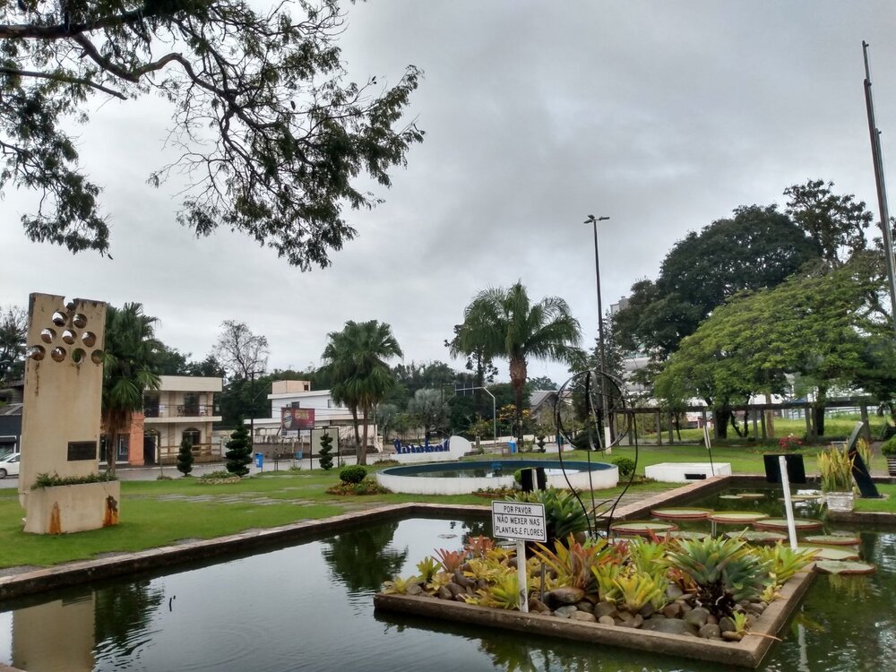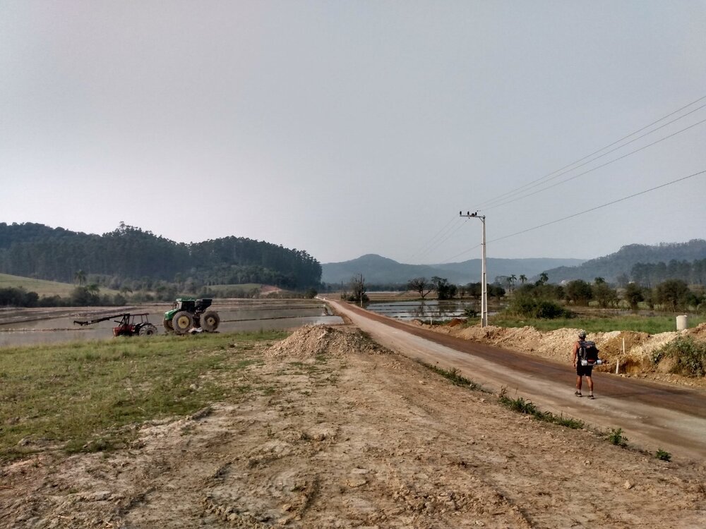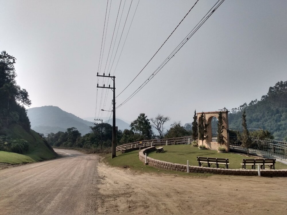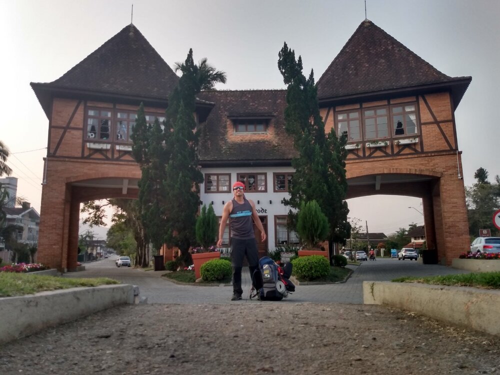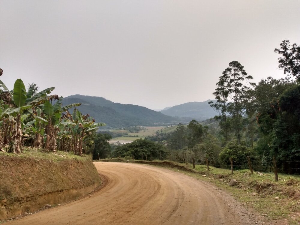 Saudações, mochileiros!!! Este é um relato que me anima compartilhar, uma vez que este roteiro é pouco falado e reflete um lado do estado de Santa Catarina que talvez poucos conheçam, um pouco afastado das oktoberfests, o litoral com suas badaladas praias ou a charmosa e fria serra. E com certeza é um roteiro que inspira amantes de uma boa caminhada. Trata-se do circuito caminhante do vale europeu. Criado a partir de 2006 como uma iniciativa de amigos, empresários e governos locais da região do vale do Itajaí para promover o turismo local, o caminho conta com 12 cidades e mais de 300km de chão, dos quais 9 cidades e 213km são feitos a pé (o percurso maior é feito de bicicleta). Obtive conhecimento acerca desta aventura durante uma visita rápida em Pomerode, feita em 2023, vendo um totem que marcava o início/fim da etapa. Como percebi pelo caminho da fé que tal atividade poderia ser uma nova fonte de aventuras na minha vida, aproveitei que iria passar o mês de setembro/2024 na região para realizá-lo. Há um site devidamente organizado para orientar qualquer pessoa que deseja fazê-lo - https://valeeuropeucatarinense.com.br/circuito-caminhante/, onde constam praticamente todas as informações necessárias e contatos para tirar dúvidas. O caminho é autoguiado, ou seja, em praticamente todo o percurso há placas, totens ou setas indicando a direção certa, além do tracklog e uma cartilha com as direções no próprio site para ajudar os caminhantes. Setas brancas para o caminhante, amarelas para o ciclista. Mamão com açúcar Falarei da minha experiência, dos lugares onde me hospedei e de impressões, dicas e críticas. Sem mais delongas, vamos ao que interessa Primeiramente, tive que ir para Indaial, município vizinho de Blumenau, pois é lá onde o percurso do caminhante tem início e fim (diferente do circuito do ciclista, que começa e termina em Timbó). A pequena cidade transmite uma vibe bastante interiorana e tranquila (por vezes tranquila até demais pro meu gosto ). Resumindo, um lugar bom para se aposentar. Como está no vale, não esfria tanto (na mesma semana tinha pegado 9 graus em Florianópolis, e sair de japona pela madrugada era obrigatório ❄️). A mata atlântica ao redor, a passarinhada, o grande Itajaí-açu, a limpeza das ruas da região central e a conservação das praças tornaram minha breve estadia agradável. As amazônicas vitórias-régia chamam bastante atenção na entrada da prefeitura Todo final de tarde era de lei sentar aqui, comer cuca e assistir a vida acontecendo de diversas formas. A ponte dos arcos com o Itajaí-açu. Peguei a credencial do caminhante no Hotel Fink, onde você deve ir para pegar o certificado no final do circuito. Esta credencial, tal como a do peregrino do caminho da fé, serve para os carimbos que você pegará ao longo do circuito para comprovar que passou pelos lugares. Como o hotel estava sem vagas para pernoite no dia, acabei me hospedando no Hotel Larsen, o que foi uma opção melhor, pois este fica mais perto do início do caminho, bem no centro da cidade. O atendimento e a cordialidade foram muito boas, recebi algumas dicas do que fazer na cidade, etc. Paguei R$ 85,00 com café incluso. Recomendo. Sábado, 07/09 - Indaial/Timbó A cidade (na verdade o país, né) amanheceu mais animada do que o de costume, pois como era feriado da independência, haveriam desfiles. Um tempo nublado e um pouco de neblina típica no vale se fariam presentes naquela manhã. A ponte dos arcos marca o início. Partiu? Essas plaquinhas estão presentes em todo o circuito. Preste sempre atenção Descansado e bastante animado, iniciei a grande caminhada às 7 da matina. Em um primeiro momento, andamos por umas duas horas no perímetro urbano, enquanto que as casas, aos poucos, vão ficando menos numerosas, e vamos adentrando na parte rural da cidade. No caminho, cruzei com uma curiosa cancha de bocha num barzinho fechado. Pode parecer "caboquice" minha, mas sempre tive curiosidade de assistir uma partidinha, esse curioso jogo é meio que o futebol dos habitantes da região . Após passar por um pequeno bairro rural, sou apresentado a uma amostra do que vou ver daqui em diante: morros e mais morros de mata atlântica, campos de arroz, plantações de banana, florestas de manejo, casinhas e fazendas distantes umas das outras. Muitas paisagens paisagísticas de encher os olhos. Enfim, estava conhecendo o interior, de fato No caminho chego na Casa Duwe, que aparentemente foi tombada como patrimônio histórico da região e parece que foi tirada de um conto dos irmãos Grimm. Pensei em dar uma pausa lá, mas os cachorros estavam bem afoitos com minha chegada, e a senhora que estava varrendo o local parecia um pouco incomodada. Como lá não tinha carimbo, resolvi tomar meu rumo. Após aproximadamente três horas de início, finalmente vejo uma placa de um "apoio". Mas ainda precisava subir um sinuoso e demorado morro (no circuito as mudanças de altitude e morros são quase uma constante, treine bem os cambitos). Lá em cima, descubro que sou o único caminhante em dias, e marco minha credencial com o primeiro carimbo 🎉. Lá você pode comprar água e lanches. Como ainda estava cedo, resolvi pular o lanche. E de lá de cima tinha algumas visões de partes do vale. Infelizmente o país estava tomado pelas fumaças das queimadas na amazônia, pantanal e campos paulistas, o que comprometeu a visão dos belos vales ao horizonte. Durante a descida, sou apresentado também aos primeiros borrachudos, que seriam uma desagradável companhia em quase todos os dias . Ainda bem que no meu estado nossa única dor de cabeça é com mosquito. E por fim, passo por um bambuzal, onde consigo mais uma vez encontrar um cajado que fielmente seria uma parte do meu corpo até o final da jornada (e bastão de caminhada é imperativo para este percurso, leve!) Cajado de bambu lvl 1, bom para se apoiar, medir profundidade de poças, espantar cach