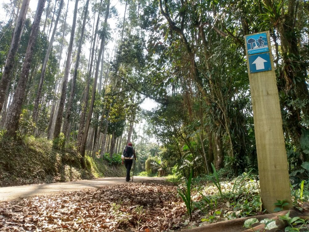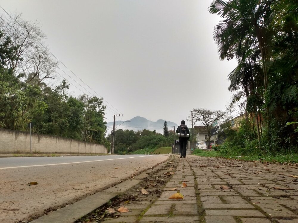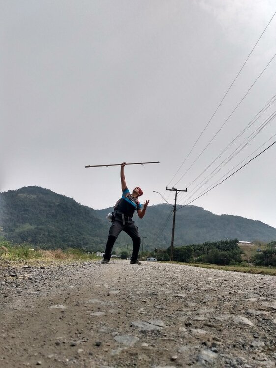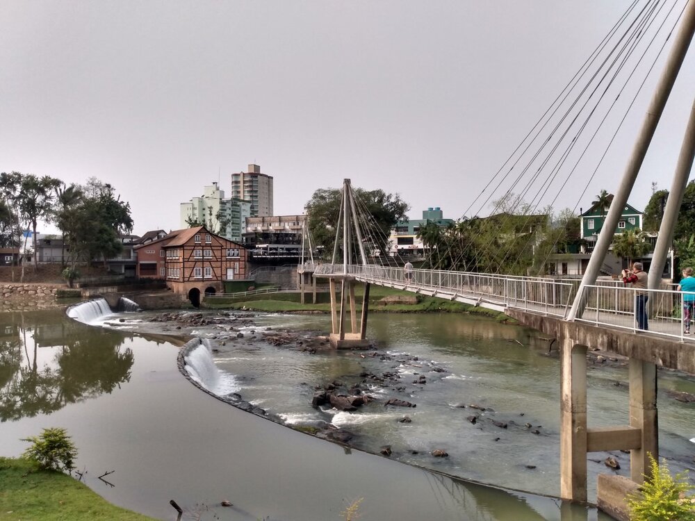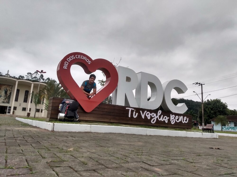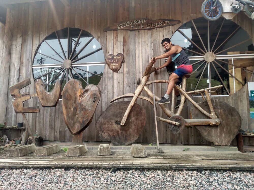 Saudações, mochileiros!!! Este é um relato que me anima compartilhar, uma vez que este roteiro é pouco falado e reflete um lado do estado de Santa Catarina que talvez poucos conheçam, um pouco afastado das oktoberfests, o litoral com suas badaladas praias ou a charmosa e fria serra. E com certeza é um roteiro que inspira amantes de uma boa caminhada. Trata-se do circuito caminhante do vale europeu. Criado a partir de 2006 como uma iniciativa de amigos, empresários e governos locais da região do vale do Itajaí para promover o turismo local, o caminho conta com 12 cidades e mais de 300km de chão, dos quais 9 cidades e 213km são feitos a pé (o percurso maior é feito de bicicleta). Obtive conhecimento acerca desta aventura durante uma visita rápida em Pomerode, feita em 2023, vendo um totem que marcava o início/fim da etapa. Como percebi pelo caminho da fé que tal atividade poderia ser uma nova fonte de aventuras na minha vida, aproveitei que iria passar o mês de setembro/2024 na região para realizá-lo. Há um site devidamente organizado para orientar qualquer pessoa que deseja fazê-lo - https://valeeuropeucatarinense.com.br/circuito-caminhante/, onde constam praticamente todas as informações necessárias e contatos para tirar dúvidas. O caminho é autoguiado, ou seja, em praticamente todo o percurso há placas, totens ou setas indicando a direção certa, além do tracklog e uma cartilha com as direções no próprio site para ajudar os caminhantes. Setas brancas para o caminhante, amarelas para o ciclista. Mamão com açúcar Falarei da minha experiência, dos lugares onde me hospedei e de impressões, dicas e críticas. Sem mais delongas, vamos ao que interessa Primeiramente, tive que ir para Indaial, município vizinho de Blumenau, pois é lá onde o percurso do caminhante tem início e fim (diferente do circuito do ciclista, que começa e termina em Timbó). A pequena cidade transmite uma vibe bastante interiorana e tranquila (por vezes tranquila até demais pro meu gosto ). Resumindo, um lugar bom para se aposentar. Como está no vale, não esfria tanto (na mesma semana tinha pegado 9 graus em Florianópolis, e sair de japona pela madrugada era obrigatório ❄️). A mata atlântica ao redor, a passarinhada, o grande Itajaí-açu, a limpeza das ruas da região central e a conservação das praças tornaram minha breve estadia agradável. As amazônicas vitórias-régia chamam bastante atenção na entrada da prefeitura Todo final de tarde era de lei sentar aqui, comer cuca e assistir a vida acontecendo de diversas formas. A ponte dos arcos com o Itajaí-açu. Peguei a credencial do caminhante no Hotel Fink, onde você deve ir para pegar o certificado no final do circuito. Esta credencial, tal como a do peregrino do caminho da fé, serve para os carimbos que você pegará ao longo do circuito para comprovar que passou pelos lugares. Como o hotel estava sem vagas para pernoite no dia, acabei me hospedando no Hotel Larsen, o que foi uma opção melhor, pois este fica mais perto do início do caminho, bem no centro da cidade. O atendimento e a cordialidade foram muito boas, recebi algumas dicas do que fazer na cidade, etc. Paguei R$ 85,00 com café incluso. Recomendo. Sábado, 07/09 - Indaial/Timbó A cidade (na verdade o país, né) amanheceu mais animada do que o de costume, pois como era feriado da independência, haveriam desfiles. Um tempo nublado e um pouco de neblina típica no vale se fariam presentes naquela manhã. A ponte dos arcos marca o início. Partiu? Essas plaquinhas estão presentes em todo o circuito. Preste sempre atenção Descansado e bastante animado, iniciei a grande caminhada às 7 da matina. Em um primeiro momento, andamos por umas duas horas no perímetro urbano, enquanto que as casas, aos poucos, vão ficando menos numerosas, e vamos adentrando na parte rural da cidade. No caminho, cruzei com uma curiosa cancha de bocha num barzinho fechado. Pode parecer "caboquice" minha, mas sempre tive curiosidade de assistir uma partidinha, esse curioso jogo é meio que o futebol dos habitantes da região . Após passar por um pequeno bairro rural, sou apresentado a uma amostra do que vou ver daqui em diante: morros e mais morros de mata atlântica, campos de arroz, plantações de banana, florestas de manejo, casinhas e fazendas distantes umas das outras. Muitas paisagens paisagísticas de encher os olhos. Enfim, estava conhecendo o interior, de fato No caminho chego na Casa Duwe, que aparentemente foi tombada como patrimônio histórico da região e parece que foi tirada de um conto dos irmãos Grimm. Pensei em dar uma pausa lá, mas os cachorros estavam bem afoitos com minha chegada, e a senhora que estava varrendo o local parecia um pouco incomodada. Como lá não tinha carimbo, resolvi tomar meu rumo. Após aproximadamente três horas de início, finalmente vejo uma placa de um "apoio". Mas ainda precisava subir um sinuoso e demorado morro (no circuito as mudanças de altitude e morros são quase uma constante, treine bem os cambitos). Lá em cima, descubro que sou o único caminhante em dias, e marco minha credencial com o primeiro carimbo 🎉. Lá você pode comprar água e lanches. Como ainda estava cedo, resolvi pular o lanche. E de lá de cima tinha algumas visões de partes do vale. Infelizmente o país estava tomado pelas fumaças das queimadas na amazônia, pantanal e campos paulistas, o que comprometeu a visão dos belos vales ao horizonte. Durante a descida, sou apresentado também aos primeiros borrachudos, que seriam uma desagradável companhia em quase todos os dias . Ainda bem que no meu estado nossa única dor de cabeça é com mosquito. E por fim, passo por um bambuzal, onde consigo mais uma vez encontrar um cajado que fielmente seria uma parte do meu corpo até o final da jornada (e bastão de caminhada é imperativo para este percurso, leve!) Cajado de bambu lvl 1, bom para se apoiar, medir profundidade de poças, espantar cach