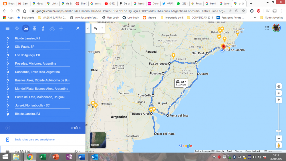 Queríamos viajar neste final de ano 😀😀 e nossa escolha seria para EUA 🇺🇸✈️✈️, mas o dólar estava alto e nosso sonho era fazer uma Trip de carro 🚙🚙🚙. Decidimos que seria muito mais empolgante se nossa historia ficasse pelo continente sul americano 🇨🇱🇵🇾🇦🇷🇺🇾🇧🇷. Nosso tempo de viagem - 22 dias de pura emoção Nosso carro familiar um Honda HRV com 20 dias de uso. Participantes: Eu ( 👨🦳 Carlos Marques ), minha querida esposa ( 👧 Cristiane ), meus queridos filhos 👩🎓Mariana - 21 anos ) e 🙋♂️ Matheus - 15 anos ) Destino - Mar del Plata ⛱️ - Última parada Percurso - Rio de Janeiro - São Paulo - Curitiba - Foz do Iguassu - Cidade del Este (PAR) - Posadas (ARG) - Concórdia (ARG) - Buenos Aires (ARG) - Mar del Plata (ARG) - Colonia del Sacramento (URU) - Punta Del Este (URU) - Chuy - Pelotas - Jurerê Internacional - Joinville - Registro - Rio de Janeiro Total do Percurso - 7.145 Km - Média do Carro - 11,7 Gasolina e Álcool - Preço mais barato - 2,49 (Álcool) - preço mais caro - 6,09 (GAS) no Uruguay. Vamos lá para nossa historia. Primeiro dia - Saímos pela manhã de uma quinta feira, do Rio de Janeiro 🚙 com destino a São Paulo, logo depois de 2 horas 50 minutos paramos em Aparecida do Norte, 🙏 para agradecer a Deus pelo ano de muitas emoções, depois de mais ou menos 2 horas de orações seguimos rumo a São Paulo, mas tínhamos uma meta de parar no Graal da Fernão Dias próximo de Mairiporã chamado Rancho Português , nossa expectativa foi um exito total, pois este restaurante recupera boas lembranças que tínhamos do nosso querido Portugal, onde vivemos por 9 anos. Já passava das 16:00 quando então voltamos para nossa rota e seguimos rumo a Curitiba, porém nosso objetivo deste dia era chegar até Registro e se hospedar no Maravilhoso hotel do seu Anastácio chamado ESTORIL Sempre festivo e muito agradável nossa primeira estada foi maravilhosa, jantamos no excelente restaurante do hotel, bebemos um delicioso vinho português na companhia do amigo Anastácio e fomos dormir depois de rodar 687 Km o que nos pareceu até leve pela quantidade de atividades que criamos para o percurso. Segundo dia - Acordamos pela manhã sem muita pressa, tomamos nosso delicioso café da manhã e seguimos para o centro de Curitiba, por lá para uma passagem rápida, deu tempo de passar no Mercado municipal almoçar por lá, visitar a catedral e até dar uma volta no Ônibus HOP ON HOP OFF. saímos de Curitiba por volta das 14:00 e seguimos rumo a Foz do Iguassu. Poderíamos ter feito a viagem direta apesar dos 685 Km de distancia, mas decidimos parar em Cascavel e dormir em um hotel de estrada chamado de Hotel do Trevo que foi escolhido no Booking minutos antes. Ótima Escolha para um pernoite.. Lá se foram 715 Km de estradas somente neste dia ... Terceiro dia - Muito próximo da fronteira seguimos logo cedo, depois do café, para Foz do Iguassu, pouco mais de 2 horas chegamos e logo deixamos as malas para seguir destino ao centro de compras do Paraguay depois da ponte da amizade.. Apesar de estar de carro o melhor transporte é o Uber que deixa a beira da ponte. Na correria esquecemos nossos documentos passaportes etc., mas mesmo assim arriscamos entrar, foi uma grande aventura que não aconselho a ninguém, porém é percebido que pouquíssimas pessoas são vistoriadas. Guarde folego para ficar andando pelas ruas cheias de pessoas e não deixe de se informar antes para saber quais são as lojas confiáveis para compra das suas prioridades. Se vale a Pena ? sempre vale até porque você já esta la mesmo... Barganhe, pechinche, faça seus cálculos com cuidado porque escolhas erradas podem fazer você perder alguns reais importantes para sua viagem. Dentro depois de 8 horas de muita pesquisa e algumas comprinhas básicas voltamos para o hotel. Dica: Retorne de táxi Paraguaio, apesar de mais caro, você não terá muitos problemas, a volta a pé e mais demorada e de alguma forma mais arriscada; Hotel bom que recomendo seria: Hotel Continental Inn ou Hotel Rafain. Aproveitamos para fazer neste mesmo dia a Fronteira da Argentina visitando o DUTY FREE que para compras realmente não vale a pena. Para um dia de 180 Km foi bem animado.. Quarto Dia - foi para se esbaldar na fronteira e nas compras, pois afinal se você esta no paraíso da compras, então vamos fazer muita pesquisa e comprar tudo aquilo que sempre desejamos, dentro das nossas posses. Uber para a a ponte, retorno com o Táxi paraguaio, e conhecer um pouco mais da cidade. boas churrascarias nas cidades Churrascaria Rafain, City Grill entre outras. Quinto Dia - foi reservado para conhecer as atrações da Cidade, Cataratas, Parque das Aves, Itaipu Binacional, Macuco Safári, Rede Dreams de atrações, para conhecer tudo isto é preciso um bom planejamento, compras de ingressos antecipados, ou aproveitar algumas agências de Turismo como a LOUMAR. Uma informação importante é que tudo isto custa muito caro. mas vale a pena conhecer. Sexto dia - chegou a hora de partir de Foz do Iguassu e do Brasil rumo a Argentina, nossa primeira parada seria na cidade de Posadas na região de Missiones que beira o rio Parana. Todas as regras básicas para esta aventura devem ser cumpridas equipamentos para o carro obrigatório no pais vizinho, documentos, seguros obrigatórios e o maior cuidado com os policiais argentinos que são conhecidos por ser muito corruptos neste trecho. A estrada é boa com muitos pontos de checagem da policia, radares de velocidade e muito verde para curtir. Foram 341 Km de puro prazer e muita diversão com a família. A cidade de Posadas é muito surpreendente tem uma região de beira rio sensacional. Sétimo dia - Posadas era apenas uma cidade para pernoitar e não tornar a viagem muito longa, com isso, saímos pela manhã rumo a Concórdia onde passaríamos o Natal, a viagem era de 594 Km para a véspera de natal, desta forma tínhamos 