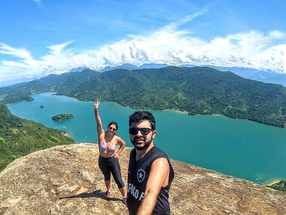 #dicas #relatos Páscoa com pouco chocolate, porém com muita energia renovada. Eu e minha namorada decidimos conhecer um canto pouco explorado aqui no Rio, o Saco do Mamanguá. O local é um daqueles onde parece que o tempo parou e que o dia tem mais de 24 horas! Para quem gosta da série Crepúsculo, lá possui uma casa que foi set de filmagem para um dos filmes (não me pergunte qual hahaha). COMO IR: Saindo de carro do RJ vá até Paraty-Mirim, lá é só parar o carro em um dos estacionamentos e pegar o barco para o Saco do Mamanguá (o "caminho" para os barcos é a direita dos bares no início da praia). Saindo de ônibus: desça em Paraty e pegue um ônibus para Paraty-Mirim (http://paratyvip.com.br/horacolitur/). O restante é o mesmo esquema acima. O barco custa R$ 120,00 (mas dá pra negociar por R$ 100,00!) e a viagem dura cerca de 10, 15 minutos com vista privilegiada das águas verdes da Baía de Paraty. ONDE FICAR: A praia mais conhecida no Saco do Mamanguá é a Praia do Cruzeiro, onde tem o início da trilha do Pão de Açúcar. Lá também há o camping do Seu Orlando (024 999163532), sua casa e o seu restaurante. Os valores do camping não mudam em feriados, com a diária custando sempre R$ 30,00 (março/2018). O camping é simples porém com espaço considerável, 1 ducha com água quente e bastante espaço com sombra para por as barracas. Cozinha com fogão, geladeira e alguns utensílios básicos. Vale dizer que na Praia do Cruzeiro bem como em todas as outras (pelo o que me informei) não há atividade comercial, somente restaurantes e que só aceitam dinheiro! Então se a ideia é levar cooler e cartão de crédito mude os planos O PF no restaurante do Seu Orlando custa R$ 30,00 (março/2018) e serve muito bem 1 pessoa: 1 peixe inteiro, arroz, feijão, farofa e salada. Há também a opção com Omelete por R$ 25,00. O QUE FAZER: O atrativo principal do lugar sem dúvida é a trilha do pão de açúcar. São 492m de altitude em uma trilha de 1,5km, que pode ser considerada média, porém é bem cansativa pois todo o acesso é bem íngreme. Um ponto positivo é que toda a trilha é feita sob proteção da mata, então não há sol batendo na cabeça e isso ajuda bastante. Eu e minha namorada levamos cerca de 1h30 para subir, sem pressa e parando para descansar/beber água e uns 50 minutos para descer. Outras atividades: alugar um caiaque e passear por todo o Saco do Mamanguá. A área é de mar abrigado, sendo muito tranquilo remar por ali. Inclusive dá para acessar outras praias assim, uma forma bem mais rápida do que pelas pequenas trilhas que as interligam. Uma curiosidade interessante: Na praia do Cruzeiro (única que fiquei, já que minha estadia durou só 2 dias) a água bate no joelho mesmo após cerca de 50m.Então é uma boa pedida parar relaxar até mesmo com crianças. DICA IMPORTANTE: Os mosquitos do local não se intimidam com repelente "padrão". Sugiro levar algum destes de linha "aventura", pois reage de melhor forma., Agora a hora das fotos (a qualidade das imagens ficou meio ruim quando carreguei. Infelizmente...)