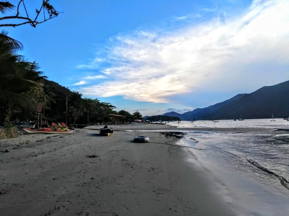 O saco de Mamanguá, Paraty Mirim e a Reserva Ecológica Estadual da Juatinga pertencem à Área de Proteção Ambiental (APA) de Cairuçu, localizada na cidade litorânea Paraty no Rio de Janeiro. Paraty tem uma população estimada de 41 mil habitantes e apesar da alta temporada ser no verão, fomos em junho e o clima estava ótimo, com poucos turistas e praias quase desertas. Abaixo segue o roteiro que fizemos a pé e de barco. COMO CHEGAMOS Saindo de São Paulo, pegamos um ônibus da Reunidas na rodoviária Tietê, para Paraty. Foram 7 horas de viagem com 2 paradas de 30 minutos. Saímos às 8h00 e chegamos às 15h00 em Paraty. Almoçamos e voltamos para Rodoviária, ficamos 1h20 esperando o ônibus que vai para Paraty Mirim. Depois descobrimos que esse ônibus parte a cada 2 horas, pois só tem um ônibus fazendo esse trajeto. Saímos de nossa casa em São Paulo às 6h30 e chegamos em Paraty Mirim 18h45. Ou seja, um dia só para chegar. Acampamos no Camping do Jesus que fica ao lado de um campo de futebol. Como era baixa temporada, tínhamos um gramado enorme só para nós. DIA 1 - Paraty Mirim, Saco do Mamanguá, praia do Cruzeiro Acordamos e fomos para o começo da trilha, que fica um pouco antes do pier de Paraty Mirim. Neste primeiro dia saímos de Paraty Mirim e fomos andando até o final do saco de Mamanguá. Tem uma boa subida no começo e depois a trilha fica mais amena. Neste pedaço a trilha é bem demarcada, pois tem muitas casas de veraneio e até pousadas. Percebemos que quando não tem casas de veraneio a trilha ficava bem rústica. A última praia era habitada por caiçaras. A energia elétrica chegou lá em 2013. Até então eles usavam outros tipos de energia, como a solar. Encontramos na travessia caiçaras que estavam felizes com chegada da eletricidade, outros ansiosos para a energia chegar em seus cantinhos e outros felizes com sua energia solar e não desejando que os postes de luz se aproximem. Nesta praia especificamente, eles estavam bem felizes com a eletricidade. E provavelmente as crianças e professores da escola desta praia também estavam. É possível acampar lá por R$ 30,00 (preço de baixa temporada). Mas acabamos pagando um barquinho para atravessar o saco para o outro lado, rumo à Reserva Ecológica Estadual da Juatinga e acampar em um camping mais estruturado. Chegando na praia do Cruzeiro, acampamos no Camping do Sr Orlando, com energia elétrica e com um delicioso banho quente. Essa é uma das vantagens da eletricidade para nós urbanos. Este Camping é bem estruturado, com vista para o mar e servem refeições com peixes recém pescados. Infelizmente fomos com dinheiro contado e não saboreamos um pescado nesta viagem. E não encontramos nenhum local que aceitasse cartões. Snif, snif... Resumo do dia 1: Total percorrido: 7,8 km Tempo: 4h30min Pontos de água: vários Elevação: subimos 521 metros e descemos 554 metros Altitude máxima: 211 metros Dificuldade: Leve DIA 2 - praia do Cruzeiro, pico do Pão de Açúcar, praia do Engenho, praia Grande da Cajaíba A idéia deste dia era seguir até Martim de Sá. Mas não tivemos pernas e tivemos que pernoitar antes. Isso porque não resistimos ao Pico do Pão de Açúcar que fica ao lado da praia do Cruzeiro, e nos desviamos um pouquinho do caminho. Isso nos atrasou. Levamos uma hora para chegar no Pico no Pão do Açúcar, a 435 metros de altitude, onde é possível apreciar o belo Saco de Mamanguá. O Saco do Mamanguá é o único fiorde tropical da costa brasileira, um enorme vale formado por rochas e inundado de água, que se estende por 8 Km até se encerrar no manguezal da Baía da Ilha Grande. Valeu a pena desviar o caminho. Mais uma hora e descemos de volta para trilha. A trilha estava bem demarcada neste trecho. Mas depois de 720 metros ficamos um pouco confusos por onde seguir, pois no meio da trilha tinha uma casa, com uma placa pendurada "Propriedade Particular". Por sorte chegou o caseiro e ele nos guiou até a trilha, que passa no quintal do fundo da casa. Na verdade a casa é que passa pela trilha e por isso, apesar da propriedade ser particular o dono não pode obstruir a passagem. A trilha segue até a praia do Engenho. Da praia do Cruzeiro até a praia do Engenho foram 3,7 km. Neste trecho a trilha é parcialmente coberta do Sol e o caminho bem marcado, deve ter muita circulação de pessoas, e as casas de veraneio devem ajudar na manutenção da trilha. Descansamos embaixo de uma árvore na praia do Engenho, lanchamos e nos abastecemos de água. Depois da praia do Engenho a trilha é totalmente coberta do Sol e um pouco fechada. É um sobe-e -desce, bem parecida com a trilha que vai ao Pico do Pão de Açúcar. Como é puxada devido ao desnível, acredito que poucas pessoas andam por lá. Demoramos quase 4 horas (parando para descansar no topo) para andar esse trecho de 4,3 km com altitude máxima igual ao Pico do Pão de Açúcar de 435 metros. Depois de sobe-e-desce chegamos na Praia Grande da Cajaíba às 17h20. Para nosso alívio tinham dois Campings na praia Grande da Cajaíba. Desde Cruzeiro não tínhamos visto mais nenhum Camping. Ficamos logo no primeiro que vimos, no Camping da Dona Dica que cabem poucas barracas. Na verdade ficamos no quintal da casa dela, que é uma mistura de casa, bar, restaurante e camping. Tudo no pé da areia. Mas tudo muito bem organizado e aconchegante. A dona Dica é uma caiçara que está ansiosa para que a luz chegue lá. Sem energia elétrica, tomamos banho frio, que estava uma delícia. Apesar de irmos em junho, estava um Sol de rachar, calor gostoso para quem estava de biquíni na praia e uma sauna insuportável para quem estava fazendo a trilha. Nem precisava entrar no mar para ficarmos com o corpo salgado. Foi uma suadeira só. Imagina no verão. Não quero nem imaginar. Resumo do dia 2: Total percorrido: 10,4 km Tempo: 7h10min Pontos de água: vários Elevação: subimos 1141 metros e descemos 1128 metros Altitude máxima: 435 metr