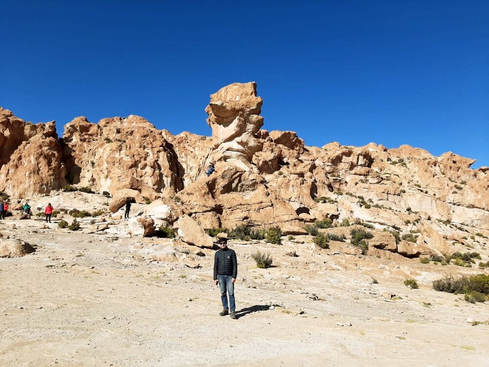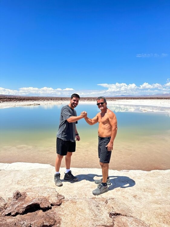 CAPÍTULO 1 - INTRODUÇÃO E depois de 7 meses da viagem e tanto postergar vou enfim postar o relato da nossa viagem. Contextualizando.. após conhecer esse site em algum momento da minha vida, comecei a ver os relatos de viagem do clássico mochilao América do Sul e desde então passei a me interessar sobre esse roteiro e após algum tempo, enfim surgiu a oportunidade perfeita de datas, comecei a planejar o passeio. Um dia que estava em casa com meus pais, comentei sobre a tal viagem, foi aí que recebi um pedido inusitado do meu pai “Posso ir com você filho?” e após a pergunta logicamente começamos a planejar juntos o mochilao, que agora era nosso!! A maior parte do relato foi escrita pelo meu pai, ele escrevia todos os dias um pouquinho, então acho que não deixamos o tempo apagar os detalhes. Espero que curtam e que possa ajudar de alguma forma e se tiver dúvida, sugestão ou se só quiser trocar uma ideia sobre responde aqui ou então manda uma mensagem la na nossa dm @celsobotelhos @danielbotelho23 MOCHILÃO PAI E FILHO Por: Celso Botelho da Silva e Daniel Gomes Botelho Em um belo dia num bate papo informal, meu filho Daniel, um jovem garoto, me confessa seu sonho de fazer uma viagem num estilo bem leve, sem protocolos, sem luxos, sem apegos, ir a lugares certos e incertos. Eu, um pai idoso e aposentado, com 61 anos, senti naquele momento vir a tona o meu espírito adormecido de também querer percorrer caminhos desconhecidos, novas culturas, novos povos. Naquele momento selamos nossos sonhos, começamos a traçar nossos roteiros e assim começou essa história de sair por aí. Os problemas começaram a surgir e por pouco quase desistimos. O roteiro era o tradicional mochilão Bolívia-> Chile -> Peru. Porém, às vésperas da viagem surgiram notícias sobre os protestos e manifestações por quase todo o Peru, principalmente na região que iríamos: o sul do país. Ficamos alguns dias na dúvida, mas decidimos seguir viagem com roteiro programado apenas até São Pedro de Atacama e de lá, dependendo da situação peruana, seguiríamos ao Peru ou então seguir no Chile, para Santiago. Pensando nisso, optamos por não comprar a passagem de volta. Decisão tomada, mochila arrumada e pé na estrada. DIA 01 - 29/01/2023: RUMO A CIDADE DE UYUNI E O MAL DA ALTITUDE. No Aeroporto de Guarulhos/SP - pai e filho Saímos do Aeroporto de Guarulhos/SP às 10:15 hs com destino a Santa Cruz de La Sierra na Bolívia e lá pegamos um vôo para a cidade de Sucre, onde chegamos por volta das 17:00 hs. Para nossa surpresa, ao desembarcar da aeronave e caminhar até a sala de espera, comecei a sentir um desconforto e imediatamente sentei-me numa cadeira. Era o mal da altitude - o tão famoso soroche. Daniel, que é médico, mediu minha saturação e deu 92. Então fiquei sentado e ele foi comprar água e medicamento. Ao retornar notou meus lábios ficando roxos e as extremidades dos dedos dessaturando e ficando também arroxeadas. A saturação já tinha caído para 85 em poucos minutos...tudo muito, muito rápido. Demos mais um tempo, pegamos um táxi e fomos ao centro de Sucre. Daniel comprou medicamento para evitar o soroche ( dexametasona 4mg e soroche pills) e tomamos ali mesmo. Fomos almoçar e eu já estava bem melhor. Dali seguimos caminhando para a rodoviária, pois nosso ônibus para Uyuni iria partir às 21:00 hs. Ficamos surpresos com o trânsito caótico e como uma rodoviária poderia ser tão pequena e confusa, mistura de embarque com desembarque, ônibus sem indicação nos painéis dos locais de destino e tem uns homens que ficam gritando o tempo todo pelos passageiros. Um verdadeiro caos. Nosso ônibus, da empresa Emperador, atrasou e saiu às 21:40 hs. O banheiro sem água e papel higiênico (ficou aquele cheirinho) e tinha uma criança dormindo no corredor, além de várias bagagens espalhadas pelo chão. Trânsito caótico nas proximidades da rodoviária de Sucre INN: O almoço em Sucre, restaurante simples, comida boa e barata. OUT: Soroche - o mal da altitude. DICAS: Começar a tomar o remédio para soroche um dia antes de chegar na Bolívia. Caso venha por Sucre, comprar as passagens do ônibus para Uyuni pela internet, assim passará menos sufoco na rodoviária. Trocar dinheiro já no aeroporto de Santa Cruz, cotação justa e facilita pagar o táxi e demais despesas em Sucre. FIQUE ATENTO: Ao fazer a imigração em Sucre, estavam exigindo comprovante de vacinação da COVID.