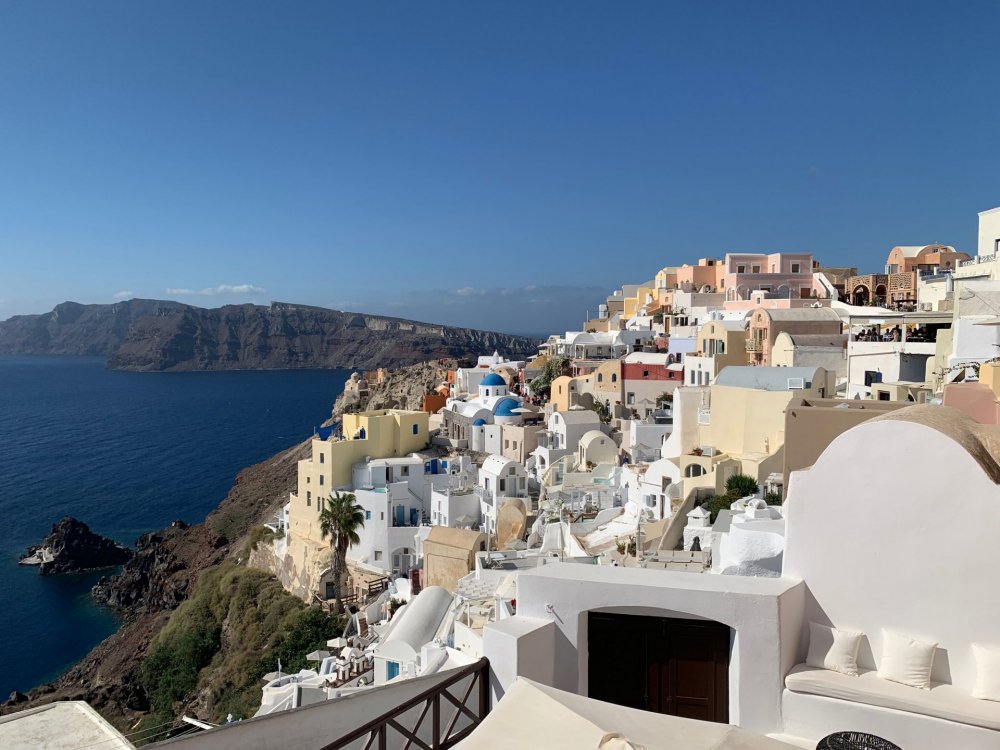 Olá mochileiros! Estava fazendo o meu relato em tópicos, mas agora que já cheguei em casa, chegou a hora de contar tudo de uma vez, enquanto ainda está fresco na memória. O inicio do Relato e da viagem, foi em Roma, e lá mesmo fiz meu primeiro post sobre esta viagem. Segue o link para quem desejar começar do começo rs https://www.mochileiros.com/topic/84446-roma-3-dias-3-pessoas-fotos-preços-e-itinerário Resumindo o inicio da viagem - Voo saindo de Florianópolis com escala em Guarulhos e chegando em Roma, Imigração foi uma piada - tanta preparação pra nada. Média de troca de euro foi 4,50, Comprei as passagens com MaxMilhas, Alugamos AirBnb. Monumentos maravilhosos, a cada esquina uma nova maravilha que nem estava na lista. Comida gostosa e farta, museus lindos! No relato acima tem, é claro, muito mais detalhes, com fotos e gastos que tivemos por lá. Saindo de Roma, foi a vez de irmos a Santorini, na Grécia. Dia 13/04 Voo marcado para 12h45, a partir do aeroporto de Fiumicino. Atrasou um pouco, e o voo em si demorou 1h45. Adicionando 1 hora a mais pelo fuso horario de Santorini, chegamos no aeroporto de Thera por volta de 16h15. Ficamos no hotel San Giorgio, que acima de 2 diárias oferecia transfer grátis de e para o aeroporto. Chegamos lá e o encanto foi imediato. Quarto recém reformado, cheiroso e super confortável! Deixamos as malas e saímos pra comer em um restaurante próximo (aliás, tudo é proximo, Thera é super pequena e tudo é de fácil acesso) chamado Greek Bites. Super delicioso, comida regional, maravilhosa! Passamos no mercado e compramos algumas coisas para o café, além de água, que não é potável na ilha. [agua 0,50 ; croissant 1 ; suco 1,50, snacks 1] Passeamos um pouco pelo centro (uma rua rs) e voltamos pro hotel para um merecido descanso. Dia 14/04 Acordamos cedo e fomos para o terminal de onibus. Vi em muitos relatos e sites que é indispensável alugar carro quando vier para Santorini; e discordo completamente. Não era viavel alugar carro pois ficariamos apenas 2 dias e não dirigimos, mas mesmo que esse não fosse o caso, achei suuper tranquilo andar de onibus. O terminal é bem localizado, onibus de viagem limpos e baratos. [1,80 a 2,40 dependendo do destino] Segue fotos dos horarios de onibus, não tem muitos, mas são precisos. Nosso destino nesse dia foi a maravilhosa Oia. Como saimos cedo, ainda estava bem vazio, e conseguimos aproveitar bem o lugar, sem multidões. Voltamos para Thera e almoçamos no restaurante Pelican Kipos. A decoração e ambiente encantam logo de primeira, e a comida fecha a experiencia com chave de ouro. Descansamos um pouco depois do almoço e no fim da tarde seguimos para uma igrejinha próxima, chamada Virgin Mary Church, pra ver o tão falado por do sol. Bom, não tem o que falar.. As fotos dizem tudo. Na volta, jantamos em uma lanchonete meio vintage, chamada D’s Burgers. Super gostoso e um ótimo atendimento! [Burger 6, Fritas 4, Refri 2] Dia 15/04 Café da manhã no Our Corner, no centro de Thera [waffle 10, sanduiche 6] De lá fomos até o terminal pegar um onibus para Perissa, a famosa praia de areia preta. Lá almoçamos e bebemos em um barzinho também chamado de Corner - Food and Drinks. O sol abriu e nos deu uma manhã maravilhosa de presente. No fim da tarde saimos pra ver a caldeira pela ultima vez, porém com o céu nublado não conseguimos aproveitar o por do sol novamente. Jantamos no Lucky’s Souvlakis, bem bom e barato, ótimo pra aproveitar a cozinha local. Dia 16/04 De manhã tomamos café em uma lanchonete próxima, chamada Crepe House. Também gostoso, porém demoradinho. De lá, voltamos pro hotel pra fazer o checkout e pegar novamente o transfer de volta pro aeroporto. E assim acabou nossa mágica viagem a Santorini, curta porém inesquecível. Links Hotel - https://bit.ly/2Jgv117 Preços para 3 dias, 3 pessoas Voo Roma - Santorini - 269 euros Hotel - 196 euros Almoço Greek Bites - 40 euros Mercado - 50 euros Onibus - 25 euros Pelican Kipos - 50 euros D's Burgers - 30 euros Our Corner - 30 euros Corner Food Perissa - 60 euros Lucky's Souvlakis - 30 euros Impressões e Dicas Sempre levem um casaco. O tempo foi completamente imprevisivel, mudando em questão de 1 hora, mas o vento era sempre constante. Cidade super calma, bem rural, estilo praia. Todas as lojas e supermercado ficam em apenas uma rua principal, tudo fácil de achar. Transito tranquilo, porém ninguém usa capacete, principalmente quem aluga quadriciclo rs Os pratos vinham sempre bem fartos, e sempre pedíamos pra dividir e provar de tudo. Continua em Atenas..