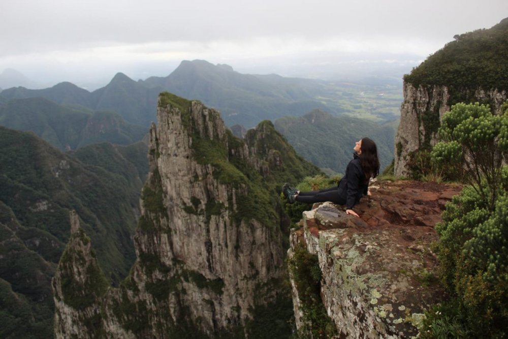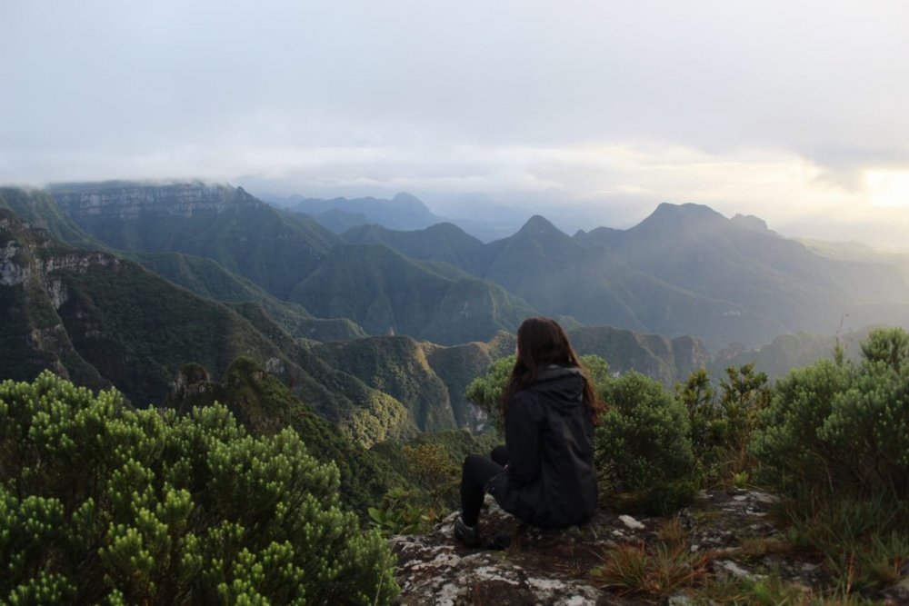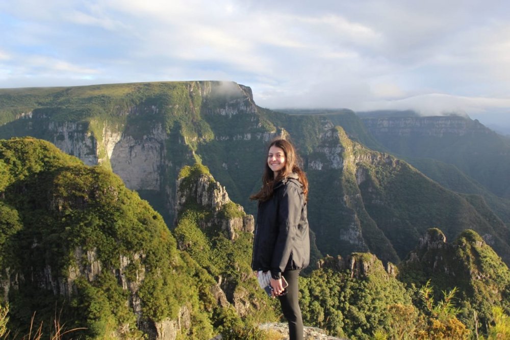 As viagens de carro em família eram presentes na minha infância, então a Serra Catarinense entre outros destinos que fossem possíveis há algumas horas de distância de Blumenau. Quando entrei para esse mundo de trilhas, trekkings, mochilão e viagens sozinhas, um novo leque de possibilidades se abriu, incluindo visitar lugares com outra perspectiva. @anavoando O Canion do Funil fica em Bom Jardim da Serra e é propriedade privada do Sr. Miguel, é interessante mandar uma mensagem para ele no WhatsApp (49 99127-1014) para pegar mais informações. Existe uma cobrança no acesso que na minha opinião é um custo elevado, o valor é R$ 40 somente visitar e R$ 60 se for acampar (valor abril 2021). O lugar não tem nenhuma estrutura, nem banheiro, nada. Mas como é a propriedade dele, resta a nós somente aceitar né?! O acesso pode ser feito tanto por caminhada como por carros 4×4, o Sr. Miguel também faz o transfer, (o valor se não me engano é R$ 100 por pessoa). Passadas as informações gerais, vou contar um pouco da minha experiência. Eu sou iniciante nesse tipo de atividade mas se tem um lugar que é interessante para uma primeira experiência, o Canion do Funil é a opção. A caminhada não é longa e nem exige demais, são cerca de 7km até o Canion, ida e volta totalizam então mais ou menos 14km. A parte boa é que o terreno é praticamente plano, você segue pelo caminho dos carros então dificilmente vai se perder, no máximo vai afundar o pé na lama e é a oportunidade ideal para ver a Serra Catarinense por outro ângulo. Se for acampar, considerando que terá que levar o peso de equipamentos como barraca, saco de dormir, isolante térmico (é frioooo, não esqueçam!), comidas e coisas para cozinhar, essa caminhada te dá um embasamento de como é um trekking, mas em um nível mais tranquilo. Eu tive uma experiência anterior mais exaustiva e exigente, então para mim não trouxe minha novidade. O que foi diferente da minha primeira vez debaixo de sol, é que essa foi debaixo de chuva! Por volta das 15h começamos a caminhada e chegamos umas 17h, o caminho todo foi debaixo de neblina e um chuvisco. Nada que molhasse muito, então não impediu que continuássemos o caminho ou que ficássemos muito molhados. A trilha é basicamente dentro de um campo/pasto e seguimos o trilho do carro. Mesmo lugar, com duas horas de diferença entre as fotos Quando chegamos o tempo no Funil estava aberto, então conseguimos ver a paisagem, que era muito mais impressionante pessoalmente. O negócio é mais gigante do que aparenta nas fotos, então eu fiquei bem feliz de ter ido até lá. Montamos as barracas um pouco afastado da borda do Canion, próximo de umas árvores que faziam uma boa proteção contra o vento e também possibilitava alguma privacidade caso precisássemos usar o banheiro hahaha A nossa sorte foi que assim que acabamos de montar as coisas, a chuva caiu! E caiu fortíssima por horas, até a manhã seguinte deve ter parado por uns 30 ou 40 minutos no máximo. Foi outra experiência completamente diferente na minha bagagem de aventuras ao pegar uma noite inteira com o barulho na barraca. A barraca que eu estava dormindo era muito boa, não passei nem frio e nem entrou umidade ou chuva dentro. Zero perrengues! Inaugurei meu saco de dormir novo e senti até calor hahaha aprovadíssimo! O mais complicado foi cozinhar, mas tudo ocorreu bem. Quando despertou o celular na manhã seguinte, eu estava na esperança de um nascer do sol. Só ouvi os pingos na barraca e fiquei um pouco triste e já imaginando o perrengue que seria desmontar o acampamento se continuasse desse jeito. Em 10 minutos aconteceu outra pausa abençoada que nos proporcionou apreciar a vista do início do dia naquele lugar incrível, como vocês podem ver nas fotos abaixo. únicos raios de sol do dia kkkkk Após comer, desmontar as coisas, organizar as mochilas, começamos o caminho de volta e impressionados que o timing foi perfeito! O tempo fechou novamente e nossa volta foi praticamente toda no meio das nuvens, mas também sem chuva que poderia trazer algum estresse. Quem não deu tanta sorte foi os carros 4×4, como choveu realmente uma quantidade muito grande, isso prejudicou a estrada para eles e vimos mais de um atolado e até capotado! Complicado… e por isso recomendo que quem vá de carro tenha certa experiência ou acompanhe a previsão do tempo e se tiver muita chuva antes ou depois, não arriscar.Fico muito feliz de encontrar lugares novos e novas experiências próximos a mim, principalmente “perto” de casa. Mesmo já conhecendo a Serra Catarinense, consegui ter uma experiência totalmente diferente e única. O Brasil possui uma imensidão de possibilidades que me traz orgulho de explorar cada cantinho. Caso queiram me acompanhar, eu compartilho no meu Instagram: @anavoando Espero que ajude alguém -