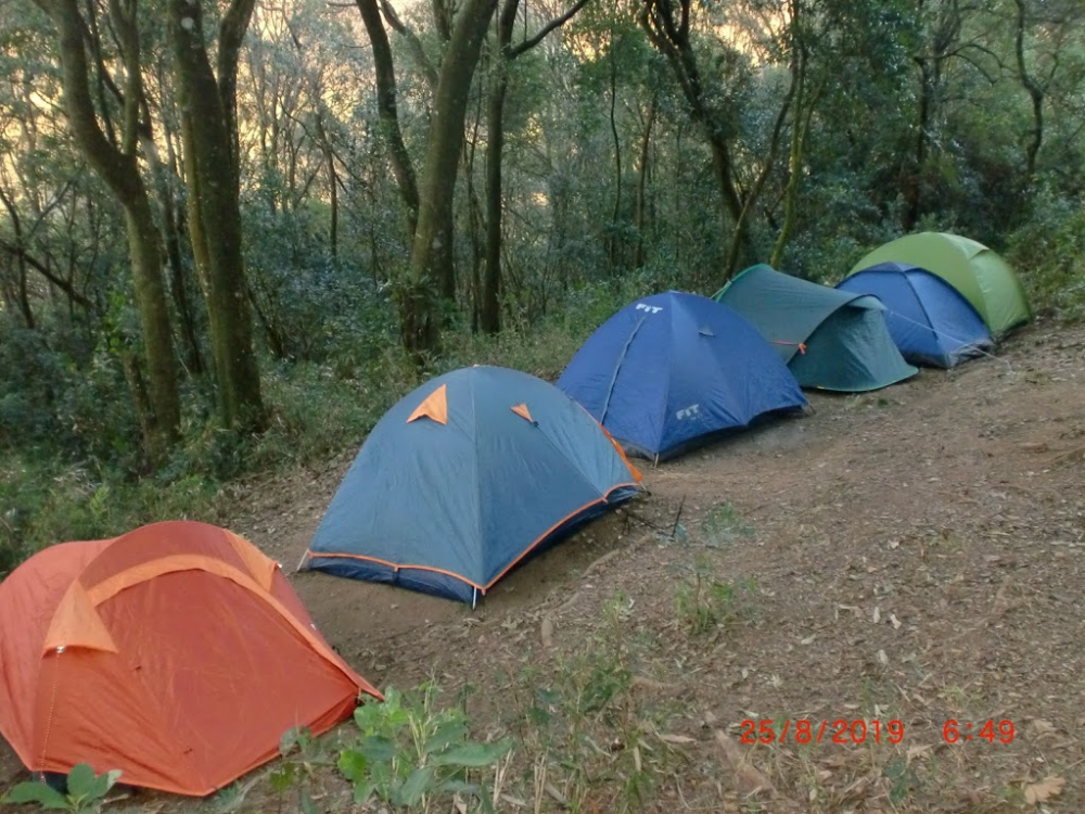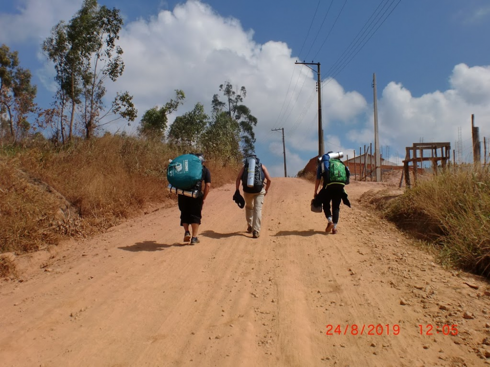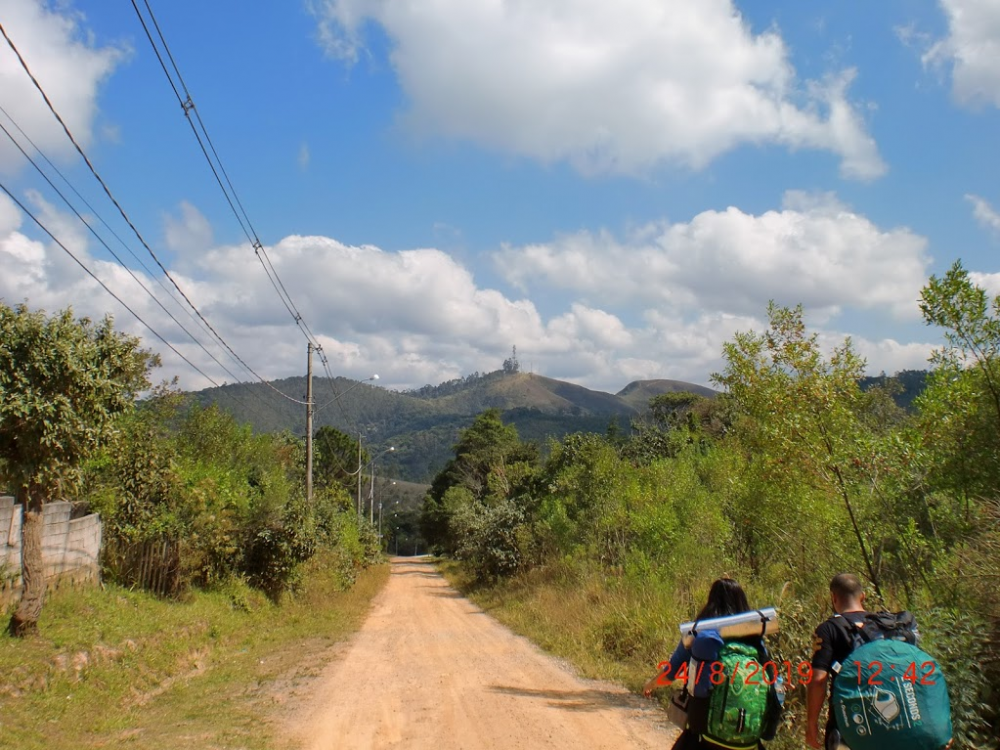 Travessia feita entre dias 24 e 25.08.2019. Todos as fotos estão em: https://photos.app.goo.gl/66XjHffMpRPdHuqA8 - Introdução - Tempos atrás, tinha ouvido falar que na região de Jundiai tinha a Serra do Japi que outrora cheguei a tentar uma investida, mas sem sucesso. Isso pq é proibido o acesso as trilhas em boa parte da Serra. Mas nunca imaginei que na cidade vizinha, Varzea Paulista, houvesse uma simpática serra com um belo visual e 3 picos com facil acesso e sem restrições. Um amigo me falou de uma tal Serra da Mursa e como chegar lá. E é claro que fui conhecer em um reles batevolta sem muita pretenção de ver algo lá "grande coisa". Mas acabei me surpreendendo e depois de conhecer um dos seus acessos principais por Varzea Paulista, fico sabendo que há outros acessos e até de uma travessia, a tal travessia do Mursa. E curioso como eu sou, planejo a logística e retorno novamente a Serra do Mursa, mas dessa vez para fazer uma travessia, entrando por um lado e saindo pelo outro. 1ºdia - Da Estação de Botujuru ao topo do Mursa Passava das 11 da manhã qdo saltei do trem na Estação de Botujuru da linha 7 da CPTM em companhia do Marcio, Paola, Felipe e Adriano e lá ainda esperaríamos a Suzana e o Diogo que não haviam chegado ainda. A pacata estação, localizada em um bairro de Campo Limpo Paulista, mas parecia uma estação fantasma. O Sol tentava aparecer timido entre muitas nuvens, mas o vento gelado e o friozinho da manhã insistiam em permanecer no comando. 15 minutos depois, Suzana e Diogo chegaram e com toda a trupe reunida, saimos da estação e fomos para uma lanchonete em frente fazer um rapido café da manhã reforçado. Estação Botujuru Saciados, as 11:40hs, demos inicio enfim a travessia em direção a Serra da Mursa, descendo a ladeira da rua a esquerda que fica em frente a estação até chegarmos ao inicio da "Estrada do Botujuru". Nela, seguimos até o trecho onde acaba a parte asfaltada e começa a de terra. Bem no inicio da estrada de terra, chegamos a uma bifurcação, onde abandonamos a estrada principal em favor de estrada a direita que vai no sentido desejado e inicia uma forte subida morro acima. E dá-lhe pirambeira!!! Chegando ao final do trecho asfaltado Trecho inicial da estrada de terra bem íngreme As casas do pequeno bairro de Botujuru e o movimento constante dos carros vão ficando para trás, dando lugar a calmaria e ao silêncio da pacata estradinha, para alivio de todos. Durante a caminhada, alguns poucos carros passavam pela gente, nos fazendo comer poeira. Na paisagem, só se via pequenos sítios e chácaras. Ao passar ao lado de uma delas, um cãozinho solitário late a nossa passagem. A Estrada segue alternando entre subidas e trechos planos com o sol castigando a todo momento. Olhava para a galera e as vezes perguntava como estavam e a expressão era de bufadas e mais bufadas, por causa das subidas constantes. A região é cheia de morros e já tínhamos a visão de todo o entorno, com a estação de trem e o pequeno bairro de Botujuru ficando cada vez mais para trás. 30 minutos de caminhada desde a Estação, chegamos ao alto de um morro e a subida dá uma trégua. A partir de agora, passamos a caminhar em meio a várias arvores de eucaliptos em meio a sombra, com o sol dando uma aliviada. Trecho mais plano com sombra Ignoramos 2 bifurcações a esquerda e só viramos na 3ºbifurcação, que fica praticamente no alto do morro, depois de já ter subido tudo que já tinha que subir. O caminho a seguir é em direção a Rodovia SP-354 pela "Estrada do Moinho". Se caso tiver dúvidas qto ao caminho, pergunte a moradores dos sítios do entorno o caminho para chegar a rodovia que não tem erro. Mais 30 minutos e chegamos ao ponto mais alto do morro, onde já é possível avistar a Serra da Mursa com suas cristas bem imponente a sua frente. A partir desse ponto, a estada de terra que antes só subia, inicia uma longa descida pirambeira até chegar a Rodovia. Pouco antes das 13:00hs, terminamos a descida e chegamos enfim na SP-354, onde o caminho a seguir é virar para a esquerda. Seguimos por cerca de 1,5 km e ao passarmos por uma placa marcando Km 51, andamos mais por mais uns 10 minutos até chegarmos a um trecho plano da rodovia e lá, se avista outra placa amarela do lado direito, que é a referência que a trilha está próxima. A entrada da trilha fica a uns 50 metros a direita ANTES dessa placa em meio a um capinzal fora de contexto. É preciso olhar bem, já que a entrada é meio discreta. No ponto mais alto dos morros, a Serra do Mursa fica visível a maior parte do tempo Trecho de caminhada final pela SP 354 Enfim, após quase 2 horas de caminhada desde a Estação, finalmente chegamos ao inicio da trilha, para a alegria de todos. Esse trecho inicial segue quase que em nível, sem grandes dificuldades. Ela dá uma longa volta pelo sopé da Serra do Mursa antes de começar a subir e logo em seguida, inicia-se os primeiros trechos de subida, mas dando algumas voltas afim de reduzir o desnível para quem sobe. A medida que vamos avançando pela trilha, os sons dos carros vão ficando para trás, dando lugar ao silêncio e a calmaria da mata fechada, para a alegria de todos que não viam a hora de chegar lá no topo. 15 minutos desde a rodovia, resolvo fazer um pit stop em um descampado no meio da trilha afim de molhar a goela seca e forrar o estômago, após 2 horas de caminhada desde a estação. Trecho inicial da trilha bem tranquila Descansados e revigorados, retomamos a caminhada, e mais trechos de subidas a frente. Vamos ganhando altitude rapidamente e a trilha vai dando voltas no vale para diminuir o desnível da subida. O suor começa a escorrer do rosto de cada um, mas não demora muito e logo emergimos no trecho de capim ralo e exposto do Mursa, sinal que estávamos nos aproximando do trecho final e mais aberto da trilha. Aqui, nos presenteamos com todo o visual do entorno, deixando em euforia a turma da primeira 