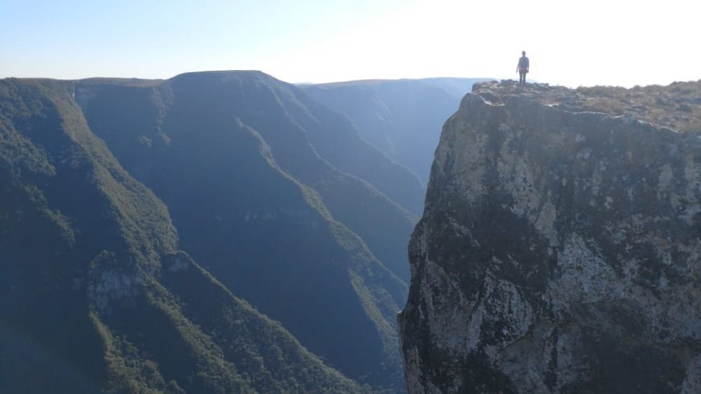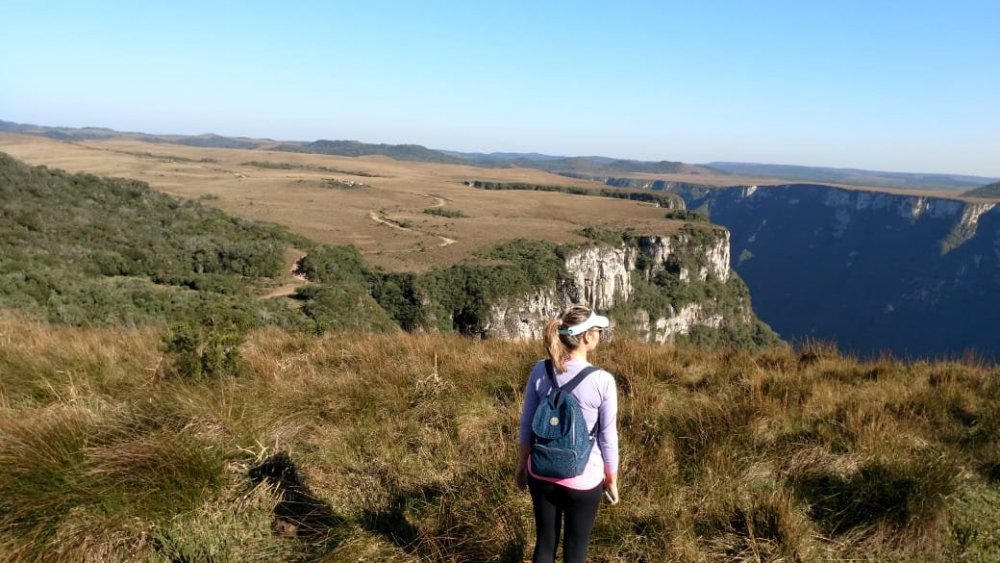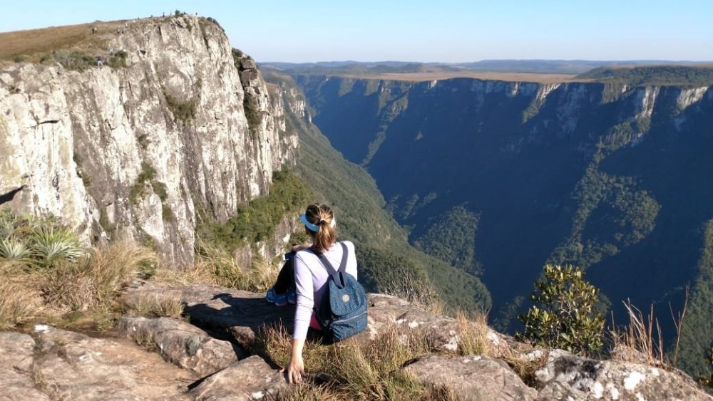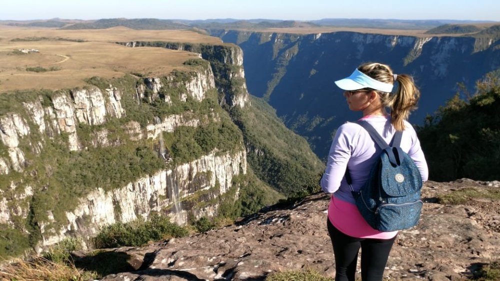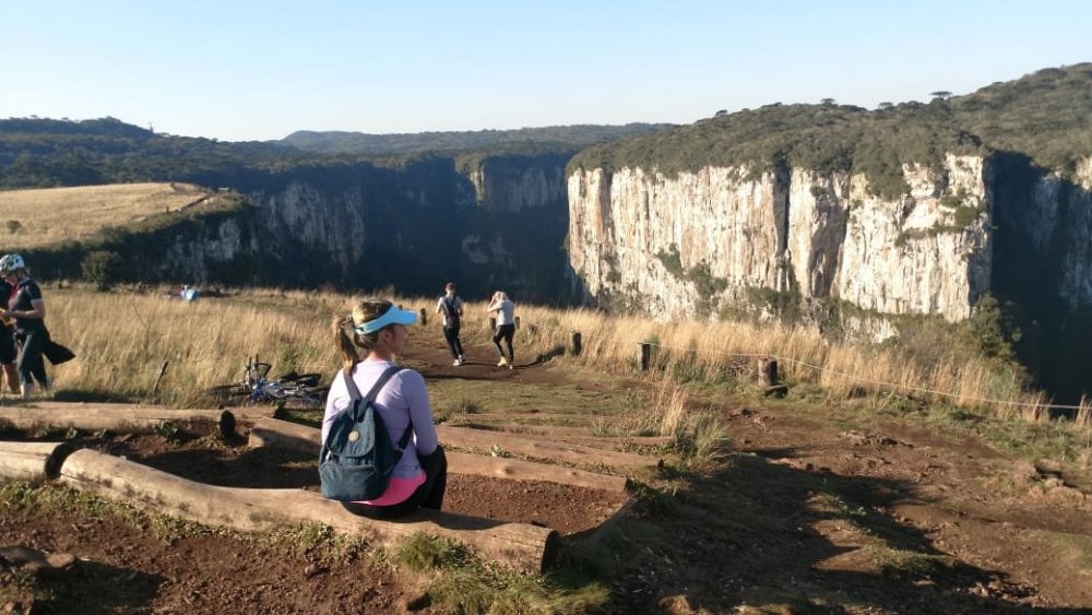 ROTEIRO À PÉ: RIO GRANDE DO SUL: Portão Bom Princípio Carlos Barbosa Garibaldi Bento Gonçalves - Vale dos vinhedos Bento Gonçalves - Pinto Bandeira Bento Gonçalves - pela cidade Bento Gonçalves - caminho de Pedras Caxias do Sul - flores da Cunha Caxias do Sul - estrada dos imigrantes Nova Petropolis Gramado - Natal de Luz Canela - Cachoeira do Caracol Gramado - pela cidade (parques, centro) Santa Maria Herval Picada Café Ivoti Sapiranga Três Coroas São Francisco de Paula São Francisco de Paula (parques, lagos e pela cidade) Tainhas Cambará do Sul Cambará do Sul - Canyon Itambezinho Cambará do sul - canyon Fortaleza Torres - praia SANTA CATARINA: Praia Grande - descida Serra do faxinal Balneário Gaivota - Praia Balneário arroio do Silva - Praia Balneário Rincão - Praia Balneário corrente - Praia Farol de Santa Marta - Praia Laguna - cidade histórica + Praia Orleans Guatá (distrito de Lauro Muller) pé da serra do Rio do Rastro Bom Jardim da Serra ROTEIRO DE ÔNIBUS : São Joaquim Urubici Bom Retiro Lages Fraiburgo CONTINUAÇÃO À PÉ SANTA CATARINA: Videira Treze Tílias Água Doce Jaborá Concórdia Seara Chapecó PARANÁ (ÔNIBUS): Curitiba Paranagua Morretes QUILÔMETROS /DIAS: +- 1.300 kms em 53 dias PESSOAS: No planejamento da viagem nossa preocupação era de como seríamos recebidos nas pequenas cidades, visto que algumas delas não tinham vocação turística, e "mochileiros"poderiam ser "novidade". Mas, essa preocupação foi rapidamente deixada de lado. Fomos recebidos muito bem em todos os lugares (exceto dois episódios, que não afetou em nada nossa caminhada). Ficamos impressionados com a educação e o acolhimento da população do Rio Grande do Sul e de Santa Catarina, sempre solícitos às nossas demandas. Poxa, que saudade de tudo aquilo, em breve voltaremos. CIDADES: Praticamente todas as cidades desse roteiro tinham pousada ou hotel, somente o distrito de tainhas-SC não tem, somente restaurante (mas esse trecho tem serviço de ônibus intermunicipal). ESTRADAS: Optamos em fazer pelas estradas asfaltadas(alguns trechos fizemos em estrada de terra), pois não conseguimos informações sobre estradas secundárias nesta região. COBRAS: Nunca vimos tantas cobras como na serra Gaúcha, teve dia que vimos umas 5, quase minha esposa pisou numa em uma rodovia asfaltada. Elas ficam enroladas na pista de rolamento, é normal vê-las todas esmagadas por veículos, ficam parecendo um desenho no chão (pois vários veículos passam por cima). ANIMAIS SELVAGENS: Outra coisa que nos chamou atenção, vimos muitas espécies(raposa, cobras, tatu, macacos, roedores, porco espinho etc) passando lentamente perto de nós. PRECONCEITO: Tivemos um fato lamentável num hotel fazenda. O gerente nos recebeu num descaso tremendo, nem respondia nossas perguntas, foi preciso a intervenção de uma funcionária para resolver a situação (quase mandei o cara a pqp), o infeliz está no lugar errado. O outro caso foi mais leve, mas fiquei puto. Tirando isso, foi muito tranquilo ser mochileiro naquela região, muito tranquilo mesmo. PREÇOS HOTÉIS: Variou de $25 a 95 por pessoa (mas a crise pegou todo mundo ), em alguns lugares priorizamos ficar em lugares melhores, Sempre pechinchamos os preços, na maioria dos casos conseguimos descontos, principalmente à vista. Não fizemos nenhuma reserva, foi muito tranquilo. PREÇOS REFEIÇÕES: variou de $10 a $35 por pessoa à vontade. Peso : de $20 a $44 o quilo. Obs.: em média coloque $22 por refeição sem bebidas. ABUSO CONTRA TURISTA: Só tivemos alguns casos de abuso, mas nada gritante: Você chega em duas pessoas e pede somente um cafezinho pequeno, o cara trás dois grandes (claro, mais caro) e na maior cara de pau diz que pedimos dois. Isso aconteceu nuns 5 lugares na serra gaúcha, lamentável! Obs.: para nos proteger disso, fazíamos assim: chegávamos nos caixas do estabelecimento e pagava antecipadamente, acabou o problema. CARONA: precisamos pegar carona em algumas oportunidades, e foi até tranquilo conseguir. .fomos ao canyon Itambezinho e no Fortaleza à pé, e voltamos de carona, foi tranquilo. .quando visitamos uma cachoeira em Cambará do sul, fomos à pé e voltamos de carona ( neste dia pegamos três, cada um nos levou num pequeno trecho). .dividimos o trecho entre Seara e Chapecó-SC em dois, como o ônibus demoraria muito, resolvemos ir de carona, demorou uns 40 minutos para aparecer. SEGURANÇA: Em momento algum tivemos problema, somente em Porto Alegre (visita ao mercado central que nos orientaram a ter cuidado), mas os moradores de PA estão preocupados. .na saída de Caxias do Sul, saída para estrada dos imigrantes tem um lugar que me pareceu inseguro, mas nada complicado. NEGOCIAÇÃO HOSPEDAGEM: Sempre negocie, em alguns casos conseguimos descontos de 10% abaixo dos sites de hospedagem. Principmente nesta crise, em alguns casos somente nós dois estavam hospedados no hotel.