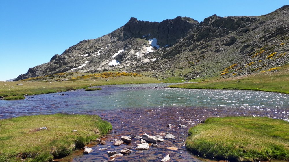 Siete Picos Início: Cercedilla Final: Cercedilla Duração: 5 dias Maior altitude: 2427m no Pico Peñalara Menor altitude: 1027m na ponte sobre o Rio Manzanares Dificuldade: média para quem está acostumado a trilhar com mochila cargueira. Há muita subida e muita descida todos os dias, com desníveis positivos (subidas) que chegam a 1227m (4º dia) e 1435m (1º dia). A Serra de Guadarrama se localiza a cerca de 70km a norte-noroeste de Madri e é avistada tanto dessa cidade quanto da cidade de Segóvia. Para proteger seus recursos naturais foi criado o Parque Nacional de la Sierra de Guadarrama. Esse parque nacional é bastante novo, criado em junho de 2013, mas ele veio para ocupar áreas já pertencentes a dois outros parques: o Parque Natural de la Cumbre, Circo y Lagunas de Peñalara, de 1990, e o Parque Regional de la Cuenca Alta del Manzanares, de 1985. Há vários roteiros possíveis de caminhada pelo parque nacional, com duração de um ou vários dias. Eu escolhi fazer um trajeto de forma circular a partir da cidade de Cercedilla que percorresse seis dos cumes mais altos da serra: Peñalara (2427m), Cabeza de Hierro Mayor (2376m), Bola del Mundo ou Alto de las Guarramillas (2254m), La Maliciosa (2219m), Siete Picos (2117m) e Peña Águila (2011m). Essas altitudes parecem bastante modestas, inclusive se comparadas às montanhas mais altas do Brasil, porém todos esses picos ficam cobertos de neve no inverno, o que obriga ao uso de equipamentos apropriados. A maior parte desse meu trajeto acontece dentro da área do parque nacional, com uma pequena parte dentro da área atual do Parque Regional de la Cuenca Alta del Manzanares, porém não há nenhuma sinalização nas trilhas indicando os limites desses parques. Por não ter essa informação exata, prefiro não mencionar no texto onde possivelmente entro e saio deles. QUANDO IR Para trekking o verão, para esqui o inverno. Como nos meses de férias de verão há muita procura por essa região, o guia Lonely Planet recomenda o trekking nos meses de junho e setembro. CAMPING SELVAGEM O camping selvagem é proibido em toda a Espanha. Ou permitido com muitas restrições em algumas comunidades e parques. Vamos detalhar isso um pouco. Primeiro é preciso falar da pequena confusão que existe na Europa entre os termos "camping selvagem" e "bivaque". No Brasil entendemos ambos os termos como pernoitar em um local não estruturado, não destinado a esse fim, escolhido ao acaso. A diferença para nós é que o "camping selvagem" pressupõe montar uma barraca ou alguma cobertura, e o "bivaque" é simplesmente dormir a céu aberto, com um saco de dormir ou saco de bivaque apenas. Na Europa nem sempre o entendimento é dessa forma. No caso da Espanha, segundo os sites consultados, os conceitos são os seguintes: . acampada libre: montar a barraca e permanecer vários dias com ela montada num local não estruturado . acampada nocturna ou pernocta con tienda: montar a barraca ao anoitecer e desmontar ao amanhecer, típico de uma caminhada de longa duração . vivac: dormir sem barraca ou outra cobertura montada Já em outros países, como a França, os dois conceitos acima de "acampada nocturna" e "vivac" são chamados de "bivouac", ou seja, para os franceses bivacar é passar uma noite num local não estruturado, com ou sem barraca. Já a "acampada libre", a ideia de permancer vários dias com a barraca montada, na França se chama "camping sauvage". Como estamos tratando da Espanha nesse relato, vamos colocar esses termos tal como os espanhóis os entendem. A "acampada libre" (pernoite com barraca montada por vários dias) é proibida em toda a Espanha, inclusive em todos os parques nacionais e regionais. Algumas comunidades autônomas a permitem, mas com muitas restrições (ver abaixo). Já a "acampada nocturna" é permitida em três dos dez parques nacionais da Espanha continental (Ordesa y Monte Perdido, Picos de Europa e Sierra Nevada), com restrição de horário para montar e desmontar a barraca e somente acima de determinada altitude. O "vivac" (pernoite sem barraca) é permitido apenas nos três parques citados e aqui no Parque Nacional de la Sierra de Guadarrama. A questão fica nebulosa quando a normativa do parque proíbe explicitamente a "acampada libre" mas não fala nada sobre a "acampada nocturna" e o "vivac". Quando o trekking é feito fora das unidades de conservação o que vale é a legislação do município e da comunidade autônoma. Fontes de consulta sobre as normas das comunidades autônomas são este site e este site. Neles vemos que a maior parte das 17 comunidades autônomas proíbe a "acampada libre" e a "acampada nocturna", ou as permite com muitas restrições como: distância mínima de cidades e estradas, número reduzido de barracas e pessoas, tempo máximo de permanência, exigência de permissão das autoridades locais. Mas a legislação do município é superior à da comunidade autônoma, o que torna ainda mais difícil saber se o acampamento (com ou sem barraca) é permitido em determinado local. Este trekking atravessa duas unidades de conservação: o Parque Regional de la Cuenca Alta del Manzanares e o Parque Nacional de la Sierra de Guadarrama. Em ambos a "acampada libre" é proibida (veja aqui e aqui). Como mencionei, o "vivac" (dormir sem barraca montada) é permitido no Guadarrama, mas somente no núcleo Peñalara e acima de 2100m de altitude (veja aqui). Nos arredores desses parques vale a legislação das comunidades autônomas de Madri e Castela e Leão. Ambas também proíbem a "acampada libre" (veja aqui e aqui), sem referência nos textos oficiais à "acampada nocturna" e ao "vivac". O que fazer durante uma longa travessia então? Se você for adepto do bivaque (dormir apenas com saco de dormir, sem barraca) não deverá ter problema algum. Se quiser montar a barraca, escolha um local bem discreto e afastado, fora do caminho e bem longe de estradas e casas. Monte a barraca ao anoitecer