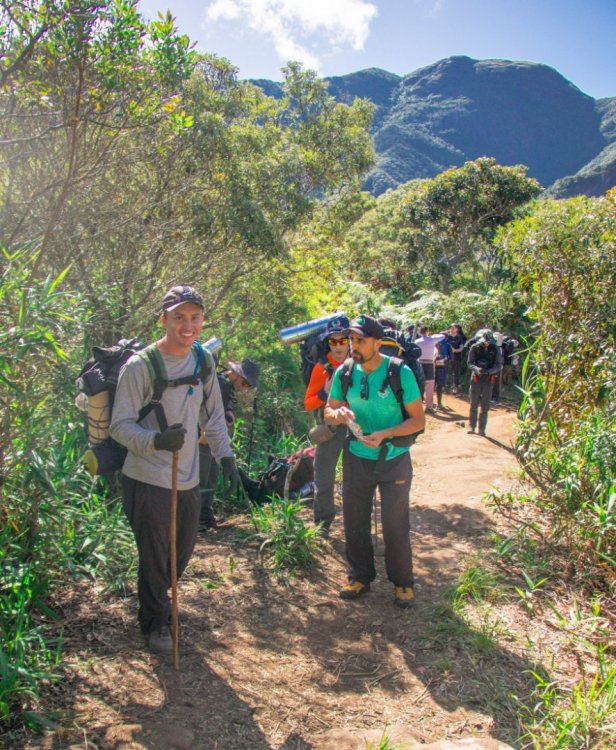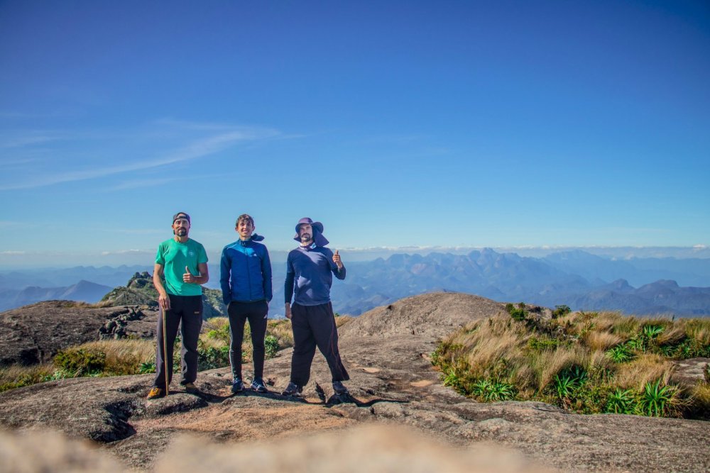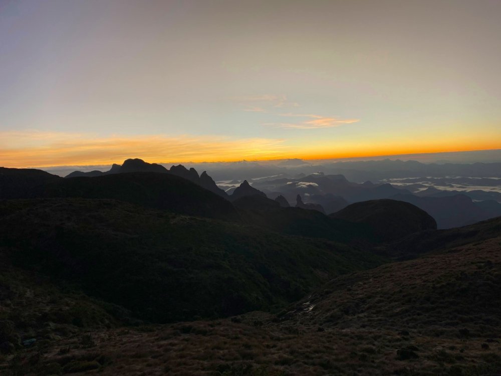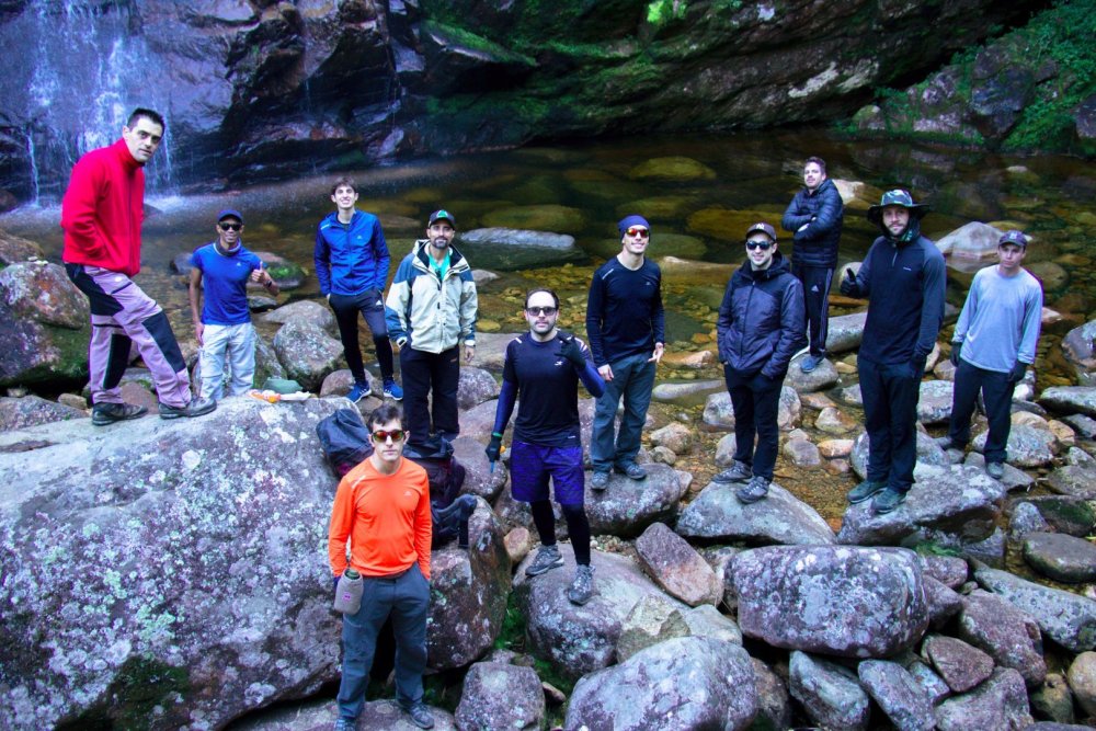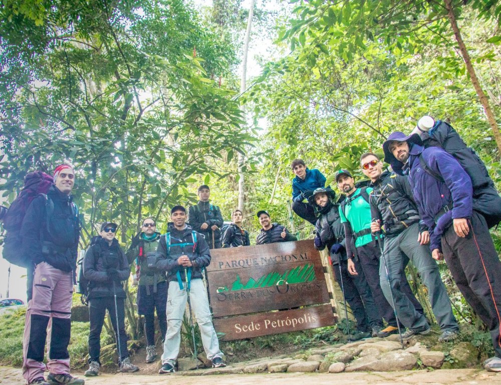 Como vão mochileiros? Espero que todos estejam bem. Depois de dois anos sem nos reunirmos, finalmente chegou o dia da nossa tão esperada travessia Petrô x Terê. Havíamos comprado os ingressos em Janeiro de 2020 para irmos em Maio, porém, com a Pandemia, não conseguimos ir e a travessia foi adiada até que o parque voltasse a abrir. Pois bem, conseguimos reagendar para os dias 21 e 22 de Maio de 2022. Como de costume, saímos de Santa Rita do Sapucaí com nosso motorista oficial, Edson, e seu irmão Edilson (mais conhecido como Claudinei) em 12 pessoas rumo à Petrópolis RJ. Começo meu relato com uma frase magnífica que fará todo o sentido nesse relato: "A caminhada até aqui pode não ter sido fácil, mas a contemplação dessa paisagem vale qualquer esforço." Da esquerda para direita: Henry, André, Bruno, Samuel, Éder, Isaac, Breno, Luiz Miranda, Saulo, Nandão, Luiz e Zé Renato. Chegamos em Petrópolis por volta das 07:30, fomos na entrada do parque assinar os papéis e começarmos a trilha rumo ao primeiro camping do Açu - começamos a trila 08h15. Passamos por vários lugares bonitos, cachoeiras, grutas, picos...seguem fotos: A subida até o Açu é pesada, como todas as pessoas já haviam informado. Por volta de 12h20min chegamos no abrigo. O dia estava ótimo, porém, começou uma neblina forte e não conseguimos registrar fotos do caminho até o Açu, mas temos algumas de lá: Montamos acampamento e fomos explorar mais o local. À noite prometia fazer muito frio, pois estava ventando muito. Levantamos cedo, depois de uma noite fria e fomos ver o nascer do sol - um espetáculo à parte da natureza. Tomamos café e fomos conhecer o famoso Portais de Hércules, não irei comentar sobre o mesmo, as fotos mostram por si só. Saímos de la e fomos rumo à Pedra do Sino, uma subida forte até chegarmos no Morro da Luva. Depois de um tempo caminhando, chegamos no Elevador, o primeiro dos dois pontos de atenção da travessia. Após passar o Elevador e subir um pouco mais, chegamos na Pedra da Baleia e de lá tivemos uma visão melhor da Pedra do Sino: Passamos pelo mergulho e logo enfrentamos outro ponto de atenção na trilha, o Cavalinho: Passando por ele e contornando o Sino, chegamos na base da pedra onde da acesso a ela Chegamos no abrigo 4, descansamos um pouco e descemos para finalizar a trilha, coisa de 10km até onde nossa van nos esperava. A descida é sem fim e muito cansativa. Considerações finais: Considerada uma das travessias mais bonitas do Brasil, senão a mais bonita, é uma travessia clássica que possui belezas particulares, recomenda-se fazê-la em 3 dias e confesso que é uma ótima recomendação. Gostaria de agradecer a todos que foram com a gente nessa aventura, as risadas, o companheirismo e os momentos felizes que tivemos. Fazia tempo que não nos reuníamos para acampar então foi muito bom. Com essa pandemia aprendemos a valorizar os momentos com os amigos e falo por todos aqui que esse momento foi aproveitado da melhor maneira. Fazer em dois dias e uma noite foi muito desgastante, mas como diz nosso companheiro Luiz Miranda: "Você afunda o pé no brejo, queima no sol durante a trilha, passa frio cedo e à noite e dorme sem tomar banho, para no final falar: 'Quando é a próxima'?" Galera, sem falsa modéstia, deixo aqui um show de fotos compartilhadas por todos que foram, mas, em especial, as fotos do Zé Renato ficaram show, sem palavras. Até a próxima...