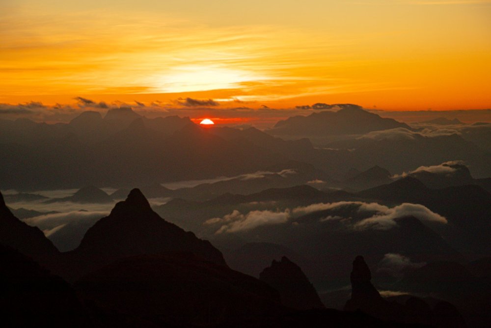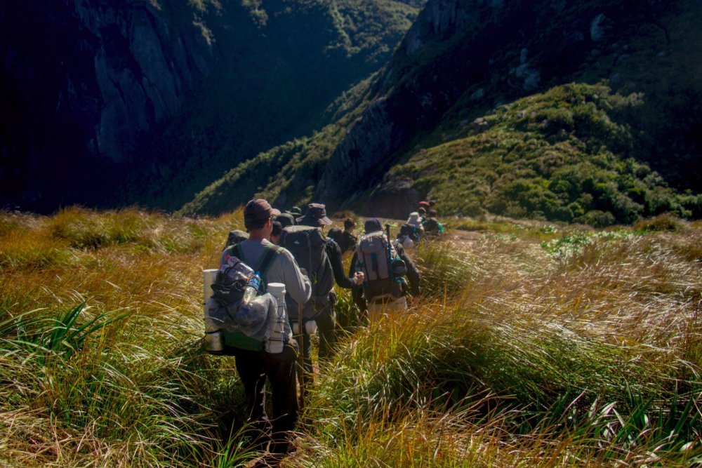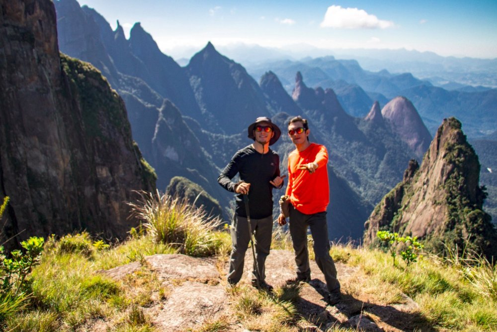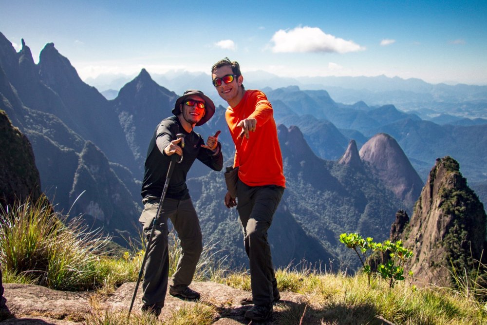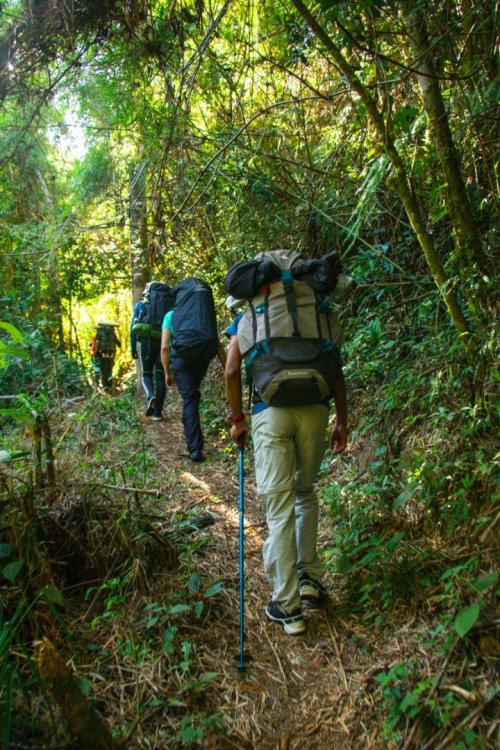 Como vão mochileiros? Espero que todos estejam bem. Depois de dois anos sem nos reunirmos, finalmente chegou o dia da nossa tão esperada travessia Petrô x Terê. Havíamos comprado os ingressos em Janeiro de 2020 para irmos em Maio, porém, com a Pandemia, não conseguimos ir e a travessia foi adiada até que o parque voltasse a abrir. Pois bem, conseguimos reagendar para os dias 21 e 22 de Maio de 2022. Como de costume, saímos de Santa Rita do Sapucaí com nosso motorista oficial, Edson, e seu irmão Edilson (mais conhecido como Claudinei) em 12 pessoas rumo à Petrópolis RJ. Começo meu relato com uma frase magnífica que fará todo o sentido nesse relato: "A caminhada até aqui pode não ter sido fácil, mas a contemplação dessa paisagem vale qualquer esforço." Da esquerda para direita: Henry, André, Bruno, Samuel, Éder, Isaac, Breno, Luiz Miranda, Saulo, Nandão, Luiz e Zé Renato. Chegamos em Petrópolis por volta das 07:30, fomos na entrada do parque assinar os papéis e começarmos a trilha rumo ao primeiro camping do Açu - começamos a trila 08h15. Passamos por vários lugares bonitos, cachoeiras, grutas, picos...seguem fotos: A subida até o Açu é pesada, como todas as pessoas já haviam informado. Por volta de 12h20min chegamos no abrigo. O dia estava ótimo, porém, começou uma neblina forte e não conseguimos registrar fotos do caminho até o Açu, mas temos algumas de lá: Montamos acampamento e fomos explorar mais o local. À noite prometia fazer muito frio, pois estava ventando muito. Levantamos cedo, depois de uma noite fria e fomos ver o nascer do sol - um espetáculo à parte da natureza. Tomamos café e fomos conhecer o famoso Portais de Hércules, não irei comentar sobre o mesmo, as fotos mostram por si só. Saímos de la e fomos rumo à Pedra do Sino, uma subida forte até chegarmos no Morro da Luva. Depois de um tempo caminhando, chegamos no Elevador, o primeiro dos dois pontos de atenção da travessia. Após passar o Elevador e subir um pouco mais, chegamos na Pedra da Baleia e de lá tivemos uma visão melhor da Pedra do Sino: Passamos pelo mergulho e logo enfrentamos outro ponto de atenção na trilha, o Cavalinho: Passando por ele e contornando o Sino, chegamos na base da pedra onde da acesso a ela Chegamos no abrigo 4, descansamos um pouco e descemos para finalizar a trilha, coisa de 10km até onde nossa van nos esperava. A descida é sem fim e muito cansativa. Considerações finais: Considerada uma das travessias mais bonitas do Brasil, senão a mais bonita, é uma travessia clássica que possui belezas particulares, recomenda-se fazê-la em 3 dias e confesso que é uma ótima recomendação. Gostaria de agradecer a todos que foram com a gente nessa aventura, as risadas, o companheirismo e os momentos felizes que tivemos. Fazia tempo que não nos reuníamos para acampar então foi muito bom. Com essa pandemia aprendemos a valorizar os momentos com os amigos e falo por todos aqui que esse momento foi aproveitado da melhor maneira. Fazer em dois dias e uma noite foi muito desgastante, mas como diz nosso companheiro Luiz Miranda: "Você afunda o pé no brejo, queima no sol durante a trilha, passa frio cedo e à noite e dorme sem tomar banho, para no final falar: 'Quando é a próxima'?" Galera, sem falsa modéstia, deixo aqui um show de fotos compartilhadas por todos que foram, mas, em especial, as fotos do Zé Renato ficaram show, sem palavras. Até a próxima...