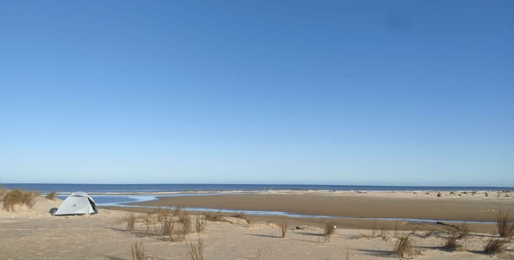 Em tempos complicados nos colocamos na estrada. Foram 26 horas dentro do ônibus. A lotação praticamente vazia, nem 15 pessoas, uma série de protocolos para evitar ao máximo qualquer contaminação. Depois de todo esse trajeto ficaríamos sós, isolados, quase uma quarentena. Sete dias completos e muitas surpresas, superações e no final um evento triste que poderia estragar toda uma viagem, mas deixa pra lá. As pessoas de boa índole não merecem que seja despendida grande atenção para os intrépidos. Dia 1 Ficamos meio período na cidade de Rio Grande, um local de muita história, 9 museus (fiquei sabendo) todos fechados, muita arquitetura e praças dignas de um povo desbravador. Ao meio dia pegamos o circular que vai até a Barra. Descemos no último ponto antes do retorno. Recebeu-nos um aguaceiro danado. Enquanto encapávamos a cargueira e colocava a capa de chuva, tomamos o primeiro banho. Só não foi maior porque fugimos para uma varanda ali do lado. Não demorou para o proprietário aparecer. Depois de algumas curiosidades sanadas, seguimos firmes pelo asfalto até o molhes. Já na chegada encontramos um bugue, nele um homem desesperado. Pedindo ajuda. Seu filho, um amigo e o tio haviam seguido pelo molhes mar adentro. O mar enfurecera e subiu rapidamente. O homem fugiu com o carro mas os outros nem sinal, o molhes já estava praticamente tomado de água. O mar quebrava com força, rajadas de ondas cobriam metros acima do monumento. Orientei o a correr na Barra e chamar o bombeiro ou qualquer coisa (nesse momento eu não havia visto a situação do mar ainda). Quando chegamos no molhes, padre mio... Olhei para trás e lá vinha o homem, não tinha ido atrás do bombeiro ainda. Quando peguei o telefone para fazer a ligação um casal que estava em um trailer ali do lado gritou - Lá, estou vendo alguém. Guardei o telefone, os três vinham com dificuldades entre as ondas. O pai desabou em prantos, e xingamentos. Horas mais tarde fui refletir: ele não ligara para o socorro temendo a notícia horrível que receberia. No final todos ficaram bem. Para nós, vida que segue. Primeiro não conseguimos chegar no molhes, o mar tinha tomado toda a praia. Desviamos pela direita e saímos nas dunas. Dali seguimos com dificuldades contra o vento e sobre as dunas. Para ter uma ideia os banheiros químicos que ficam na praia estavam todos tombados. Mas não se apavoremos, toda essa situação se devia a um ciclone que estava sobre o oceano nesses dias. Caminhamos os 8 km até o Balneário Cassino, durante o trajeto traçamos vários planos B. Se a tempestade não passasse teríamos de esperar alguns dias, em último caso desistir. Pernoitamos num Hostel. Ventava muito. Passei a noite monitorando o ciclone e os ventos pelo app wheater. De madrugada os ventos começariam a se afastar e no sábado já estaria tudo calmo. Dia 2 Acordamos cedo, o vento ainda soprava forte, mas o céu já estava melhor. Partimos. Na praia o mar tinha recuado um pouco, apesar do vento sul. Logo na primeira hora, depois da garoa um arco íris pintou sobre o parque eólico. Isso é um bom sinal. Seguimos firmes, 3 horas depois o parque eólico ainda estava às vistas. Chegamos no Naufrágio Altair. Pera lá! Chegamos perto dele, as ondas tomavam a ruína. O mar já avançara sobre a praia novamente, muitos dos canais de água se tornaram bancos de areia movediça engolindo os pés. Paramos para almoçar no Hotel Netuno, único lugar abrigado do implacável minuano (vento). Voltamos a marcha, agora pelas dunas. A praia estava alagada. Não demorou muito até que a Bruna fosse engolida até a cintura na areia movediça. Com muita luta conseguimos resgatá-la. Um misto de apreensão, medo e comicidade tomou conta dos dois. Às 15:00 demos por vencidos, depois de 30 km, tomamos o rumo da mata, em meio a um novo parque eólico, as poucas árvores restantes serviram de guarida. Dia 3 Saímos cedo, ansiosos por descobrir o que o mar reservara. Pelo menos o vento já reduzira pela metade. Com a praia larga a caminhada fluiu bem. Logo cedo avistamos o Farol Sarita. Mais um desafio psicológico. Caminhamos 25 km dos 30 km, avistando o luminoso, e nada de chegar. Parecia que o negócio tinha rodinhas. Logo depois do almoço o mar voltou a complicar. A caminhada voltou a ser pela duna. Em poucos quilômetros encontramos um homem todo esfarrapado, com uma faca e olhar desafiador. Com receio, me aproximei a tentar um diálogo. Não entendi nenhuma palavra que ele disse, tratava-se de um hermitão que vive nas dunas, provavelmente. Enfim às 15:00 chegamos no farol, e logo à frente tentamos ir para a mata acampar. Caminhamos 3 km circulando o mangue alagado até que decidimos acampar embaixo de um arbusto na duna mesmo (sei que é burrice, mas depois do hermitão, fiquei um pouco abalado, não com medo de ser atacado, mas vai que ele se sentisse invadido...). Depois de lavar as partes no alagado, deitamos na barraca e nem lembramos mais do hermitão ou de qualquer coisa. Nessa hora o vento já havia cessado. Durante o dia, manhã, encontramos muitos carros e motos fazendo a travessia, a penas um grupo de motocross parou e falou que acampariam perto do Farol Verga, que deveríamos passar lá. Também encontramos um leão marinho e muitas, muitas tartarugas mortas. Dia 4 Começamos cedinho na tentativa de fugir das dunas no período da tarde. O dia estava lindo, céu azul, vento leve, areia fina, mar calmo. Encontramos muitos carros fazendo a travessia nesse dia, também um grupo de ciclistas, que inclusive nos deram água. Logo avistamos a primeira carcaça de Jubarte, no segundo dia tínhamos visto uma Beluga morta. Mais à frente um naufrágio recente ainda bastante visível apesar das ondas. Logo que retomamos do almoço encontramos novamente a galera do motocross. Nos disseram que tinham feito um churrasco e esperado por nós, mas... No fim o seu Zeca falou que seria um bom lugar para acampar, e foi o que fizemos. Durante