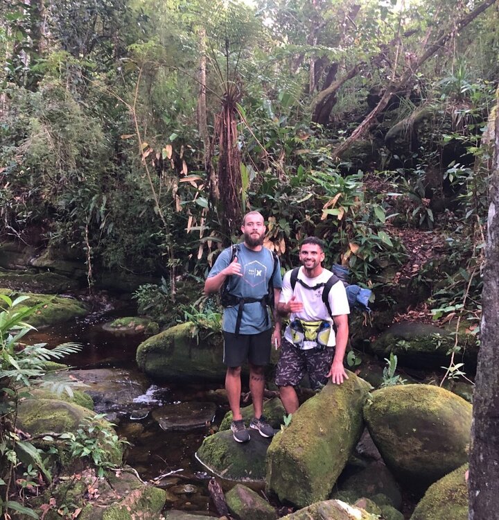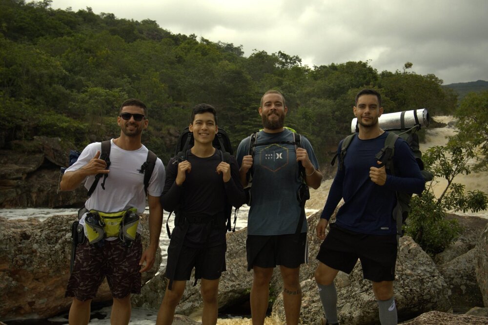 Relato completo: https://sites.google.com/takedas.com/os-irresponsveis/fumaça-por-baixo-o-início Instagram com fotos de viagens: https://www.instagram.com/viagens_e_musica/?igsh=MW9wMjVqZm90OHYzMQ%3D%3D&utm_source=qr# Valeu a pena? Tudo vale a pena Se a alma não é pequena. Quem quer passar além do Bojador Tem que passar além da dor. Deus ao mar o perigo e o abismo deu, Mas nele é que espelhou o céu. Fernando Pessoa A ideia Tudo começou a partir de conversas na academia, onde eu (Yan) e Raphael falávamos sobre trilhas e viagens as quais queríamos fazer ou que já tínhamos feito. A conversa fluía e sempre o assunto era o mesmo. Então, por que não fazermos uma trilha juntos? E por que não a trilha mais difícil da chapada diamantina, a cachoeira da fumaça por baixo? Assim definimos que iríamos. Faltava, então, mais pessoas para completar. Assim chamei um conhecido meu na época, ex-namorado de uma das minhas melhores amigas. Já tinha viajado uma vez com ele, mas não poderia considerá-lo amigo. Esse é Christian. Raphael por sua vez chamou outro conhecido, Otávio, também da academia. A trilha estava definida. Cachoeira da fumaça por baixo. Restava definir então o caminho por onde subiríamos. Serra do macaco, a mais demorada e que precisaríamos de mais um dia, ou uma tal de fenda da fumaça, a mais difícil, que nos faria economizar um dia? Não tínhamos mais um dia, então tinha que ser a fenda da fumaça. Trilha definida, planejamento feito, logística organizada e equipe formada. Agora é começar o que foi até então uma das melhores experiências da minha vida. A trilha - Dia 1 Saímos de salvador 3 da manhã de um sábado. Era um feriadão e só tínhamos 3 dias. Entramos no carro, apresentei Chris à Rapha e Otávio que, até então, não se conheciam. Começamos a viagem tocando um bom rock/reggae que todos no carro gostam e cantamos a viagem toda. Chegamos em Lençóis e começamos a trilha por volta de 8 da manhã. A primeira parte da trilha era atravessar o Rio Ribeirão que em condições normais é só sair pulando pedra. Assim começou nosso primeiro desafio, o rio estava completamente cheio e com uma correnteza absurda. Ficamos 2 horas procurando e pensando por onde passar com as mochilas, mas sem achar uma solução. Não tinha opção fácil, a correnteza estava forte e nos levaria facilmente se tentássemos atravessar com a mochila. Vamos desistir então? Voltar para Lençóis, ir para uma pousada e beber a noite toda pensando no que poderíamos ter feito? Não era uma opção. Eu estava sonhando com a fumaça por baixo. Já tinha visto ela por cima diversas vezes e vê-la por baixo foi uma promessa que me fiz quando criança, a primeira vez que subi. Pegamos então o cordelete de escalada, atravessamos nadando sem a cargueira, amarramos dos dois lados e fomos passando uma por uma se apoiando na corda. 3b834b17-17b6-46fd-b2d7-ed44c7372e46.MP4 Conseguimos passar. Logo após começou a subida da serra do veneno no sol desgastante do meio dia. Subida sofrida que levou pelo menos duas horas entre lajedos, brejos inundados e samambaias que deixaram cortes para levarmos de lembrança. Finalmente, terminando a serra, adentramos a parte mais central onde estávamos cercados de paredões gigantes que já refletiam o dourado do sol, indicando o início do fim da tarde. Começamos então a descida para o córrego da muriçoca, onde paramos para encher as águas e subirmos para o mirante da toca da onça, lugar que é possível avistar a cachoeira da capivara. Começou então a descida para a cachoeira do palmital, onde tive um dos maiores sustos da minha vida. Era fim da tarde e estávamos cansados, andando o mais rápido possível para aproveitar ao máximo a luz que nos restava. Era um trecho complicado e eu tinha que ficar muito atento ao GPS para não perder a trilha. De repente, em questão de segundos, ouço um movimento rápido bem na minha frente e um som de chocalho inconfundível. Uma cascável enrolada, avisando e preparada para dar o bote em caso de ameaça, a um palmo de distância da minha bota. Imediatamente, literalmente pela minha vida, dei um pulo para trás e fiquei passando a mão na minha perna. Fui picado? E agora? Estamos a 6 horas de qualquer lugar. Felizmente não fui picado e estou aqui para contar. Desviei o caminho rapidamente e seguimos o rumo. Logo após a adrenalina passar veio na minha mente o mais sincero pensamento: se eu fosse picado eu estaria morto. Sim. Morto. Sensação estranha que não sei descrever. Chegamos enfim no palmital, onde não seria o nosso acampamento pelo planejamento. A ideia era dormir na cachoeira do Capivari ou até na toca do macaco, mas já era noite e o dia foi longo. Preparei o tradicional (hoje virou tradição) bolonhesa. Um dos momentos mais esperados do dia, comer o macarrão quente com um queijo parmesão ralado acompanhado de uma garrafa de vinho para cada pessoa depois de 20 km de trilha. Nada mal. A trilha - Dia 2 Começamos o dia tarde às 8 da manhã sem a mínima noção do que nos esperava pelas próximas 14 horas. Fomos até a cachoeira do palmital que foi uma bela surpresa. Lugar entocado, coberto de musgo e de beleza única, diferente de todas as outras cachoeiras. Saímos e fomos então a caminho da cachoeira do Capivari para seguirmos para a tão esperada fumaça por baixo. Hoje era dia dela. Chegamos, enfim, ao vale da cachoeira da fumaça às 12:30. Uma mudança completa de cenários. Saímos de um local de mata atlântica mais fechada (toca do macaco) para uma mata cujos raios solares passavam por entre as folhas criando um visual de filme. Mágico. Mais perto da fumaça o cenário mudou. Pedras maiores surgem e os incansáveis pula pedra são trocados por uma trilha cruzando a mata na lateral esquerda. WhatsApp Video 2025-04-02 at 12.33.36.mp4 Por volta das 15h foi o grandioso momento. Chegamos na fumaça por baixo e, não, não era o que eu imagina. Isso porque é impossív