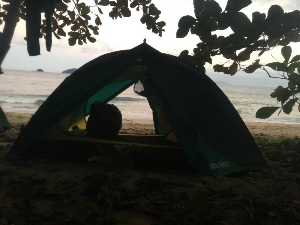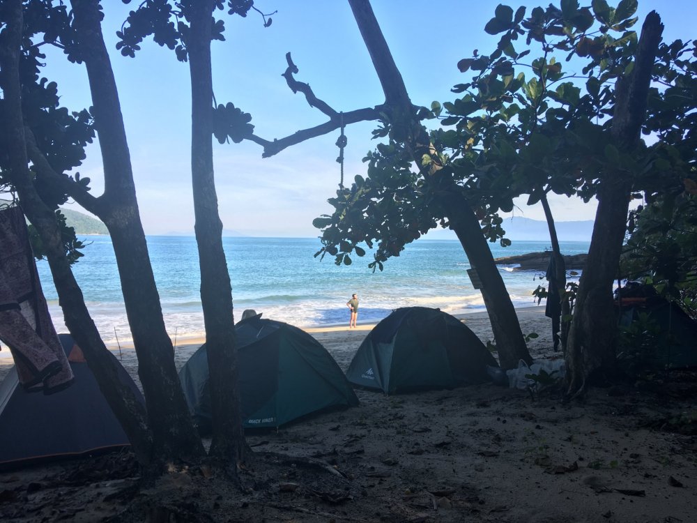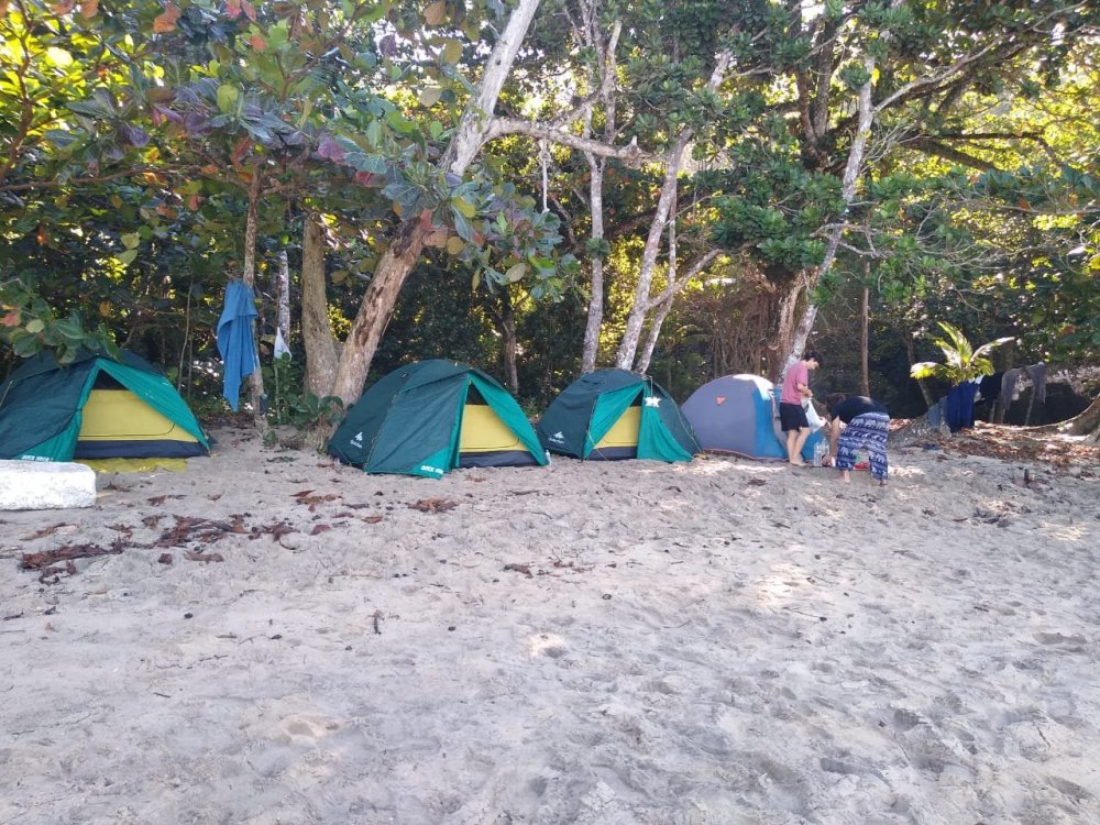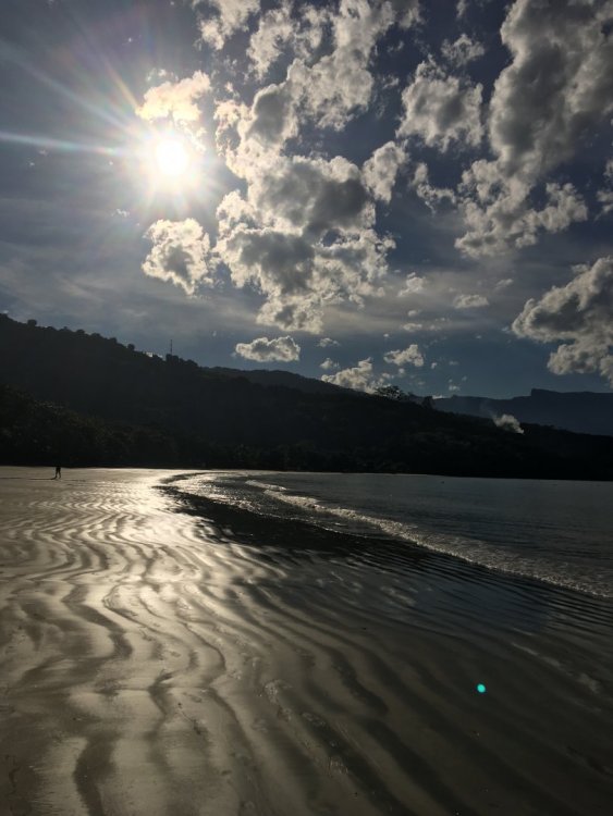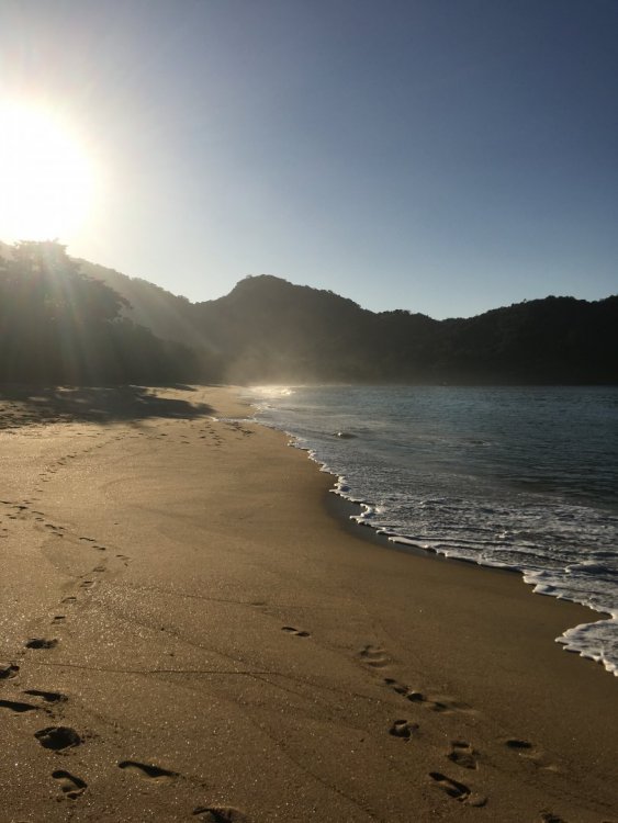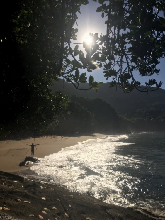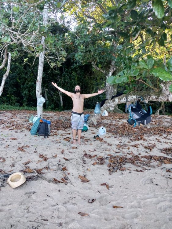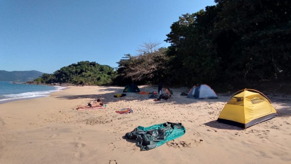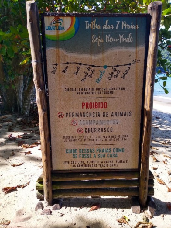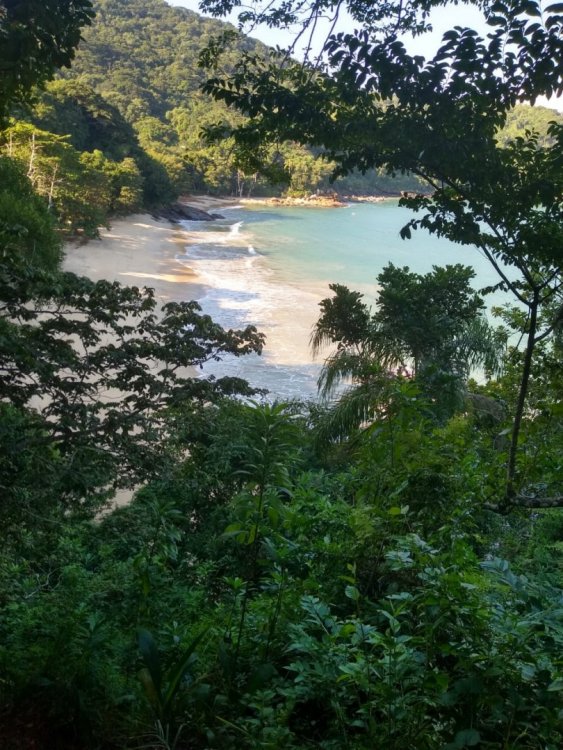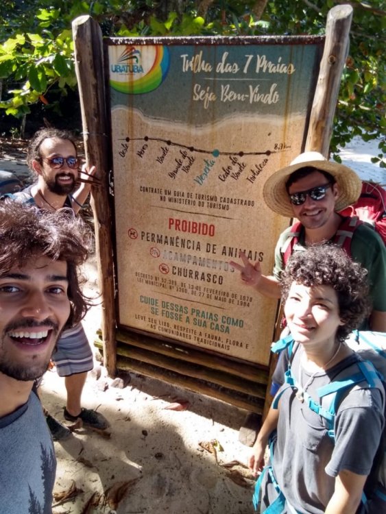 Trilha das Sete Praias - Ubatuba - SP Praias: Lagoinha, Oeste, Peres, Bonete, Grande do Bonete, Deserta, Cedro, Fortaleza. Dificuldade: Fácil Distância: 8,9 km Salve salve mochileiros! Segue o relato desta trilha fantástica situada na região de Ubatuba, litoral Norte de São Paulo onde iniciamos na Praia da Lagoinha que fica a aproximadamente 29 Km do centro da cidade e finalizamos na praia da Fortaleza 27 Km do centro de Ubatuba. A trilha é de nível fácil com poucos lugares de subida e com belas paisagens. Todas as praias contém água potável em nascentes que ficam no início das praias e existem alguns bares nas praias porém como fomos em baixa temporadas a maioria estava fechada. Partida - 06/06/19 - Ida 12:30pm - São Paulo x Caraguatatuba -> BlablaCar R$38,00 - Caraguatatuba x Praia da Lagoinha-> Ônibus R$3,80 Partimos do terminal rodoviário do Tietê em São Paulo Capital de onde combinamos com o motorista do aplicativo BlablaCar para sairmos ao 12:30pm. Saímos no horário marcado e fomos em 5 pessoas no carro, pois já havia uma pessoa fazendo o trajeto também. Viagem tranquila e segura de duas horas e meia de duração até chegarmos a Caraguatatuba já no litoral onde descemos na rodoviária e lá mesmo pegamos um ônibus do transporte público com sentido a Ubatuba e depois de aproximadamente 35 minutos descemos no ponto próximo ao supermercado Garotão. O ponto de ônibus fica na praia da Lagoinha e é onde se inicia a trilha das sete praias. Após descer no ponto é só caminhar poucos metros até a entrada do condomínio mais a frente e se informar com algum dos seguranças da entrada do condomínio onde fica a entrada da trilha que eles já estão acostumados a informar as pessoas que querem fazer a trilha. A trilha fica do lado esquerdo da praia da Lagoinha logo após um rio que corta a praia desaguando no mar, mas como chegamos com a maré já alta não conseguimos caminhar pela praia e atravessar o rio para começar a trilha. Com ajuda de um haitiano que encontramos na praia, o simpático Jean Pierre, nos informou onde seria o começo da trilha dando a volta para iniciar na entrada de um condomínio. Nos informou também onde teria um mercado mais próximo, o Mercado Garotão. Como entramos na praia não sabíamos da situação da maré cheia impossibilitando a travessia, então com a ajuda do haitiano conseguimos voltar e passar no mercado para comprarmos algumas coisas para passar a primeira noite e começar a trilha. Iniciamos a trilha já quase anoitecendo por volta de umas 17:00pm. Saímos do mercado e bem de frente atravessando a rodovia já se vê a entrada do condomínio Recanto da Lagoinha onde caminhamos poucos metros e logo após a guarita da entrada viramos na primeira rua a direita, a Rua Sabiá e caminhamos até uma outra guarita onde se inicia a trilha em uma entrada a esquerda que contém uma placa de área de preservação ambiental ao lado de uma cerca do próprio condomínio. Como a claridade estava ficando cada vez menor, passamos pela Praia do Oeste no escuro e caminhamos até a segunda praia, a Praia do Peres onde foi o nosso primeiro camping. Armamos acampamento já no escuro em um pier de pescadores que contém um gramado e um grande barracão de frente para o mar. Conversando com alguns pescadores que ali estavam fomos informados que logo de manhã um senhor que cuidava do local iria nos expulsar dali. Pensamos em caminhar mais adiante na terceira praia mas decidimos ficar e acampar por ali mesmo e apostar que o senhor não nos dê uma bronca muito grande de manhã por termos acampado ali rs. Acordamos por volta das 8:00am e quando estava saindo da barraca para lavar o rosto em uma queda de água doce próximo dali lá estava o senhorzinho que nos informaram que iria ficar zangado por causa das nossas barracas. Resolvi dar bom dia pra quebrar o gelo mas não obtive sucesso. Então acordamos fizemos um café rápido no fogareiro a gás desmontamos nossas barracas e seguimos para a próxima praia da trilha, a Praia do Bonete ou Bonetinho como é chamada pelos locais. Ficamos um dia na Praia do Bonete, havia uma bica com água potável geladinha localizada no começo da praia. A praia do Bonete tem areias claras e águas cristalinas muito convidativa a um belo banho de mar. Armamos nossas barracas bem no meio da praia em um banco de areia mais alta debaixo de algumas árvores. Nesta praia havia algumas placas proibindo a entrada e camping pois a área seria propriedade particular. Decidimos acampar na praia mesmo e não entramos mais a dentro da mata. Acordamos por volta das 8:00am e desmontamos rápido as barracas, tomamos um belo café da manhã a beira mar e ficamos um tempo contemplando a praia até partirmos para a próxima praia, a Praia Grande do Bonete. Caminhamos até a ponta da praia onde existe uma placa amarela com informações aos turistas. Iniciamos a trilha e alguns minutos depois já tínhamos um lindo visual da Praia Grande do Bonete. A trilha levou uns 15 a 20 minutos e logo estávamos na Praia Grande do Bonete. Chegamos e logo vimos que bem no começo da praia havia uma bica de água potável geladinha. Caminhamos um pouco e decidimos acampar quase que no começo da praia mesmo, do lado que não tem casas na beira da praia. Armamos nossas barracas na praia debaixo de algumas árvores e de frente para o mar. Fizemos uma fogueira para o almoço e janta e ficamos neste local por três dias. No primeiro dia conseguimos finalmente entrar no mar, conseguimos também tomar banho em um bolsão de água doce que tem atrás das pedras no começo da trilha e fizemos um belo jantar vegano pra fechar o dia com chave de ouro. No segunda dia acordamos um pouco mais tarde, colocamos as barracas pra tomar um pouco de sol, tomamos um belo café e fomos caminhar até a outra ponta da praia que olhando de longe parecia que tinha um movimento de pessoas por la. Caminhamos até lá e descobrimos que havia alguns bares abertos onde tomam