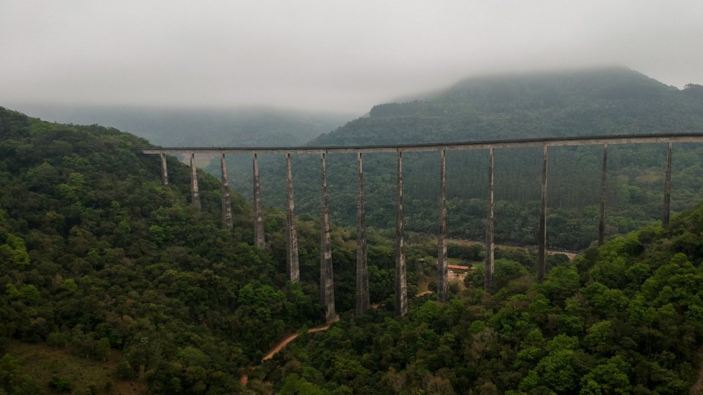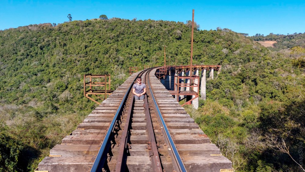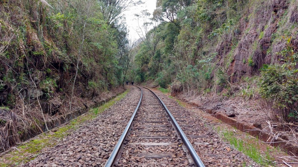 Trekking Ferrovia do TrigoJonas Silva ForadaTribo postou um tópico em Rio Grande do Sul - Relatos de Viagem 2020 ano imprevisível. Ficamos a deriva desde fevereiro. Toda a temporada de montanha foi se embora, as viagens minguaram. Precisamos recorrer a destinos não antes planejados. Foi assim que topamos com a Ferrovia do Trigo, como descrevi em relato anterior, conseguimos fazer um circuito pelo Campo dos Padres em setembro e cinco dias antes de sairmos para a Serra Geral catarinense, recebemos um convite para fazer o trekking Guaporé Muçum. É claro que já havíamos ouvido falar e lido algum relato, mas não estávamos muito iterados sobre. Não gosto de perder oportunidades, então, após uma lida rápida em um relato e olhadela no wikiloc aceitei a proposta. O trekking não tem muito segredo é autoguiado, e a logística também é tranquila. Chegando ao Início De Urubici descemos por Lages, Vacaria até Muçum. A viagem já foi um charme, depois de Vacaria, entrei em uma área de vinhedos e colonização italiana (Ipê, Antônio Prado, Nova Prata etc.) com muitas capelas, colinas e construções majestosas. Acredito que faça parte de alguma rota turística, mas como não conheço muito do RS né. Resumindo, estou pensando em voltar para lá fazer um tour bem longo. Saímos em Guaporé e fomos dormir em Muçum, no Hotel Marchetti, talvez seja o único da cidade. Fizemos um acordo com o proprietário que permitiu deixarmos o carro por ali, sob supervisão dele. E diga se de passagem o rapaz foi nota mil, além de zelar pelos carros, o hotel é fantástico, dá show em muito Ibis por aí. Excelente atendimento, limpeza impecável e o café da manhã top. No dia seguinte pegamos o ônibus suicida para Guaporé. A viagem foi uma história. Começou quando perdi a passagem, e tive de entrar no ônibus sem ela, ainda bem que o motorista não encrencou. Durante o trajeto nos contou muitas de suas peripécias, quando dirigia carretas, vários golpes em danceterias e restaurantes (talvez ele estivesse achando que eu estava dando o balão na passagem). De repente, a 90 km/h ele vira para a esquerda num portal dentro do vale, o coração quase sai pela boca. A conversa acabou até Guaporé (acabou o fôlego ou rezávamos para que não houvesse outro drift). Descemos na entrada de Guaporé, e a poucos metros já podíamos ver os trilhos. A Trilha Começamos a trilha, meio desconfiados com alguns carros de fiscalização parados ali na estação. Mas logo estávamos todos no ritmo dos dormentes. Os primeiros 6 km são monótonos, os passos ainda teimam em ser descompassados (é cada bicuda no trilho/dormente). Então começam os viadutos, e a direita o vale começa se exibir. Lá pelo terceiro/quarto viaduto já é possível ver o majestoso Rio Guaporé a bailar no vale. Surgem os primeiros túneis. Uns curtos, outros alongados, mas nada muito incrível. Topamos com a equipe de manutenção logo cedo, foi o teste que precisamos para ter certeza que não seríamos proibidos de passar por ali, afinal andar nos trilhos não é tão "legal" assim. Batemos um papo, tudo ok, seguimos. Já eram 14:00 quando chegamos no primeiro grande viaduto, vazado, muito alto e comprido. Cautelosamente passamos. Só fomos saber no dia seguinte que era o Mula-preta. Ali do lado tinha um sinal de acampamento, mas como era cedo e os destroços indicava fluxo de pessoas considerável, resolvemos seguir. Pouco tempo depois entramos num túnel infinito. Foram 40 min no meio do breu. Apenas os pontos de luz das lanternas indicava a existência de vida naquele buraco. Saímos do túnel de 2000 m já num local ideal para o pernoite. Uma estrada de caça ao lado da ferrovia, com sinal de acampamento, a poucos metros de um córrego de água limpa. Armamos as barracas, e só fomos acordados às 02:45 quando o gigante de aço rasgou a escuridão com seus olhos de fogo e silvo de dragão. No dia dois, começamos a caminhada era idos 07:00. Mais alguns túneis e chegamos no Viaduto Pesseguinho (esse possui placa de identificação), de posse dessa informação já suspeitamos que aquele do dia anterior era o Mula-preta. Quando estávamos parados para tirar algumas fotos e recuperar o fôlego fomos surpreendidos por um senhor vestidos de militar. A abordagem foi bem categórica: - Os senhores sabem que é proibido andar nos trilhos? - Indagou o militar. - Sim senhor, está escrito em letras garrafais na placa ali da entrada do viaduto. - Respondo em tom bagual, hshs. - Então o que fazem aí em cima? - Retrucou o homem. - Estamos a fazer a travessia. - Mudei o tom, para não criar problemas. Logo de início tinha percebido que o 'militar' era proprietário do camping ali embaixo. Ele frustrado com o movimento veio desabafar. Tentou aplicar um sermão, falando que a polícia estava prendendo e que haviam câmeras na entrada, saída e no camping dele, que iria passar para a polícia e estaríamos encrencados. Ouvi pacientemente. Ele acalmou e depois esclareceu algumas dúvidas, contou alguns acontecimentos da travessia recentes, passamos quase 1h conversando (no final do dia fomo saber que esse proprietário costuma causar alguns problemas por ali, inclusive já foi preso por abordar trekkers armado). Passado essa lorota seguimos. Atravessando viadutos, mergulhando em túneis, eles estão por toda a parte. O Rio Guaporé a cada curva é mais bonito. Depois de passar pela Cachoeira da Garganta com muita gente, na altura dos 35 km paramos para almoçar. Como o maps.ME indica um cachoeira ali perto, não tive dúvidas, achei uma trilha e fui procurá-la com um dos parceiro. Andamos 2 km morro adentro até sair nas margens do Guaporé, lindo de águas turquesas. Mas nada da cachoeira, o pequeno resquício de água nem chegava no Guaporé. Desistimos de fazer a incursão pelo leito seco até a base da queda. De volta aos trilhos, passamos mais um viaduto e na entrada do seguinte, saindo para à esquerda tem uma cascata. Paramos par