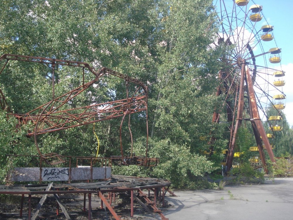 Acho que um dos pontos altos em minha vida foi ter colocado os pés nesse lugar, e com meus próprios olhos ver o que possívelmente será do planeta quando nós, humanos, partirmos dessa para melhor. Chernobyl é mesmo um local único e assustador. A vegetação descontrolada e livre, as paredes caindo, vidros quebrados, portas arrebentadas e objetos pessoais deixados para trás. Não apenas isso, Chernobyl é uma oportunidade única de vivenciar uma era congelada no tempo, a era soviética. Vamos aos fatos: • Chernobyl é o nome de uma pequena cidade (agora fantasma) localizada no norte da Ucrânia, muito perto da fronteira com a Bielorrússia. Próximo dali foi construída, ainda na antiga União Soviética (URSS), uma central nuclear. A cidade próxima deste local, e que de fato sofreu com a tragédia, é um pouco menos conhecida, e leva o nome de Pripyat. Ainda que não muito grande, em Pripyat viviam cerca de 50 mil pessoas, quando em 1986 um teste na usina deu errado, e um dos reatores colapsou, liberando altíssimas doses mortais de radiação por toda a área! Após o acidente, 3 dias depois as pessoas tiveram que sair às pressas de suas casas, por odem do governo, sem nem mesmo saber o motivo. Muitos pensavam que voltariam após alguns dias. Mas não foi bem isso o que aconteceu… Conhecendo o inimigo: a radiação Existem 3 tipos de radiação, conhecidas como radiação alfa, beta e gama. Os dois primeiros tipos são partículas sem muito poder de penetração, e que são barradas por poucos milímetros de proteção, como chumbo. A radiação gama, por outro lado, tem altíssimo poder de penetração, sendo necessária por vezes uma placa de chumbo de até 10 cm para contê-la. Por esse motivo, a primeira recomendação no tour é: UTILIZE ROUPAS QUE CUBRAM TODO O CORPO! Utilize camisas de manga longa, calças compridas e um calçado fechado, como bota. É óbvio que isto não barra toda a radiação incidente, mas pelo menos dos dois primeiros tipos você estará “a salvo”. Mas não se preocupe! O tour é seguro e bem feito. Na verdade, mesmo em uma radiografia (raio-x) ou um voo de longa duração recebemos uma certa dose de radiação. Então vai sem medo e curta esse lugar peculiar! Como chegar a Chernobyl? Simples: com um tour! Esta é a única maneira legal de se entrar na área. Apenas agências de turismo autorizadas e credenciadas pelo governo ucraniano têm permissão para realizar esta atividade. Em geral, todos os tours partem da capital ucraniana, Kiev. Na minha ida contratei o tour de 1 dia da companhia Chernobyl Tour (https://chernobyl-tour.com/english/). Na altura, fui no mês de agosto (alta temporada) e paguei cerca de USD 100,00 por todo o processo. Neste preço estava incluso o transporte de ida e volta, autorização para entrar na área e guia. Por falar nisso, a guia do tour era muito bem informada e prestativa. Sem dúvidas recomendo esta empresa. Feito isso, pé na estrada! Chernobyl possui 2 zonas de exclusão, uma de 30km e uma de 10km, contados a partir do marco zero, ou seja, a usina nuclear (ou o que sobrou dela). Cada uma das zonas é um posto de controle, vigiado pelo exército ucraniano, e este será seu primeiro contato com o local. Logo na primeira zona, a de 30km de distância, a van parou e descemos todos para que fosse feita a verificação dos passageiros. Nesse momento, checaram nossos passaportes e tudo mais, incluindo a autorização da agência para realizar esta atividade. Detalhe: brasileiros não precisam de visto para visitar a Ucrânia Passado pelo primeiro controle, seguimos em frente, agora já dentro da zona fantasma! Digo fantasma, pois desde o acidente em 1986, não há mãos humanas que façam a manutenção do local, e assim a natureza foi tomando conta. Prédios e casas foram abandonados, sofrendo com o tempo. Abaixo, uma foto de um antigo mercadinho soviético que ali existiu. Nem produtos, nem pessoas, nem nada. Só as marcas sombrias do que um dia foi uma próspera civilização. Quando estava lá, por vezes me sentia mesmo em outro lugar. Um cenário pós-apocalíptico, talvez. É realmente impressionante! Continuando o caminho pela estrada, chegamos na entrada da antiga cidade de Chernobyl! Sabe o que é interessante? Ainda moram pessoas lá!!! Cerca de 500 trabalhadores estão morando nesta cidade. Estas pessoas estão encarregadas de, em turnos, construir o novo galpão de contenção de radiação da usina, pois o antigo está vazando. Certamente estes são trabalhadores mais bem pagos, por razões óbvias. Ainda assim, como disse, no acidente a cidade de Pripyat foi muito mais afetada, pois está mais próxima da usina, e é para lá que seguimos. Após andar mais um pouco com a van, chegamos na última fronteira, a zona de exclusão de 10 km. Deste ponto em diante é terminantemente proibido passar a noite. Nesta área a radiação é de fato muito maior do que na cidade de Chernobyl em si! Difícil de acreditar, mas Pripyat é mesmo o local mais afetado, embora o acidente leve o nome de “Chernobyl”. Aqui as coisas ficam estranhas! Não são apenas casinhas e supermercados abandonados, é uma cidade inteira! Uma cidade inteira, com ruas, prédios, avenidas e praças tomadas pelo tempo. Uma história que está aos poucos se apagando com o passar dos anos. Vazio, apenas. Só se ouve o vento. O vento que corta os vidros quebrados das janelas. Na escola, ou o que sobrou dela, não se aprende mais nada. Livros espalhados pelo chão e cadeiras velhas apodrecendo nos dão uma aula importante da nossa fragilidade perante a natureza. Nas paredes da escola, o antigo sonho soviético de conquistar o espaço vai desbotando na solidão. A partir daí estávamos andando a pé, explorando a assombrosa e quieta cidade de Pripyat. Nos deparamos com uma antiga creche abandonada, que sem dúvidas é um lugar peculiar. Quando você pensa que está só, tem sempre uma boneca velha malvada te espreitando. Ou mesmo um co