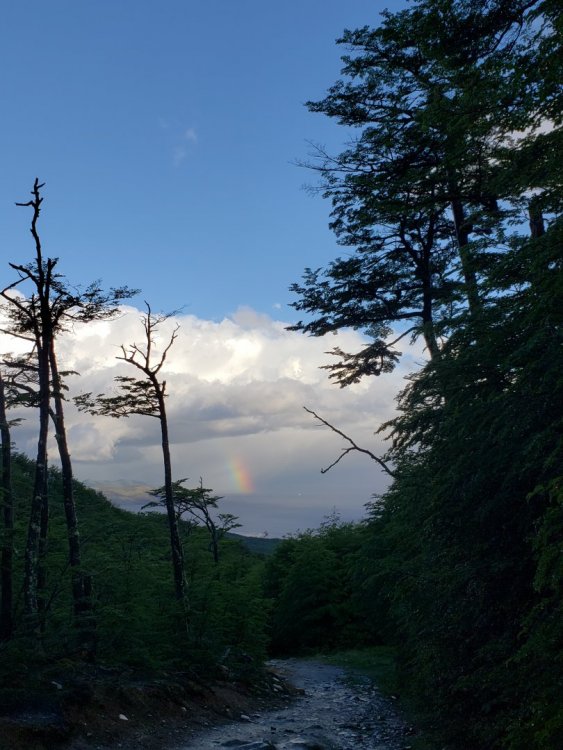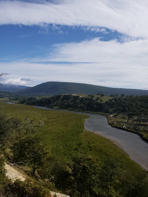 Olá, viajantes! Depois de ler tantos relatos, receber tanta ajuda e dicas do pessoal aqui no Mochileiros, nada mais justo que deixar uma contribuição sobre a minha experiência pela Patagônia. E também fico a disposição para ajudar no que estiver ao meu alcance! Meu insta é https://www.instagram.com/primporai/, se tiverem alguma dúvida e quiserem trocar alguma ideia, podem me chamar lá. 😊 Espero que gostem! Antes de iniciar o relato sobre a viagem, vou deixar algumas dicas importantes aqui: - O meu objetivo com essa viagem era realizar algumas trilhas. Caminhei muito (cerca de 250km) e tive bastante contato com a natureza. - Eu fiz a viagem sozinha. Para quem tem dúvidas só tenho uma coisa a dizer: vá sem medo. As pessoas de lá são muito simpáticas e estão sempre dispostas a ajudar. Fiz várias amizades durante as trilhas, nos ônibus, na rua, etc. 😂 - A fama de rolar caronas por lá é verdadeira. - Mesmo sendo verão, na Patagônia ainda é frio. - Os dias são longos, entre 4h00 e 5h00 o sol já está raiando e ele se põe depois das 22h. Dá pra fazer MUITA coisa. - Não deixe de fazer absolutamente nada por causa do mal tempo. O clima por lá muda bastante, então saia com chuva ou sol e esteja preparado para as mudanças. - Leve sempre na sua mochila de ataque uma jaqueta e calça que sejam impermeáveis e corta vento. - Em todos os lugares tem calefação, então use e abuse do sistema em camadas e leve pijama curto para dormir. - Faça cambio na Argentina. Minha conexão em Buenos Aires era de madrugada, então não consegui fazer cambio fora do aeroporto, e mesmo assim compensou muito mais que trocar no Brasil. Fiz no Banco Nación dentro do EZEIZA, acho que fica aberto 24hrs. No site deles dá pra acompanhar a cotação oficial (http://www.bna.com.ar). - Comprei todos os tickets de ônibus na Rodoviária de El Calafate. Também é possível comprar online. - Peguei um Chip para usar internet da empresa Movistar. Só precisa ir até a loja deles com um documento e solicitar o chip, depois ir até um kiosco e fazer uma recarga. A internet funcionou bem na Argentina, exceto El chaltén que lá nem o wifi funciona direito. - Tanto na argentina quanto no chile eles não dão sacolas nos mercados. - Achei os preços bem interessantes em Ushuaia, pra quem não sabe, é uma área livre de impostos. Vi perfumes, gopro, roupas de frio com preços bons. Meu cronograma foi o seguinte: 20/12 – Florianópolis – Buenos Aires 21/12 – Buenos Aires - Ushuaia 22/12 – Ushuaia – Laguna Esmeralda 23/12 – Ushuaia – Pinguineira, Canal Beagle e Glaciar Martial 24/12 – Ushuaia – El Calafate (avião) 25/12 – El Calafate – Dia Livre, volta de bike 26/12 – El Calafate – Perito Moreno e Minitrekking 27/12 – El Calafate – Puerto Natales - Chile (ônibus) 28/12 – Puerto Natales – Full Day Torres Del Paine 29/12 – Puerto Natales – Trekking até Base deTorres del Paine 30/12 – Puerto Natales – El Calafate – El Chaltén (ônibus) 31/12 – El Chaltén – Cerro Torre 01/01 – El Chaltén – Chorrilo Del Salto 02/01 – El Chaltén – Fitz Roy 03/01 – El Chaltén – Laguna Electrica 04/01 – El Chaltén – Loma Del Pliegue Tumbabo 05/01 – El Chaltén – El Calafate (ônibus) 06/01- Chegada em Florianópolis Vou começar pelo dia 2, porque o primeiro se resumiu apenas em chegar até Buenos Aires 😂😂 21/12 BUENOS AIRES – USHUAIA Cheguei de madrugada no Aeroporto de Ezeiza, fiz o cambio e meu voo até Ushuaia saia do Aeroparque. A Aerolíneas disponibiliza de um transfer gratuito se você emitir um voucher no site deles. A empresa que presta esse serviço é a Manuel Tienda León, só procurar o guichê deles na parte externa do aeroporto. O voo de Buenos Aires até Ushuaia dura +/- 4 horas. Acordei quando estava perto de pousar e ao abrir a janela o céu estava azul, as montanhas com os picos nevados e diversos lagos. Desembarquei em Ushuaia às 8h10 e como não despachei mala, fui direto ver o transfer até o meu hostel, para não esperar muito optei pelo remis, é um trajeto rápido e custou ARS 300. No hostel, tomei café da manhã e fui tomar um banho para sair. E para minha surpresa ao sair do banho, chuva e muito vento (coisas da patagônia 😂). Nesse momento, ainda não entendendo como funcionava o clima por lá, fiquei esperando a chuva passar. Depois de um certo tempo sai na chuva mesmo. Estava com o dia livre e fui bater perna para conhecer a cidade, andei pela Avenida San Martin que é a rua de comércios em Ushuaia, muito simpática, com algumas construções coloridas, pelas calçadas apreciando o Canal Beagle, fui até a famosa placa. Hospedagem: Antártida Hostel. Localização é ótima, perto da Avenida San Martin, do porto e mercado. Estrutura de quartos, banheiros e cozinhas são boas e sempre estavam limpos. Staffs simpáticos, sempre dando dicas e conversando. Vista do avião Foto clássica na placa "fin del mundo" Canal Beagle 22/12 – USHUAIA – LAGUNA ESMERALDA Pedi no hostel informações sobre o transfer até o inicio da trilha para a Laguna Esmeralda, eles me venderam por ARS 450 ida e volta. A van passou no hostel as 10h, o dia estava nublado e sem chuva. A trilha de modo geral é bem tranquila e bonita. Você caminha por bosques, passa por rios, vales, paisagens bem diferentes. Durante todo o trajeto há “plaquinhas” azuis nas árvores indicando o caminho. Possui algumas subidas, não são muito longas e nem íngremes. Após mais ou menos 6km cheguei na Laguna Esmeralda e que lugar incrível, meu preferido de Ushuaia. A água realmente é verde esmeralda, mesmo com o dia nublado. Explorei alguns lugares mais altos, contornei a Laguna para vê-la vários ângulos. Logo mais começou uma ventania, coloquei todos os meus casacos, gorro, procurei um abrigo do vento e sentei pra comer para depois começar meu caminho de volta. Na volta o vento não deu trégua e eu podia ver a chuva se aproximando. C