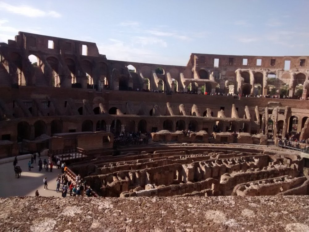 Oi, gente! Vou procurar fazer o relato da nossa viagem incluindo informações, dicas e gastos. Acho que vai ser um looongo relato , então vamos lá. 24/01 – Chegada em Roma Nosso voo havia saído de Porto Alegre no dia anterior, às 20:45, direto a Lisboa, pela TAP. Bom serviço de bordo, janta gostosa (com direito a vinho português!), travesseirinho e coberta, boas opções de filmes, e ainda café-da-manhã. A imigração foi muito tranquila. A gente lá com aquela pasta cheia de comprovantes impressos, hospedagem, bilhete aéreo da volta, comprovantes das compras de euros, seguro (Certificado de Schengen), e até os contracheques levamos para comprovar vínculo de emprego no Brasil... e tudo se resumiu a olhar o passaporte, carimbar e chamar o próximo da fila. Tínhamos mais ou menos 1 hora para chegar no portão do embarque para Roma, mas tratamos de ir logo. Foi nossa primeira ida à Europa, estávamos impressionados com o tamanho do aeroporto! Não foi difícil de achar, embarque e decolagem praticamente na hora, e uhuuuu, estamos quase chegando! Chegamos no aeroporto Fiumicino mais ou menos 15h. Foi um pouquinho confuso de achar a esteira das bagagens (um pouco atordoados pela excitação de ter chegado!), fomos seguindo o fluxo de quem tinha desembarcado e encontramos. Na saída do desembarque mais um pouquinho de tensão “Será que teremos que mostrar o passaporte carimbado? Será que pedirão para ver nossos comprovantes das bagagens?”, e nada, ninguém nem olhou para nossa cara! Para ir do aeroporto ao Termini (estação central de trens e metrôs), estávamos entre 2 opções: 1ª os ônibus que custam entre 6 e 8 euros e levam cerca de 50-60 minutos, logo ao sair do desembarque tem alguns balcões de empresas que têm esse serviço. O próximo sairia em cerca de 1 hora. 2ª o trem Leonardo Express, 14 euros, cerca de 30 minutos a viagem. Nesse tempinho em que decidíamos como ir, fomos abordados por um taxista que ofereceu nos largar na porta do hotel por 15 euros por pessoa, era um taxista com crachá, nos mostrou o balcão da empresa dele, parecia confiável. Agradecemos e fomos no Ponto de Informações Turísticas comprar nosso Roma Pass (34 euros cada, mais informações http://www.romapass.it/). Com o cartão comprado (que não inclui transporte do/para aeroporto), e por estar uma chuvinha chata, resolvemos ir com o taxista, apesar do nosso hotel ser bem ao lado do Termini. Era uma Doblô, e junto foram mais dois casais que ele iria largando pelo trajeto. Foi muito legal, foi praticamente uma tour inicial por Roma. Quando passamos por umas ruínas e vi uma plaquinha escrito Therme di Caracalla já fiquei emocionada, e de repente surge à nossa frente o Coliseu... a sensação de “estamos MESMO em Roma” foi indescritível! O taxista foi bem simpático, foi nos dando várias dicas legais de onde comer e passear. Chegando ao nosso hotel a rua estava em obras, então ele andou duas quadras de ré por outra rua para nos deixar o mais perto possível da entrada, ficamos a meia quadra, e ele ainda largou um “eu sou o rei de Roma” cheio de orgulho, que figura! Ficamos no Hotel Ciao (Via Marsala, 96), mas a recepção, o check-in e o café-da-manhã eram no Hotel Luciani (Via Milazzo, nº, a meia quadra de distância. Fizemos todas as reservas de hotéis pelo Booking, e cerca de duas semanas antes da viagem mandamos e-mail para todos confirmando as reservas (levamos impressos os vouchers do Booking E as confirmações por e-mail, vai saber...). Pagamos 195 euros por 5 diárias (sem incluir 2 euros por pessoa por diária de imposto municipal). Gostamos do quarto, bom aquecimento, chuveiro bom e bem quente, cofre, não tem wi-fi. Café-da-manhã bem bom: máquina com algumas variedades de café, pão, frios, um croissant por pessoa, e Nutella (esse eu comi TODOS os dias), naquelas embalagenzinhas pequenas do tipo de manteiga ou geleia. O que eu não como de Nutella no Brasil por ser caro, comi lá! Já eram umas 17 h quando largamos as malas no hotel, saímos para conhecer os arredores e ir à única visita turística do dia, que era próxima do hotel: a Basílica de Santa Maria Maggiore (horário de abertura 7h-18h45min). Linda, desde a sua fachada, seus portões, ao interior, o teto, etc. Passamos em um supermercado em frente à Basílica para comprar água e alguns lanchinhos para os próximos dias, tipo biscoitos e frutas. Nós gostamos de passear em supermercados também , ver os vegetais típicos do local, os produtos em geral, sem falar na variedade e nos preços dos vinhos, dá vontade de trazer uma mala cheia. Para finalizar o dia, jantamos em um restaurante próximo. Um menu fisso que saiu por 10 euros por pessoa, aliás foi o menu fixo mais barato que comemos por lá. Incluía um primo piatto entre 3 opções de massa, um secondo piatto que dava 3 opções de carne com algum acompanhamento, uma taça de vinho ou de água (tomamos vinho, claro!) e uma porçãozinha de sobremesa que era tipo um tiramisu falsificado, mas estava bom. Claro que por esse preço a comida era simples, mas ao longo de toda a nossa viagem todas as massas simples que comemos eram deliciosas! Voltamos ao hotel para descansar de toda essa função da viagem e da chegada, o dia seguinte era dia de nada mais nada menos que Coliseu! 25/01 – Coliseu e arredores, Museus Capitolinos, entre (muitos) outros Pegamos o metrô no Termini utilizando nosso Roma Pass, que é ativado ao ser usado pela primeira vez em um meio de transporte ou em alguma das atrações inclusas. O Coliseu fica a apenas duas paradas, e ao sair da estação já se dá de cara com ele, lindo, majestoso, impressionante! Chegamos 8h25, tinha uma pequena fila para quem ia comprar ingressos na hora e nenhuma fila para quem tinha o Roma Pass. Aliás, essa é uma das maiores vantagens do cartão: filas à parte, que costumam ser muito menores. Demos uma caminhada por fora antes de entrar, e lá dentro... bom, lá dentro n