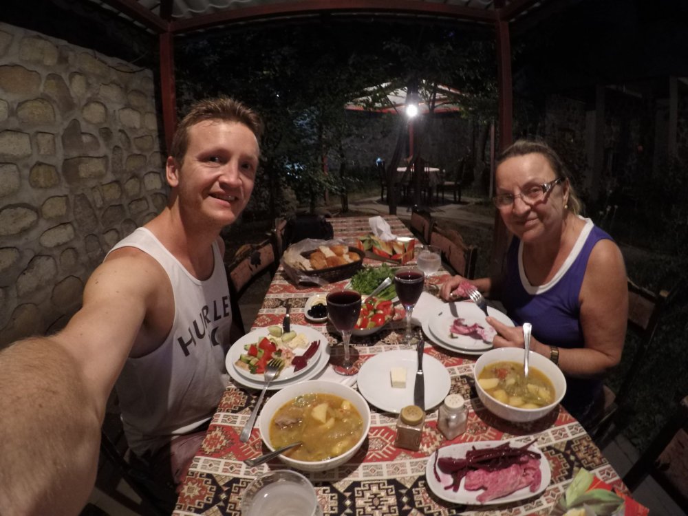 Essa viagem foi possível graças a uma promoção anunciada pelo Melhores Destinos, onde as passagens de ida e volta de Guarulhos a Tel Aviv custaram a bagatela de 1040 reais por pessoa! Na verdade, não foi um mochilão propriamente dito, pois levei minha mãe que quis ficar em hotéis e com carro alugado, mas pela escassez de informação sobre os países do Cáucaso, achei que seria interessante deixar meu relato. Esse é um resumo do que constará em breve em meu blog de viagem Rediscovering the World. Dia 1 Ao chegarmos no aeroporto de Guarulhos vindo de Floripa, eu e minha mãe pudemos aproveitar meu cartão de crédito MasterCard Smiles Platinum para termos acesso à sala VIP. Lá comemos e bebemos à vontade, até o embarque no avião grande da Ethiopian Airlines, rumo à conexão em Adis Abeba. O voo de 11,5 horas contou com refeições e entretenimento decentes. Como nosso voo seguinte seria apenas na tarde do dia seguinte, ao pousar, tivemos que encarar mais duas horas na fila da imigração temporária para recebermos os vouchers; estes, dão direito a hospedagem, transporte e refeições gratuitas. Nos colocaram no hotel Blue Sky, um lugar de qualidade duvidosa como a média etíope, e com água fria no chuveiro. Para incrementar o jantar básico que é oferecido aos ocidentais, pedi uma "injera", que é uma massa feita do grão "teff", na qual se envolve a comida com o uso das mãos. Dia 2 Dormi bem pouco, graças ao jet lag. Antes das 8, já tomamos o café da manhã. Depois, trocamos euros por birr (32 pra cada) na recepção do hotel. Sob leve chuva, paramos um táxi na rua para nos levar por 100 birr até a estação de trem. É um sistema elétrico moderno e inovador na África, tendo sigo erguido pelos chineses há alguns anos. Custa apenas de 2 a 6 birr, então fica cheio. Descemos na praça Meskel, onde há dois anos estive na comemoração do ano etíope. Seguimos em direção norte, na companhia de um nativo que foi conversando em inglês com a gente. Passamos por uns prédios governamentais e áreas verdes. Em seguida, compramos um souvenir. Retornamos sozinhos pelo centro, que deixou minha mãe, novata na África, bem ressabiada. Caminhar com tantos olhos desconfiados não foi agradável, então logo pegamos o trem de volta. Aproveitamos o almoço gratuito no hotel. Logo depois, foi a hora de enfrentarmos as checagens de segurança infinitas do aeroporto de Adis Abeba. Voamos a Israel de Ethiopian. Só que dessa vez, sem telas de vídeo individuais. Mas não fez diferença, pois eu capotei no voo de tanto sono. Mais além, descemos no aeroporto moderno de Tel Aviv. Ao procurar o transporte público, percebi que cometi um engano feio: não lembrei que sexta à noite já era "shabbat", o dia sagrado dos judeus, onde quase tudo fecha. Se fôssemos ficar em Tel Aviv ainda conseguiríamos pegar um "sherut" (van) até lá, mas acabei optando por uma hospedagem caseira bem cara, mas próxima do aeroporto, já que retornaríamos no dia seguinte. Sabe quanto custaria um táxi só de ida até Or Yehuda, 16 km distante? Uns 150 shekel (cerca de 170 reais)! E para alugar um carro na hora sairia ainda mais caro. Enquanto trocamos dinheiro num câmbio desfavorável e comíamos alguma coisa, tive a sorte de ver que existem táxis com tarifa reduzida pré-fixada no segundo andar. No final, saiu pela metade do preço. Passamos a noite no House on the Road, uma casa só pra gente. Qualidade decente, mas pelo preço abusivo, poderia ter sido melhor. Dia 3 Dormimos bem. No resto da manhã, caminhamos nas quadras ao redor para conhecer o bairro. É limpo, tranquilo e florido, mas os israelenses não são simpáticos. O sol de 30 graus impediu que continuássemos explorando, então pegamos um táxi e voltamos ao aeroporto, passando por uma infinidade de controles de segurança. Voamos com a Alitalia para Moscou, com uma escala de algumas horas em Roma. Peguei esses trechos com 20 mil milhas Smiles por pessoa. No caro aeroporto, só comi uma pizza (10 euros). No resto do tempo, usei o wi-fi liberado. Dia 4 Desembarcamos no aeroporto Sheremetievo pelas 4 h, com o dia quase nascendo. Passamos a imigração rapidamente e pegamos o ônibus noturno até a estação de Kitay-Gorod (55 rublos ~ 3,3 reais). No caminho, fiquei surpreso com o tamanho dos prédios, principalmente residenciais. Na chegada, caminhamos ao hotel CityComfort Kitay-Gorod. A suíte pra 2 pessoas com 3 diárias custou 11250 rublos. Quarto bom, mas internet ruim. Para não perder o dia, botei o despertador para tocar às 12 h. Como minha mãe não estava se sentindo bem, saí sozinho. Peguei o metrô (55 rublos por vez) até o Centro Pan-Russo de Exposições. Estava cheio de gente bonita nesse domingo lindo de sol e temperaturas agradáveis. É uma área enorme, cheia de construções suntuosas, até mesmo com ouro, além de muitos museus, aquário e áreas verdes. Caminhei bastante ao redor, mas visitei por dentro só o Centro de Cosmonáutica e Aviação (500 rublos). Há bastante informação (parcialmente em inglês), além de representações e até mesmo equipamentos e naves originais do programa espacial russo. Bem interessante. Almocei e jantei na praça de alimentação de um centro comercial. Pedi um prato com salada, purê de batata e uma carne que parecia hambúrguer por 230 rublos na primeira refeição e um "kebab" russo por 190 rublos na segunda. Entender o russo está sendo um desafio. Ler algumas coisas em alfabeto cirílico até que consigo, graças ao Duolingo, mas ouvir e falar tá bem complicado. E pela minha aparência eles assumem que sou russo e já vem falando comigo nesse idioma diferente. À noite, quando seguia pra praça Vermelha, duas coisas ruins aconteceram. Minha câmera emperrou o obturador e parou de funcionar, e a tal praça estava fechada para uma parada militar que ocorreria na semana seguinte. Assim, só pude admirar à distância a parte mais turística de Moscou, que conta com a