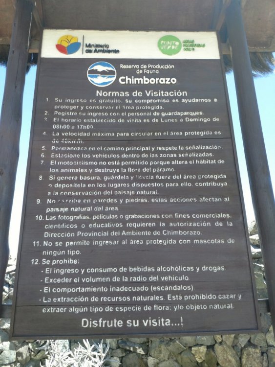 O vulcão Chimborazo é o mais alto do Equador, com 6.310 msnm (alguns lugares citam 6.268). Fica na Reserva de Produccion Faunistica Chimborazo. Está localizado na província de mesmo nome, aproximadamente 180km ao sul de Quito, entre as cidades de Ambato e Riobamba. Está rodeado por ‘páramos’ secos, sendo uma região com clima bem árido. Em pontos elevados, clima glacial. A temperatura gira em torno de 0 a 10 °C. Possui 2 refúgios, sendo a Cabaña Carrel a 4.850 metros e a Cabaña Whymper a 5.000 metros. O principal atrativo é a chegada ao primeiro refúgio e depois a subida ao segundo refúgio para quem tiver disposição, já que a altitude cobra seu preço dos visitantes. Mas há outras opções a serem feitas com guia, como trekkings e escalada, bem como o ciclismo de montanha. Entre a portaria principal e o primeiro refúgio há uma estrada de terra de aproximadamente 8 km a ser percorrida, sendo só subida. Alguns o fazem na caminhada, mas geralmente percorre-se esse trecho em veículos com guias que ficam estacionados na entrada do parque. No nosso caso, o guia nos cobrou U$ 20 pelo trajeto (ida-volta). É interessante citar, também, que é possível carimbar o passaporte no primeiro refúgio. Como chegar: o trajeto principal é o que sai desde o terminal de Riobamba, onde toma-se o ônibus que segue para Guaranda. Deve-se descer na entrada do parque. Para voltar, basta tomar o ônibus em frente a portaria , sentido Riobamba. Quanto custa: a entrada ao parque é gratuita (outubro de 2017). O valor do ônibus Riobamba-Guaranda é U$ 2,50. Fontes: https://pt.wikipedia.org/wiki/Chimborazo http://www.ambiente.gob.ec/reserva-de-produccion-de-fauna-chimborazo-26-anos-de-proteccion/ http://areasprotegidas.ambiente.gob.ec/es/areas-protegidas/reserva-de-producción-faunística-chimborazo A seguir, algumas fotos do local, tiradas em nossa visita em outubro de 2017:
