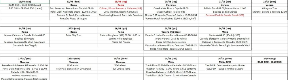 Membros igorilas Postado Fevereiro 7, 2023 Autor Membros Postado Fevereiro 7, 2023 Em 03/02/2023 em 06:01, Davi Leichsenring disse: Só existe uma estação, a cidade é pequena, saíndo do trem em Tirano logo você já vê onde sai o Bernina Comprei esse horarios os trens, vc acha que chego tempo no ultimo,sem atrasos? rs Trenitália - 06:20-Milano Centrale - 08:52-Tirano Rhaetian Railway - 11:00-Tirano-13:11-StMorritz Rhaetian Railway - 15:48-St Moriz-18:23-Tirano Trenitália - 19:08-Tirano - 21:40-Milano Centrale Citar