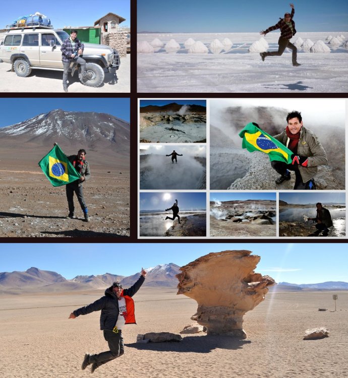 Membros gaisller Postado Fevereiro 2, 2023 Autor Membros Postado Fevereiro 2, 2023 14 horas atrás, RicardoRM disse: Se quiser pagar mais caro, reserve lá em La Paz, vc vai viajar em um ônibus para turistas que custa uns 250 ou 300 Bs. Vai pagar ainda uns 120 U$ ou até mesmo uns 150U$ por um passeio que fechando lá em Uyuni vai lhe custar menos de 100U$ Se quiser fazer mais barato, vá até o terminal de ônibus de La Paz, compre em um ônibus convencional de linha que vai lhe custa menos de 100 Bs e compre o passeio la na cidade de Uyuni, existem tantas empresas por lá, não existe esse papo que vai ficar sem o passeio, a cidade vive do turismo, todos os dias tem uns 100 carros ou mais saindo com viajantes. Ricardo, obrigado! Abusando da boa vontade aqui... Sabe me dizer se é padrão essas agências oferecerem os mesmos serviços nos tours? Café da manhã, almoço, janta e se pode rolar de alguma deixar de visitar um ponto durante o percurso? Quero fazer a viagem de 3 dias e 2 noites no salar, indo até a Reserva Eduardo Avaroa, fico com receio de perder alguma coisa por contratar x empresa... Desculpa se estiver perguntando demais também, mas to tentando me planejar o melhor possível. Valeu. 1 Citar