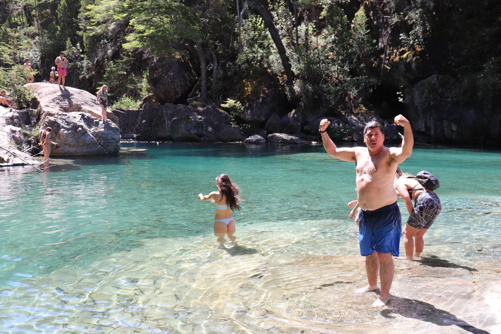 Membros Marcelo Manente Postado Fevereiro 23, 2024 Autor Membros Postado Fevereiro 23, 2024 (editado) 17º dia - 11/01/24 - El Bolson e cânion do Rio Azul - 50 km. Como bebemos bastante na noite anterior dormimos bastante tbm. Planejamos nesse dia ir no Cajon del rio Azul, um cânion com o rio mais transparente que eu já ví na minha vida e também o mais frio como vim a saber depois. Tomamos café e saimos tarde. Chagamos ao início da trilha as 10:30 h mais ou menos, só que, como não fizemos o cadastro para a trilha pela internet, tivemos que esperar uma bela fila até sermos atendidos e preenchermos uma ficha na entrada da mesmo. Para agilizar então deve-se fazer o registro no seguinte site e na entrada avisar os guarda parques: https://anprale.com/registro/ . Começamos a trilha só as 11 h finalmente. O começo da trilha é mais tranquilo com uma boa descida até se encontrar o vale onde existe a confluência do rio Blanco com o Azul. Um apontamento: a trilha não é propriamente uma "trilha" de verdade pois de vez em quando passavam ATVs e até caminhonetes 4x4 dos bares, campings e refúgios do caminho que estavam levando mantimentos para esses lugares. Ou seja, era uma estrada, bem ruim, que só 4x4, ATVs, pessoas e cavalos passavam. Depois de se passar a passarela do rio Blanco era necessário passar a passarela do rio Azul, aí se formava uma bela fila pois, não sei porque, as pessoas só passavam uma a uma na ponte. E não havia nenhuma placa dizendo que deveria ser assim. Perdemos uns bons 20 minutos para atravessar. Daí em diante começaram as torturantes, longas e bem inclinadas subidas da trilha. Cada subidão era um sofrimento. No terço final da trilha eu já tinha secado um dos 2 litros de água que tinha levado. Então vi um pequeno córrego descendo da montanha com uma água cristalina e gelada. Olhei e pensei, “por que não?” Peguei o cantil que já estava seco e enchi no pequeno córrego e fui tomando tudo até o cânion. Mal sabia eu que iria me arrepender disso no dia seguinte. Continuando a trilha os desníveis foram de até 650 m, então imagina como a gente chegou na última passarela. Eu aguentaria voltar a pé, o André parecia estar de boa, mas a Neusa estava muito cansada. Na última passarela tem o cânion propriamente dito, mas meus amigos não queriam avançar mais um pouco até uns mirantes que havia lá. Mesmo assim eu acho que valeu a pena a trilha pois o lugar é muito belo. Chegamos por volta das 15 h. O local do cânion parecia uma praia tamanha a quantidade de jovens de até seus 30 e poucos anos por ali. Muitas garotas de biquini e rapazes pulando naquela água linda e azul. Eu tinha planejado entrar naquela água. Não podia voltar sem entrar. Troquei o calção me protegendo com a toalha e fui entrar. Os primeiros passos na água já me deram a dica, meus pés doíam de tanto frio. Molhei os pulsos e a nuca, tomei coragem e me joguei na água... Parecia que eu tinha entrado num cubo de gelo, kkkkk. Na hora foi como se eu tivesse caído de costas no chão e ficasse sem folego. Os músculos pareciam que não queriam obedecer. Com muito custo nadei mais uns metros e voltei para a margem. Aí pedi que o André tirasse uma foto no meio de um belo cardume de trutas que estava logo ao lado das pessoas. Sai correndo e fui me secar pois apesar do dia estar quente eu estava tremendo. Um lindo local que ainda pretendo voltar com mais tempo para explorar melhor. Na hora de voltar o André e a Neusa resolveram que iriam voltar a cavalo. Como eu não queria voltar sozinho resolvi acompanhá-los. O preço foi bem caro, mais caro que algumas das hospedagens que pagamos, 25000 pesos, o que dá mais ou menos (na conversão do dia) R$ 115,00. Como eu falei para os guias que já tinha andado a cavalo me deram um animal meio tinhoso que depois de eu montar tentou morder meu pé 3 vezes e quase me derrubou de propósito mais 2 vezes. Começamos nossa pequena comitiva em torno das 16:30h com 4 cavalos e mais alguns que eram levados pelos guias. Na metade do caminho esses cavalos extras levaram mais um casal que estava extenuado demais para voltar. Foi bem interessante fazer essa cavalgada. O meu cavalo era realmente indócil e as vezes queria empacar, dai eu tinha que pegar as rédeas e bater no lado da barriga para ele voltar a se movimentar. Algumas vezes quando eu fazia isso o tinhoso fazia que iria empinar e me derrubar. O legal foi que a passagem do rio Blanco tinha de ser feita por dentro dele. Foi ai que eu quase cai de novo pois os cavalos chegam na beira do rio e claro que estão estenuados de tanto sobe e desce. Ao chegar ao rio ninguém me avisou que eles iriam tomar água e assim quando o meu colocou as patas no rio imediatamente baixou a cabeça e como eu estava segurando forte as rédeas quase fui lançado dentro do rio. kkkkk. Foi bem assustador depois passar com o cavalo por dentro do rio pois esse tinhas uns 50 a 60 cm de fundura e os cavalos pareciam a toda hora que iriam tropeçar e cair. Contudo, entre mortos e feridos salvaram-se todos, hehehe. Chegamos ao estacionamento mais ou menos as 18 h. Eu, não sei por que estava com uma bela dor de cabeça, mas o André tinha uma dipirona pra me ajudar. Mal sabia que era um aviso do corpo de que algo não estava bem. Pegamos o carro e seguimos para o centro da cidade a tempo de passear e conhecer a famosa feira de artesanatos que ocorre nas terças, quintas feiras, sábados e domingos na cidade (era quinta feira). Demos uma bela volta pois eu estava à procura de um imã de geladeira, infelizmente os que tinham na feira eram bem feios. Mas acabei comprando uma camiseta de recuerdo. No caminho de volta a cabana compramos uma carne para fazer à noite. Fizemos um belo jantar com direito a picanha, ou tapa de cuadril como eles chamam por lá. Bebemos umas cervejas e ainda tomamo um vinho. Eu estava me sentindo meio estranho, mas não tinha ideia do que iria acontecer. Fomos dormir e lá pelas 3 d