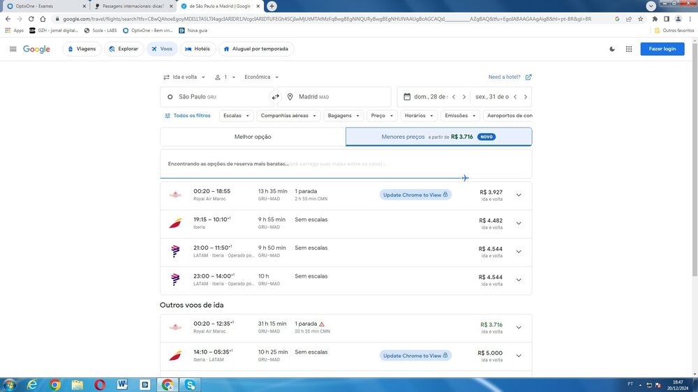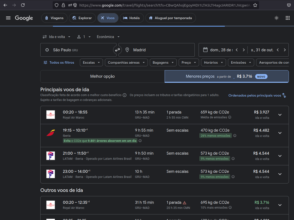 outra dica que te dou é procurar por Stopovers. Como no caso que vc disse, com conexão rápida em Madrid, de repente pode ser que ficar um dia ou mais em Madrid pode sair no mesmo preço. Isso, claro, vai da preferência de cada um mas esse ano eu fui para Madrid e passei um dia em Lisboa, como conexão na ida e uma dia na Angola, como conexão na volta. Não cheguei a passar a noite em nenhuma das duas, mas pude explorar bem ambas as cidades.