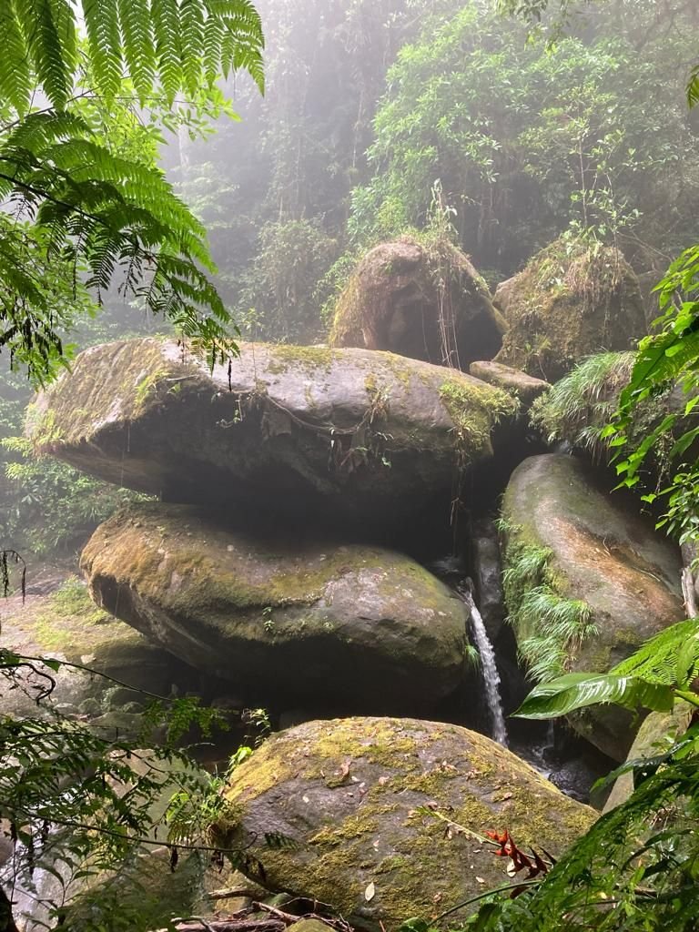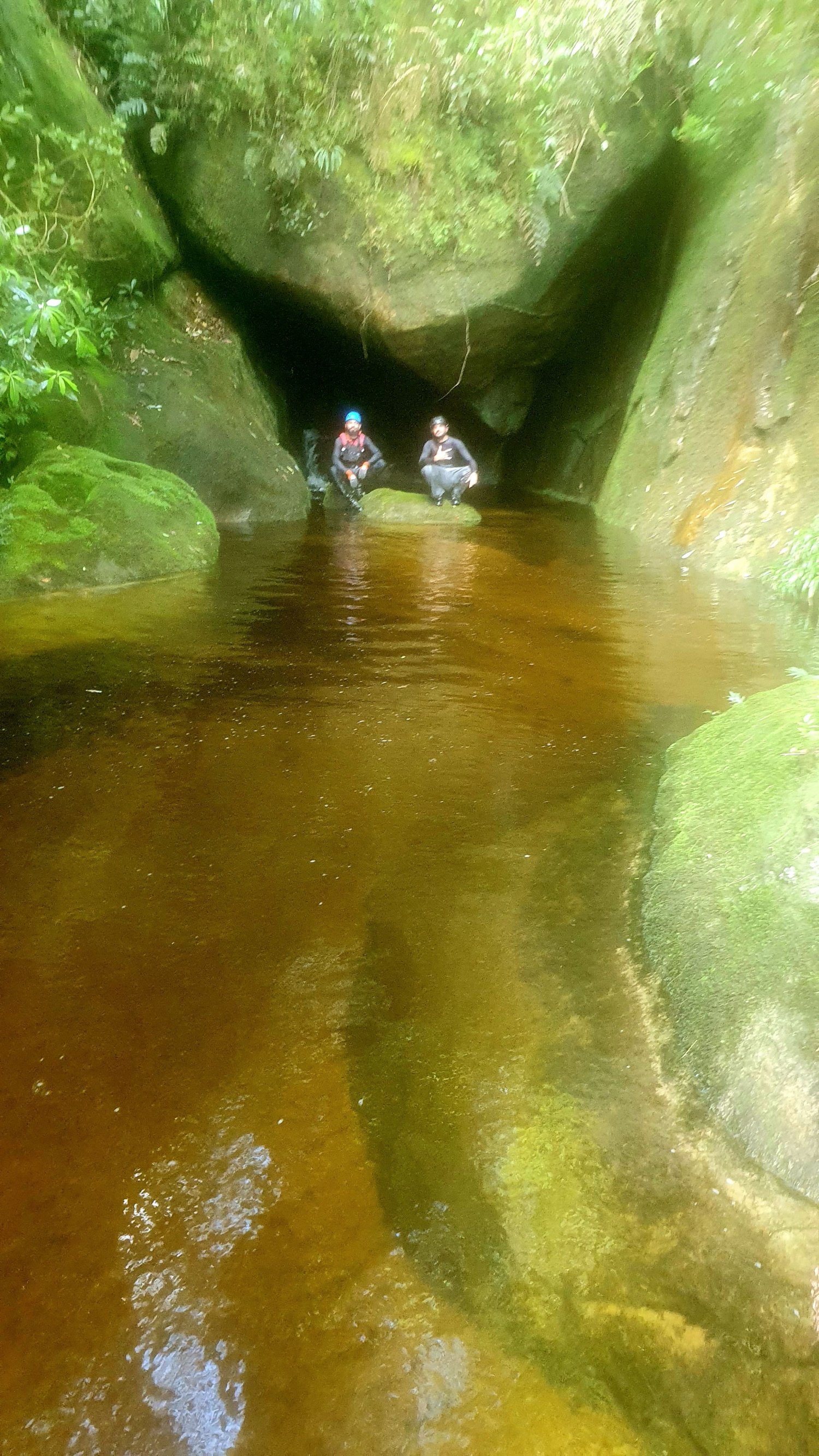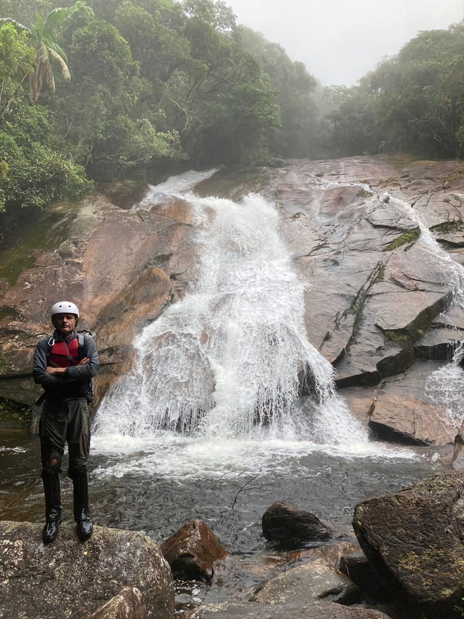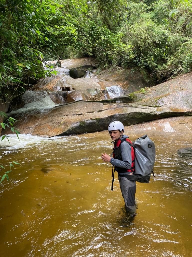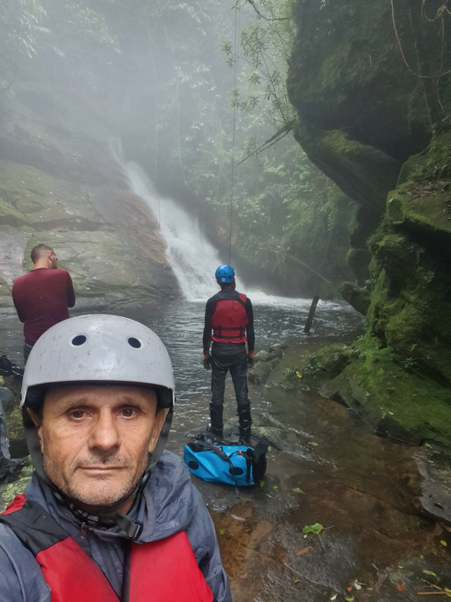 Membros de Honra DIVANEI Postado Janeiro 8 Membros de Honra Postado Janeiro 8 (editado) TRAVESSIA: VALE DO CUBATÃO DO NORTE( 2022) - Serra do Mar Paulista Se há algo de isolado nas serras do Brasil, esse lugar certamente é a Serra do Mar Paulista. Claro que não podemos compará-la com os confins da nossa Amazônia, mas quando nos limitamos a falar sobre lugares de acesso difícil e complicado para a pratica de montanhismo ou qualquer outro esporte ligado ao mundo da aventura, a nossa querida serra não vai ficar devendo a nenhuma outra no pais. Com uma geografia complicada, mesmo estando no Estado mais populoso do Brasil, as escarpas da Serra do Mar, vêm desafiando muita gente, muito por causa da navegação difícil e que só recentemente vem sendo facilitada por causa do surgimento de ótimos mapas topográficos e de satélites, e dos maravilhosos gps e seus aplicativos instalados em celulares, com acesso para todo mundo, além de prático e barato. Tanto que muitos lugares só saíram do anonimato na última década, rios, montanhas e vales isolados que esportivamente falando, jamais tinham visto pés humanos. Anos atrás, melhor dizendo, quase uma década atrás, numa madrugada vazia, pesquisando montanhas selvagens na Serra do Mar, me deparei com um gigante de mais de 1300 metros de altitude, que geograficamente marcava o cume de São Sebastião, bem na divisa com Salesópolis. Além dessa montanha isolada, que já era um marco importante na serra, perto do seu cume descobri a nascente de um grande rio, que ao nascer ali a 1200 metros, ia ganhando corpo e escorrendo pelas escarpas da serra até se juntar ao Rio Cristina, já perto da planície litorânea, indo desaguar lá pelas bandas da Barra do Una. Pois bem, o tempo passou e numa expedição meio conturbada, conseguimos subir o PICO PARDO (1.318 m) e ter a grata surpresa de não encontrarmos qualquer vestígio de que alguém tem conquistado seu cume, antes de nós, pelo menos não como montanhistas, talvez algum caçador nativo correndo atras de alguma anta nos arredores do cume. Mas eu ainda sonhava um dia voltar lá e aproveitando o caminho estabelecido, tentar descer o RIO CUBATÃO DO NORTE desde a sua nascente, aliás, o nome do rio encontramos na carta topográfica do exército. Do grupo que conquistou o Pico Pardo, a grande maioria simplesmente abdicou de tentar explorar o rio pela sua nascente e decidiram subir parte do rio partindo lá do litoral. Claro, fui convidado, mas não me interessei pelo projeto, não que cenicamente eu achasse que não valeria a pena, mas ainda queria fazer o projeto que havíamos estabelecido há muito tempo, então agradeci e declinei. E realmente os meninos foram lá, por baixo, pelo litoral e subiram até quase 600 metros até a grande cachoeira que havíamos localizado no mapa. Entre os que estiveram nessa primeira incursão, estava o ARY, que foi outro a comprar o projeto de fazer desde a nascente. Tentamos montar um grupo, aliciar alguém que topasse se enfiar novamente naquele fim de mundo, partindo do alto da serra, na divisa Salesópolis com São Sebastião, mas todos negaram, acharam que era muito trampo e se fuder uma vez para chegar ao Pico Pardo, já era o bastante, não queriam voltar lá uma segunda vez. Então, diante da escassez de homens, resolvemos tocar o foda-se e como se juntou a nós o Caio, decidimos que tocaríamos o projeto em 3 exploradores mesmo. ( Foto VGN VAGNER, na expedição a cachoeira) Como o Ary é morador de Biritiba, ficou a cargo dele descolar um transporte que nos levasse até o km 20 da Estrada da Petrobrás, de onde partiríamos a pé, cortando caminho pelos oleodutos, já que agora havia uma Portaria de Parque que fechava a passagem e era certo que não nos deixariam passar. Então, nos encontramos na casa do Ary às nove da noite e já rumamos para Salesópolis e assim que nosso veículo ganhou a Estrada da Petrobrás, que liga a cidade ao litoral, já demos de cara com um carro da polícia ambiental escoltando um carro da funerária – Agora lascou-se !!! Deixamos que os 2 veículos se perdesse da gente e como não os vimos mais, pensamos que poderiam ter entrado em alguma estradinha perpendicular à principal, talvez estivessem indo pegar algum corpo em algum sítio localizado ali perto da estrada. Percorremos uns 10 km e a Estrada da Petrobras vira um breu só, um caminho no meio do nada, já que quase todas as habitações ficaram para trás e numa curva do caminho, já perto do km 20, onde começaríamos nossa caminhada, demos de cara com as luzes de veículos que atravancavam o caminho. Lá estavam o jeep da polícia ambiental, o rabecão e outros veículos oficiais e particulares, que não identificamos. Ouvia-se choradeira e murmúrios vindo do meio das luzes, talvez provenientes dos parentes de algum morto. Paramos imediatamente. Nossa, era muito azar o nosso! jamais conseguiríamos passar, já que seríamos interpelados com as mochilas nas costas. Então o nosso motorista desceu e dando um “migué”, fingiu estar perdido e foi colher informações com o cara da funerária. Voltou nos contando que se tratava de um assassinato e que estavam terminando a perícia para recolher o corpo. Ficamos vendidos, sem saber que rumo tomar, não poderíamos ficar parados ali e também não podíamos passar, então, tentando salvar a vaca que já estava no brejo, demos meia volta e nos distanciamos do entrevero uns 500 m, pulamos na escuridão da noite, nos despedimos do motorista e caímos no meio do mato, era preciso traçar um plano. Na beira da estrada, achamos um caminho aberto e entramos nele, andando por cerca de 1 ou 2 minutos, e nos sentamos no meio da mata. Pensamos: Se o rabecão já estava ali, era sinal de que rapidamente o corpo seria removido e aí não haveria mais razão para que a estrada permanecesse fechada, então na nossa cabeça, a única coisa a fazer era esperar, muito porque, ainda não eram nem 10 da noite e tínhamos te