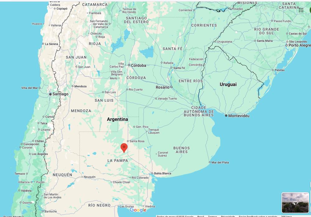 Depois de muitas horas de viagem, cruzamos La Pampa. Mas antes, atravessamos o imenso Parque Nacional Lihué Calel. A essa altura, com o sinal fraco, nosso mapa parou de atualizar. Eu estava no banco do carona e, ao checar a rota, percebi que teríamos um longo trecho pela frente — estradas esburacadas, sem sinal de posto por perto. Fiz uma estimativa rápida: a cidade mais próxima ficava a cerca de 300 km, enquanto nossa autonomia era de apenas 250 km. Um leve desespero me atingiu.