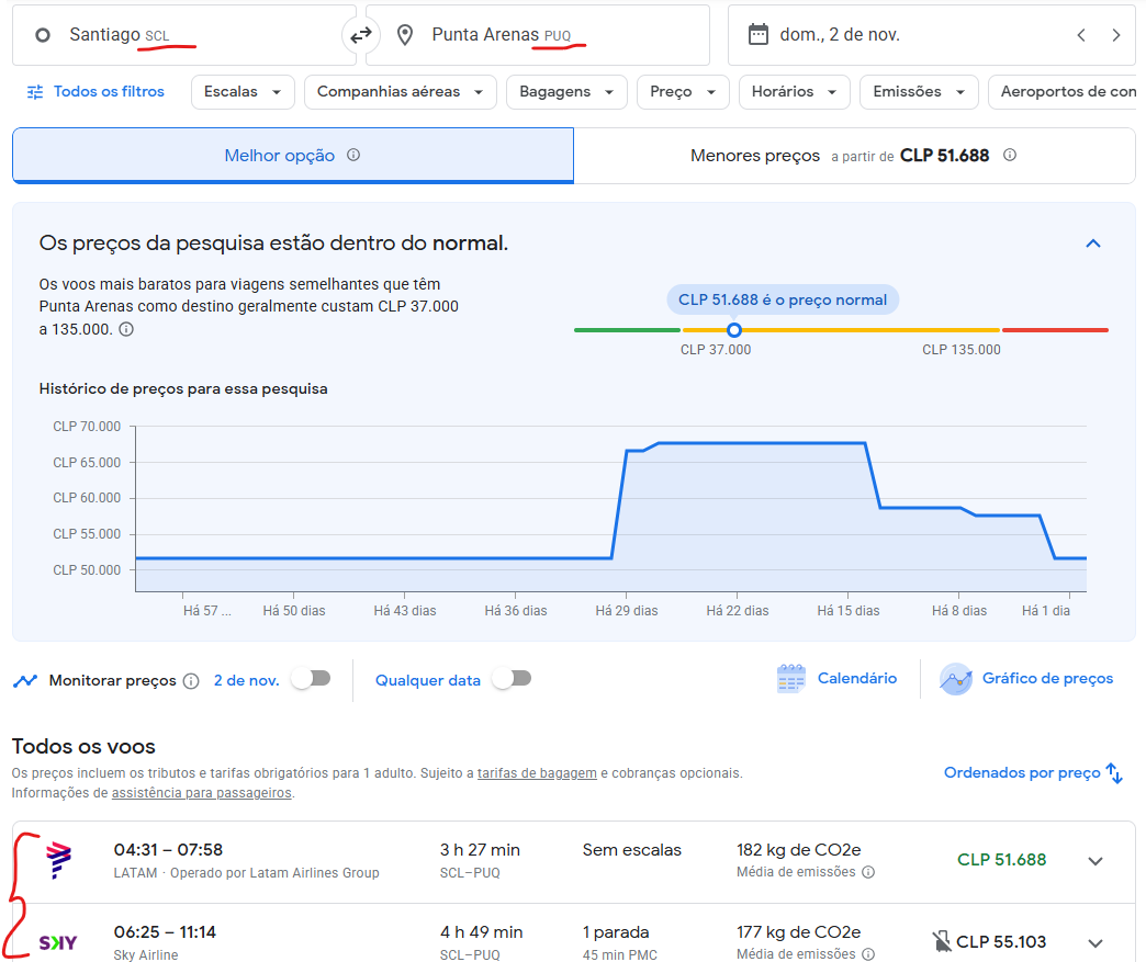 @cmori7 no mês de Novembro as cias aéreas que servem a rota SCL-PUQ são LATAM-Chile e Sky; e a rota PUQ-PNT pela LATAM-Chile.