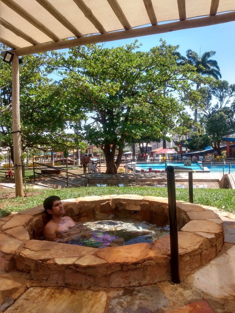 Último dia na cidade, optei por descansar em outro balneário. Desta vez o Tropical Thermas II, bem colado com o casarão dos Gonzaga. Esse não tinha o toboágua fodão, mas em compensação há sauna e ofurô de água quentinha (e muitos velhinhos). Para momento, e nas vésperas da viagem de volta para Goiânia e o vôo para minha cidade, não queria mais nada a não ser “ficar de bubuia”.