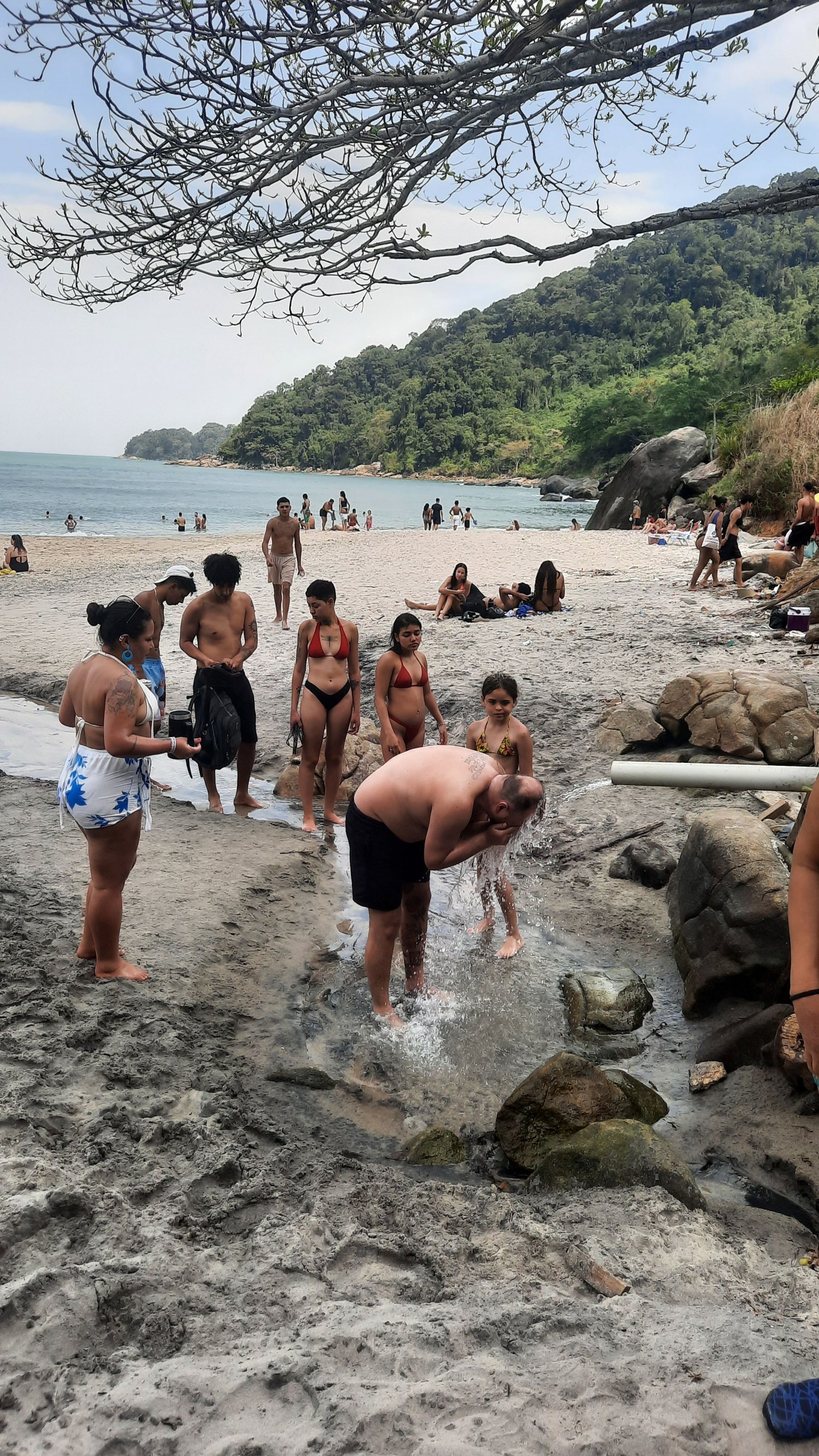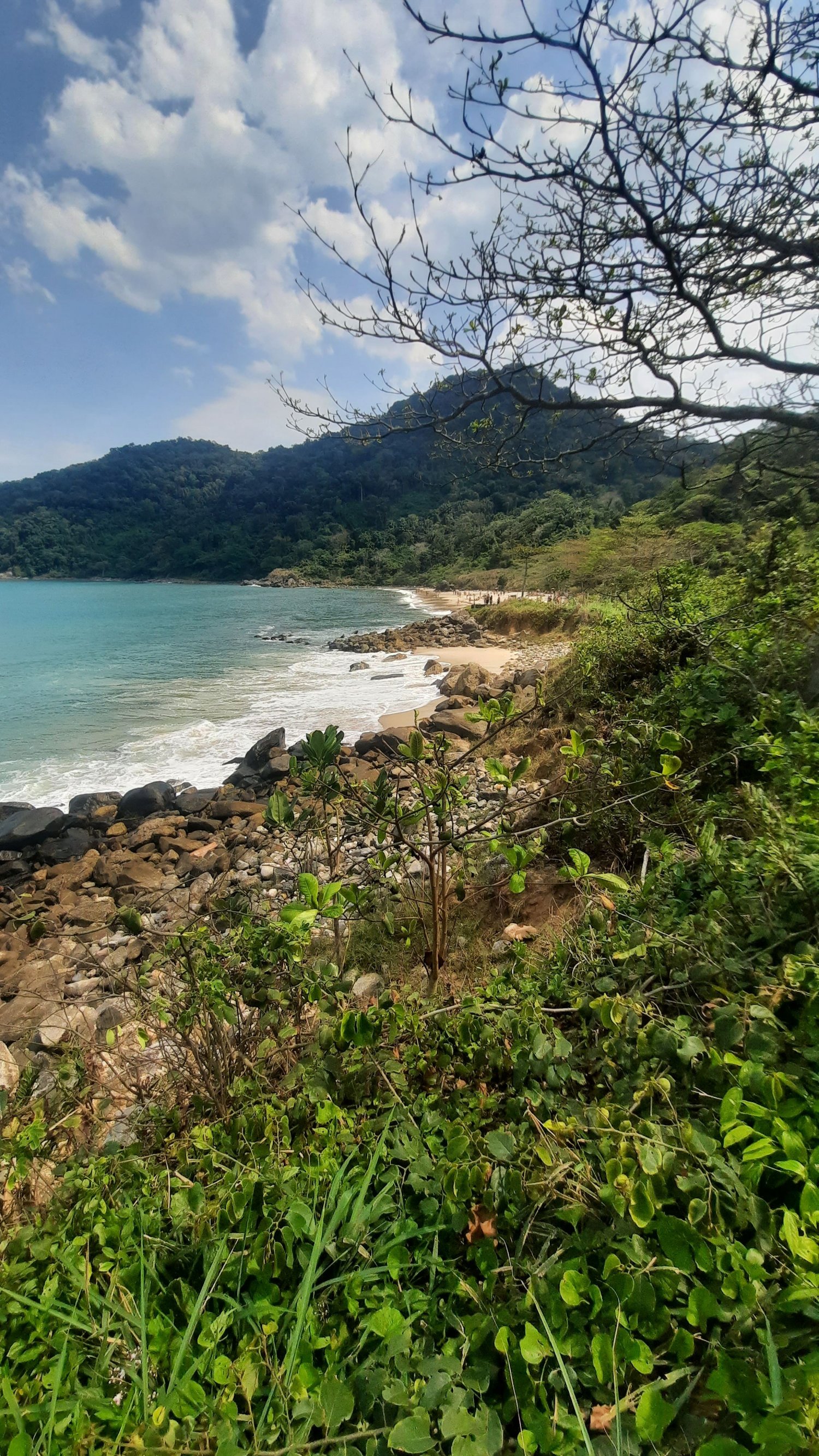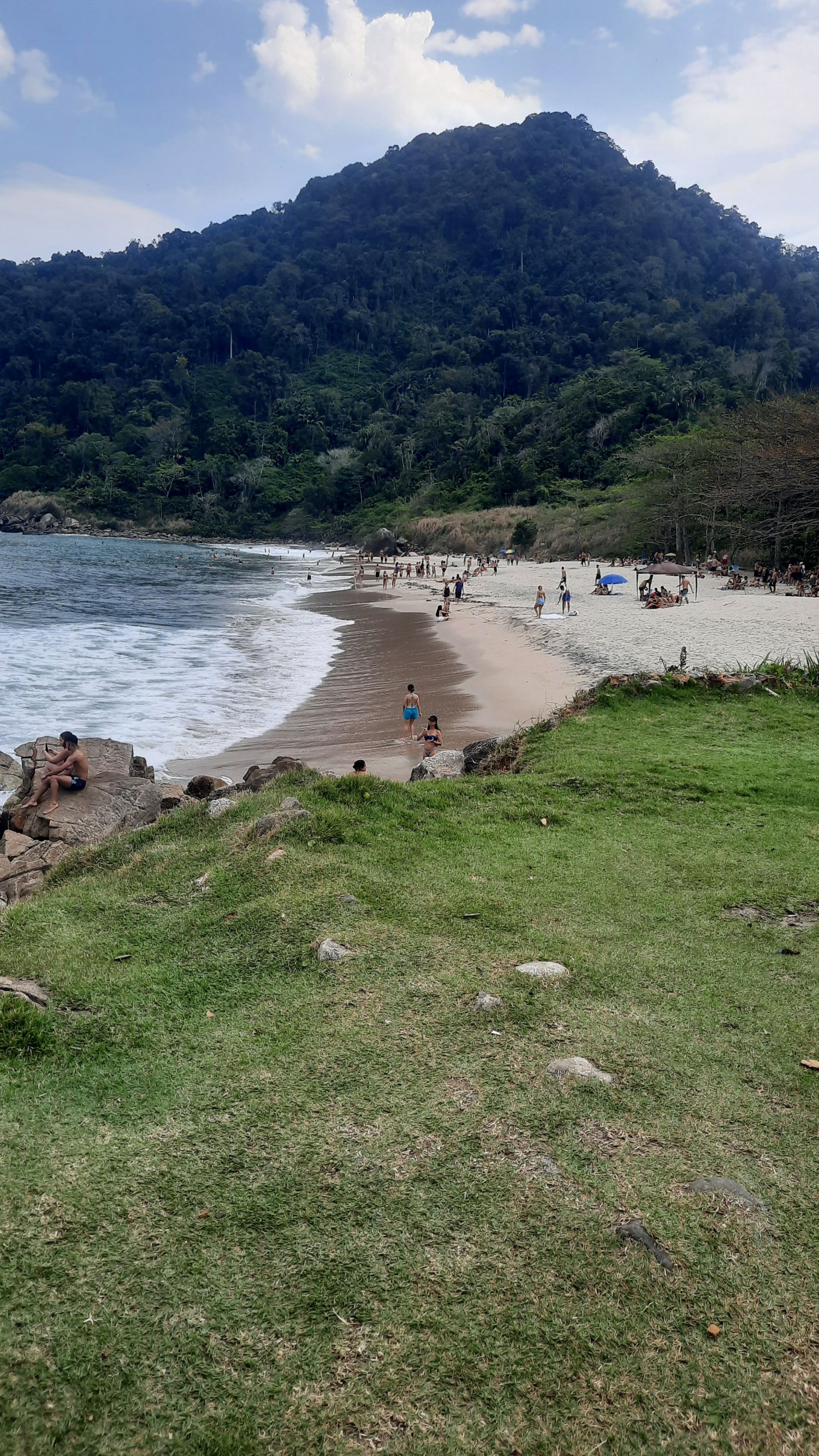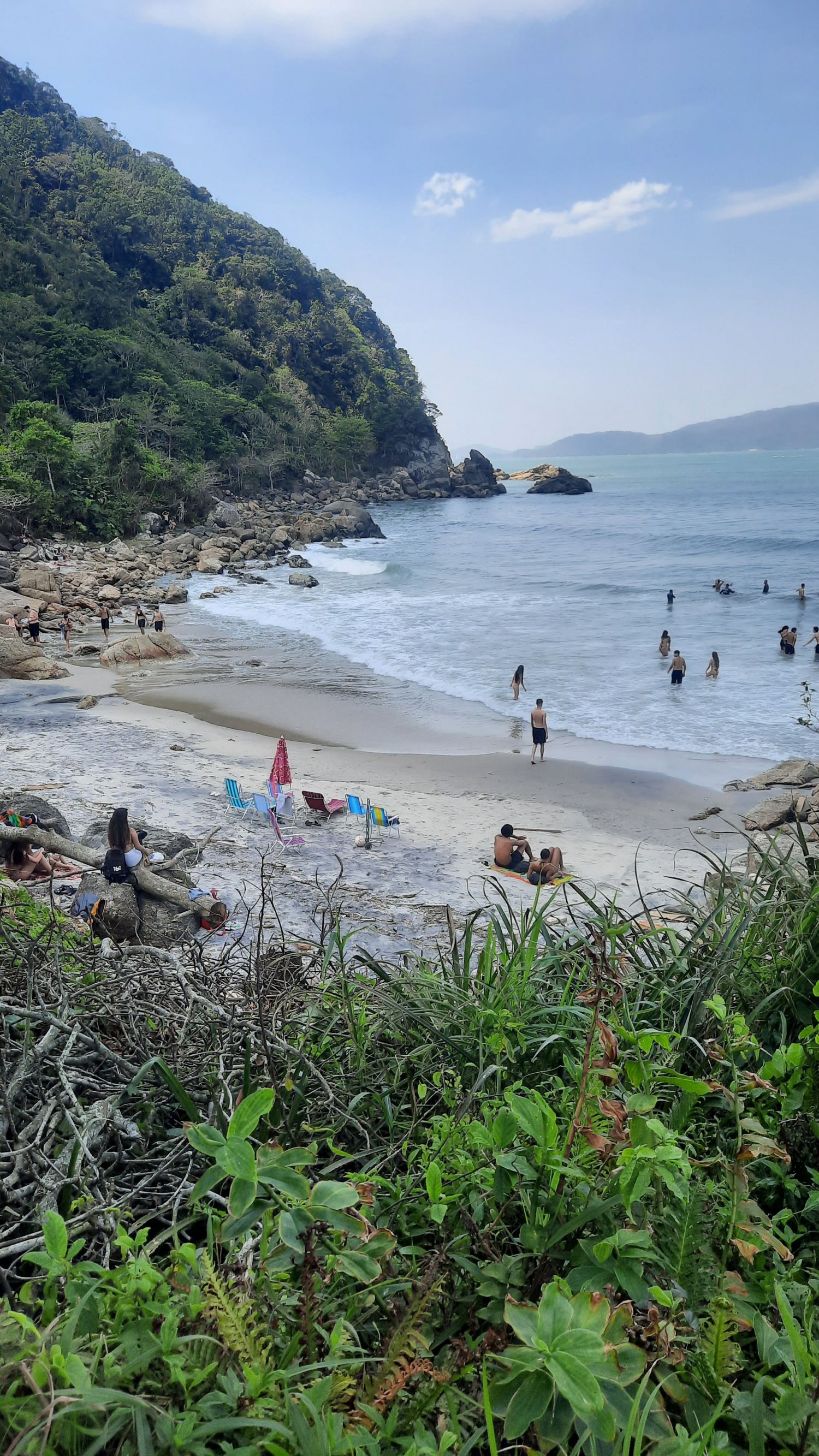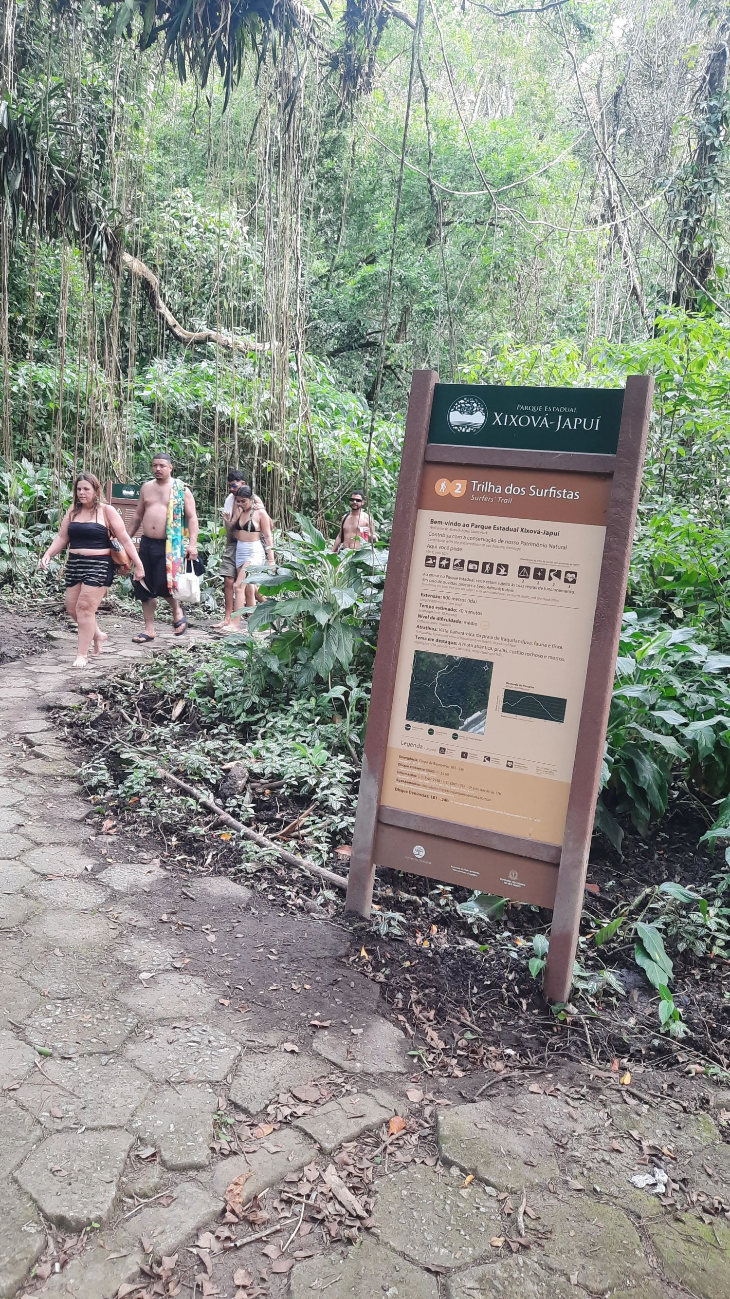 Membros de Honra DIVANEI Postado Outubro 3 Membros de Honra Postado Outubro 3 (editado) TRAVESSIA: PARQUE ESTADUAL XIXOVÁ - JAPUÍ Confesso, nunca fui muito fã das praias do litoral central do Estado de São Paulo, o que chamamos carinhosamente de Baixada Santista. Sempre me pareceu lugares muvucados de mais, gente de mais, praias totalmente urbanas, que não despertava muito a minha admiração. Claro, dezenas de anos atrás, frequentei algumas, principalmente as praias quase selvagens do extremo norte do Guarujá, ali na divisa com Bertioga (Praia Branca, Preta), mas depois que conheci o litoral Norte Paulista (Bertioga, São Sebastião, Ilhabela e Ubatuba), a baixada santista virou apenas passagem. Mas calhou nesse ano, que fui intimado a acompanhar parte da família que mora no interior do Estado e que pela primeira vez iriam conhecer o mar e como o local escolhido por eles, onde alugaram os apartamentos, foi a famigerada PRAIA GRANDE, não me sobrou outra alternativa senão, inventar alguma trilha, algum roteiro que nos tirasse de lá e nos levasse para uma praia de verdade, então era preciso que eu voltasse meus olhos para os mapas locais. Alguns minutos de pesquisas e logo me deparei com o PARQUE ESTADUAL XIXOVÁ-JAPUÍ, um parque criado para proteger um dos últimos resquícios selvagens de mata atlântica ali naquela região, inclusive algumas praias e também, vejam só, uma reserva indígena. A entrada em parte do parque Estadual é gratuita, sendo a trilha autoguiada, ou seja, não é necessário contratar ninguém, somente se o caminhante desejar ir até a aldeia indígena é que deverá se valer de um condutor credenciado. A fim de evitar burocracias desnecessárias, escolhemos um roteiro que pudéssemos ir por conta própria, no caso, uma trilha que leva o nome de TRILHA DO CURTUME, não mais de uns 2 km de andanças até a praia de ITAQUITANDUVA E A PRAIA DO SURFISTA, de onde parte mais uma trilha, que seria a que usaríamos para retornar, estabelecendo assim uma travessia, na verdade um circuito, que no total não nos tomaria mais que 4 km de pernadas tranquilas. Como em se tratando de Parque Estadual em São Paulo, nada é tão fácil como parece, ao entrar no site do parque, descobrimos que era necessário fazer um cadastro de cada pessoa para garantir vaga, que se limitava a no máximo 60 pessoas por dia. Além disso, tinha um monte de recomendações, como o uso de sapato para caminhada, coisa que não tínhamos, justamente porque fomos à praia e ninguém estava preparado. Então foi sum sufoco para improvisar os equipamentos solicitados, mas pelo menos consegui fazer o cadastro dos 5 integrantes, que além de mim, contava com minha esposa, minha irmã e mais dois adolescentes. Do nosso apartamento até a entrada principal do parque, não deu mais que 4 ou 5 km de distância, já que o parque fica justamente na divisa entre a Praia Grande e São Vicente. Chegando à portaria, estacionamos o carro e fomos nos apresentar, mostrar o agendamento que continha um QR CODE para cada caminhante, mas simplesmente a atendente cagou para esse agendamento, somente pediu para que puséssemos nosso nome numa prancheta com os documentos, não inspecionou nada, não informou nada, ou seja, as informações do site não valeram para nada, aliás, nem sei porque ainda se mantem uma portaria ali, já que em nenhum momento vimos ninguém do parque fiscalizando nada. Enfim, estacionamos o carro na rua de acesso à trilha, já que não havia nem vagas no estacionamento, que pelo menos é gratuito. O dia já ia pela pela metade, quando deixamos o estacionamento e ganhamos a trilha demarcada e bem consolidada, pontilhada por palmeiras e matas nativa, no início, uma caminhada em terreno plano que em menos de 10 minutos nos leva no que foi uma antiga pedreira e que hoje está desativada, uma ferida aberta na montanha, que ao longo do tempo foi deixando a floresta desnudada. Voltando para a trilha principal, em mais alguns minutos começamos a subir, enfrentar uma cascalheira e é aí que a minha irmã (ROSINEI), desacostumada a trilhas e afins, já começa a colocar as mãos nas cadeiras e vai dando sinal de que o radiador pode ferver a qualquer momento. Por outro lado, minha esposa, apesar de meio esbaforida, se mantém firme e os meus sobrinhos, molecada jovem, picam a mula na frente e deixam a gente comendo poeira. Para quem não está acostumada com caminhadas com um mínimo de declive, vai sofrer, porque o sedentarismo não poupa ninguém, mas como eu disse, é uma trilha para fazer brincando e quando bate a altimetria de míseros 100 metros, ela estabiliza e daí para frente é somente aproveitar o caminho, numa descida tranquila, com alguns declives mais acentuados, mas nada demais. Pouco mais de 30 minutos, caminhando num ritmo de tartaruga paraplégica, adentramos numa floresta de bambus e taquaras e uns 5 minutos depois, passamos uma pequena ponte de madeira e antes de completarmos 40 minutos de caminhada, desembocamos num mirante que nos presenteia com vistas da pequena e selvagem prainha. Três minutos mais, nos valendo de uma descidinha tranquila, desembocamos de vez na PRAIA DE ITAQUITANDUVA. A praia está quase que vazia, não mais que uma dúzia de pessoas estão por ali, largados ao sol ou se refrescando no mar, onde as ondas estão um pouco fortes. O sol realmente resolveu queimar tudo nesse início de primavera, então todos nós caímos no mar, eu e os meninos fomos trombar com as ondas, enquanto as meninas ficaram na beirinha, se refrescando e se protegendo da fúria do mar. O nome do parque é em alusão aos dois morros que se elevam na unidade de conservação, o morro do Xixová (morro pontudo) e o morro do Japuí (morro grande). Além das praias do Itaquitanduva, ainda preserva as praias de Paranapuã e do Canto do Forte, essas do outro do lado do morro de onde estamos, à nossa esquerda. Bom, depois de uma bela refrescada no mar e de comermos alguma coisa, foi ho