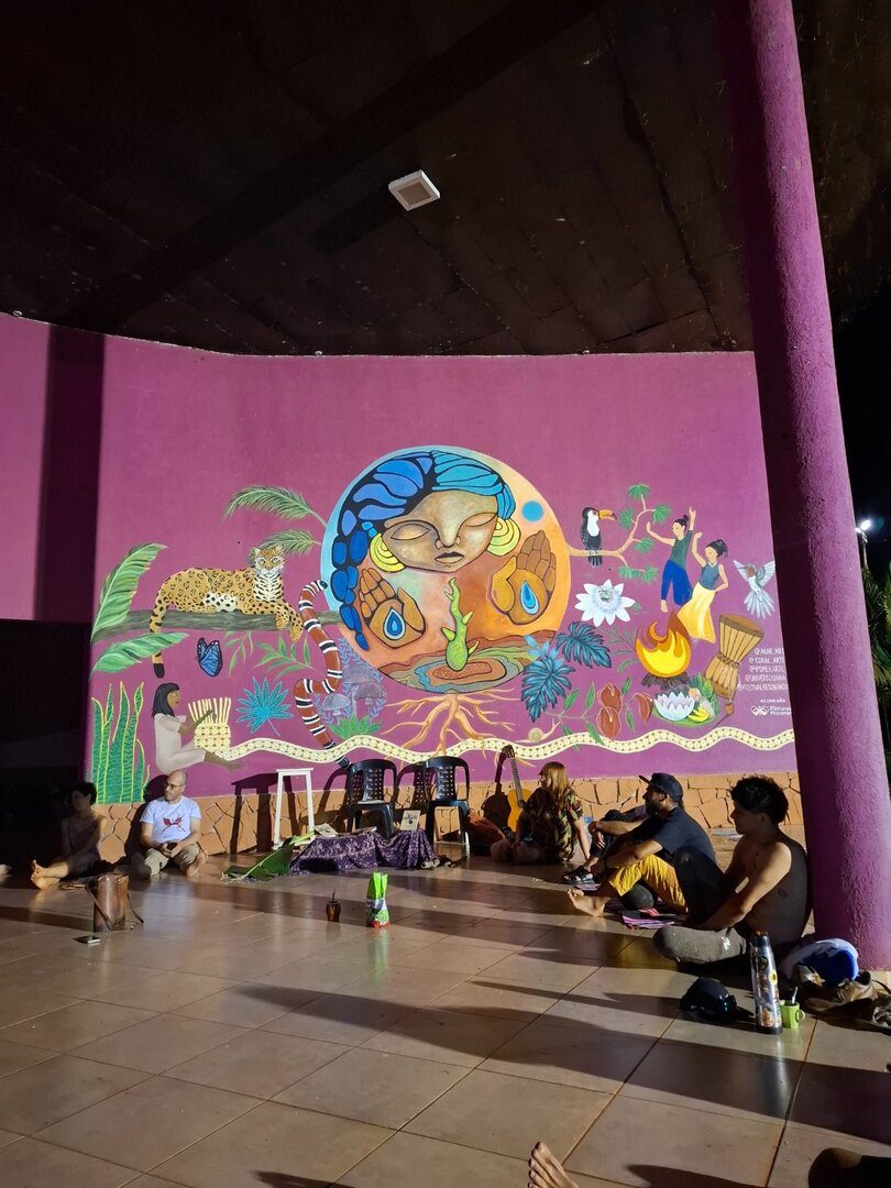 Membros miranlauberf Postado 3 horas Autor Membros Postado 3 horas 1. Foz do Iguaçu - PR Passei só uma noite em Foz, a ideia era dormir, acordar, ir cedinho pras cataratas e cruzar pra Argentina pra dormir a segunda noite lá. Me hospedei no Hostel Poesia, bem agradável e confortável, gostei bastante, paguei 66 reais com reserva pelo booking. Sobre as cataratas já devem ter miles de relatos aqui, vou dar uma atualizada pra ajudar com as infos mais recentes. Pra chegar no parque tem que pegar o ônibus de linha 120 que diz Parque Nacional do Iguaçu, pedindo informação tu descobre certinho onde passa. A passagem custa 5 reais e te deixa na porta do parque. O ingresso tá custando R$ 105, valores de 2025. Cheguei numa hora muito ruim, acho que pelas 11h da manhã porque não consegui concretizar meus planos de sair cedinho... no hostel tu conhece gente legal e acaba se perdendo nos papos do café da manhã, acontece, e eu acho preciosíssimo viver essas relações efêmeras da galera encontrada em viagem. Além de que nessas acabei vendendo bastante minhas artesanias e já cobriu o valor do passeio no parque Enfim, cheguei nas cataratas, peguei uma fila gigante e fiz os trajetos super cheios, não foi muito agradável isso mas o pico é tão maravilhoso que tanto faz a muvuca de gente quando tu sente toda aquela energia da água. Na primeira vista das cataratas eu já tava chorando de tão lindo. por algum motivo fiquei virada, mas deixo aí igual kkk Depois de terminar esse trajeto indo até lá a garganta do diabo eu queria fazer a trilha que te leva pra uma cascatinha que dá pra tomar banho, que achei que era o caminho das bananeiras mas me enganei, então fiz a trilha errada. De qualquer forma foi bem legal essa das bananeiras, te leva mais pelo meio do mato até uma outra vista do rio, longinho das cataratas, em que tu vê a imensidão do rio correndo calminho e passa por um bilhão de borboletas e por vários lagartos. O caminho que eu queria ter feito era o circuito São João, que fecha às 15h, daí eu já não tinha mais tempo na hora da volta pra fazer. Deixo aqui esse mapa extremamente útil pra planejar o rolê e que não tem na internet (se tivesse visto ele antes não teria feito a trilha errada rs) Voltei pro hostel e peguei o ônibus internacional pra Puerto Iguazu perto do hostel, numa parada na rua. Tá escrito Puerto Iguazú, é o mesmo que te leva tanto pro centro/rodoviária/feirinha e depois vai pras cataratas argentinas. Custa 30 pila A fronteira é bem serena, eu tava um pouco insegura porque em 2022 tinha ido pra Buenos Aires e voltei pro Brasil sem dar saída da Argentina, mas não tive problema nenhum em cruzar. Tu desce do ônibus, faz o trâmite bem rapidinho, volta pro bus e tchau já tá na Argentina. 2. Puerto Iguazú - Argentina Cheguei de noite, dormi no Hostel Damaris, peguei um quarto privado por 15 mil pesos, que deu mais ou menos 60 reais. A ideia era ficar só uma noite, mas acabei ficando duas, na segunda peguei um quarto compartilhado por 9000, que é tipo 35 pila. É bem simplinho, mas cumpre o prometido pelo preço baixíssimo, achei as camas bem desconfortáveis mas o pátio que tem nos fundos é bem legal pra ficar curtindo com quem mais estiver ali e tem piscina. No dia seguinte acabei preferindo caminhar pela cidade em vez de ir pras cataratas. Fui pra um tal de ~mirador escondido~ que encontrei no mapa ali pertinho da feirinha e segui andando até o marco das três fronteiras. Tava um calor del horto, me queimei horrores e tava cansadona de subir e descer (infelizmente sempre tinha a péssima ideia de caminhar na rua pelo meio dia), mas fui devagarinho curtindo o caminho, descansando nas poucas sombras olhando o rio e tal. Foi ali em Puerto Iguazu que comprei um chip argentino da Claro, paguei 500 pesos ou seja míseros dois reais. Um amigo antes de eu ir viajar tinha me emprestado um da Movistar, mas chegando lá descobri que não funciona essa operadora no norte da Argentina, é mais do centro ali Buenos Aires, Santa Fe etc. O da claro me serviu muito bem, acho que ao todo nesses quase 2 meses de viagem devo ter gastado no máximo dos máximos 15 mil colocando crédito pra usar internet, o que achei que super valeu a pena. Só tem que cuidar pq ele ativa os dados imediatamente quando tu carrega e se tu não compra um pacote ele vai gastando super rápido, tem que entrar no aplicativo pra ver isso e tal se não tu perde altos pila a nada. E só isso, no terceiro dia de manhã peguei um bus na rodoviária com destino a Puerto Libertad, onde ia rolar o festival. 3. Puerto Libertad - Festival Resonancias Bom, esse foi o meu motivo de ter saído pra viajar. Foi a terceira edição do festi, que é organizado por uma galera multiartista , é uma junção de galera pra acampar, tomar banho na barragem, fazer oficinas artísticas, trocar experiências, viver a autogestão e tal. Encontrei no insta por causa de um pessoal que encontrei tocando na rua em Paraty RJ e pirei no trampo deles, comecei a acompanhar e eles são parte da organização do festival. Daí que assim fui atrás deles porque me apaixonei pela chacarera, pelo malambo, pelo zapateo, enfim, queria conhecer mais dessa cultura do folclore argentino que é linda e também é parte da cultura gaúcha que vivo aqui no sul do Brasil. Pra quem quiser acompanhar, no insta é @festivalresonancias Assim acampei uma semana no Parque Urugua-í no meio de completos desconhecidos que viraram várias amizades. O festi foi lindo lindo, fizemos oficinas de música, dança, teatro, cerâmica, pintura, literatura, além de rangos coletivos, mate mate mate, noites na fogueira trocando ideia e tocando violão, sarau na praça da cidade, e foi de gratiss tirando as comidas, que custavam 4mil pesos por refeição, que são tipo 15 reais. Na primeira foto o mural que foi pintado ao longo do evento, minha barraquinha olhando pro lago e meu paño improvisado de artesania e literatura, inclusive se al