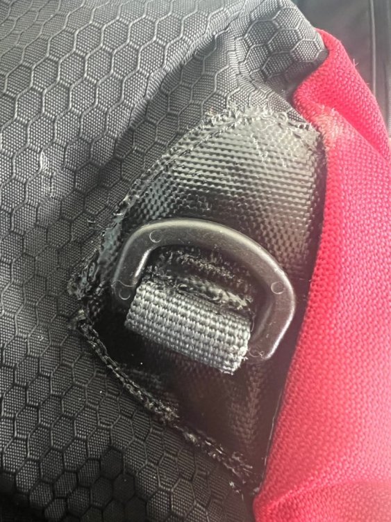 5. Acesso inferior: Abertura com zíper em “U” invertido no fundo da mochila, dando acesso ao compartimento inferior que internamente é dividido do restante da mochila por outro zíper, permitindo o transporte de itens que devem ficar isolados do restante da carga, como calçados roupas molhadas, saco de dormir, etc. Este compartimento conta ainda com o reforço de duas alças com presilhas que, além de garantir o zíper contra o peso da carga interna, servem ainda para carregar itens presos por fora da mochila, como barracas, isolantes e outros (embora eu particularmente não recomende isso, mas apenas por não gostar de caminhar com a mochila cheia de penduricalhos);