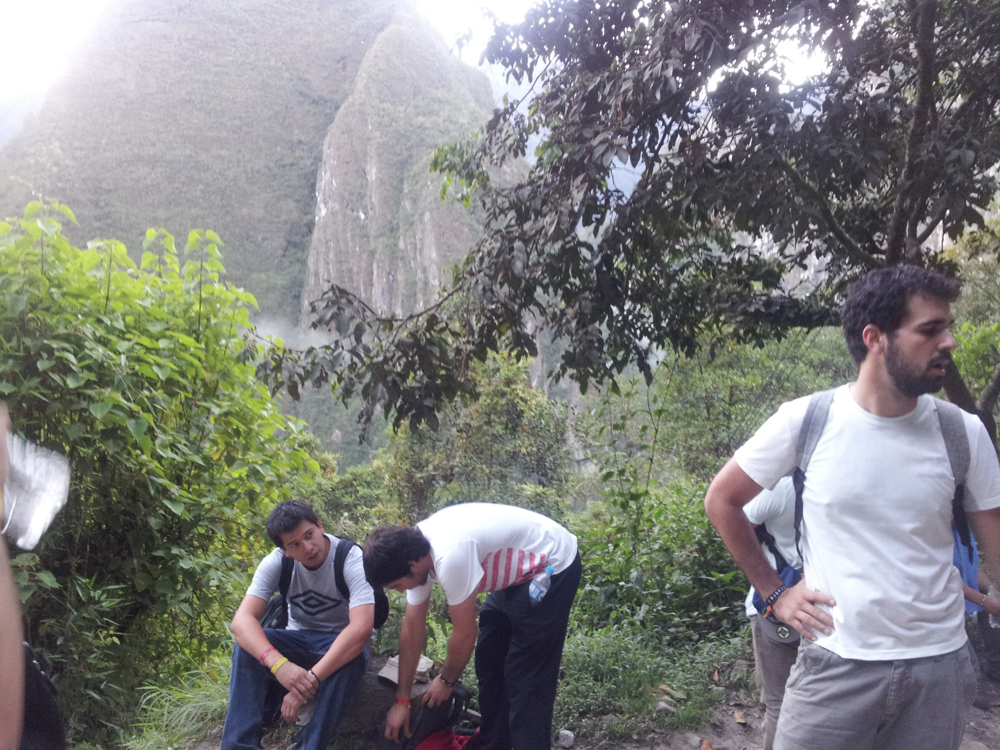 Colaboradores MauroBrandãoo Postado Abril 8, 2013 Autor Colaboradores Postado Abril 8, 2013 (editado) 16º Dia - Rumo a Machu Picchu ! Acordo cedo, no quarto que não era o meu ! Acordei eram umas 06:30 com ajuda do cel dela. Depois da dura despedida, voltei para o quarto que originalmente era meu. Os Caballeiros estavam dormindo ainda. Arrumei minhas coisas e chamei primeiro o Nato, depois Rafa e quando fui chamar el Caballeiro de la Noche, ele não estava sozinho !! Então, chamei com cuidado. Começamos a nos arrumar, pois a van chegaria as 08:00 ! Nos Arrumamos, outra Caballeiro se despede duramente de su enamorada e nos dirigimos ao balcão para guardar as mochilas. Todos prontos, mais alguns instantes e a van nos pega ! E ai que eu me ferro. Sou grande, e as vans normalmente não são. OOOO Vida. Consegui um lugar perto do Juan e até que consegui esticar as pernas. O Motoris nos pegou, passou em mais uns 2 hosteis e parou em frente de um hostel que não me lembro o nome. Ficamos la um tempo, e foi começando a entrar gente na Van. Primeiro um casal de Chilenos, depois um grupo de brasileiros, duas Australianas. Grupo fechado. Enquanto esperávamos a van sair, passaram umas mulheres vendendo doces e um tiozinho vendendo um bolo de baunilha e chocolate por 2 soles. Até que deu vontade de comprar, mas deixei quieto. Tínhamos lanches nas mochilas, castanhas, frutas cristalizadas e chocolates ! Depois de mais um pouco de atraso, partimos. Uns 2 ou 3 minutos depois que partimos, nosso motorista para para abastecer e sobe uma mulher e uma criança, e sentam no chão ! Que coisa não ? O Motorista não falou nada, nem a gente. Eu sinceramente acho que era a esposa e a filha dele. Mas nunca saberei !! Andamos umas 3 ou 4 horas em uma estrada mesmo, asfaltada em bom estado de conservação. Perto do 12:00 fizemos uma parada em uma vendinha que vendia de artesanato até salgadinhos ! De tudo. Comprei uma Ruffles e refri por uns 6 soles. Mas estava caro viu. Nessa parada várias vans de diversas empresas param, praticamente no mesmo horário. Até conhecí uns brasileiros(como em todo o lugar em Cusco) e conhecemos melhor os brasileiros da nossa van. Mais um pouco, partimos. Tínhamos ainda umas 3 horas até a Hidrielétrica. Ai, meus amigos, que começa a aventura. Primeiro que a estrada é bem perigosa. Não lembro certinho quais as cidades que passamos, mas passamos por Santa Maria. Nessa parte, ainda é asfaltada, mas o precipício é do lado. É muito alto, e a vegetação totalmente diferente do que a gente ta acostumado. As vezes me perdia na paisagem. O clima é friozinho, mas de acordo com que se vai descendo, vai ficando mais caloroso(calor). Clima tropical, parecido com o do Brasil. Ai, começamos a estrada de terra. Manooooooo, véioooooo, Manooooooooooooo véioooooooooo, mas não passava nem agulha. Agora tu me pergunta : Mas porque Mauro ? Pensa em um precipício ! Ok, agora, tu coloca uma estradinha bem do ladinho do precipício ! Colocou ? Certo ? Agora imagina que essa estrada tem uns 4 a 5 m de largura. Coloca uma van com mochileiros lá ! Quero ver tu não repensar na vida. Eu sinceramente não tenho muito medo de altura, mas naquele dia, tive "respeito" pela altura e na habilidade do motorista. Era engraçado, que tinha horas que a Van toda ficava quieta. Todo mundo. Não ouvia nem a respiração dos nego. Principalmente nas zonas mais críticas, ou quando passava uma van voltando ! Depois de umas horas, paramos para almoçar. Não me lembro o nome da cidade, mas acredito que todo mundo que vai a Machu Pichu para lá. Entramos em um restaurante muito supeito. A comida suspeita. Sentamos, ja havia outras vans lá fora e uma galera dentro do restaurante. Nisso, olhei na cozinha, e vi um PERUADO(peruano suado) enormemente gordo e barrigudo prepando a comida ! Guardei essa visão pra mim, orei a Jesus e pedi realmente para abençoar minha comida e dar forças ao meu estômago .(esse era o almoço incluso no pacote). Ficamos lá em torno de uma meia hora, quarenta minutos. Outra coisa que me aconteceu, e que vale nota foi o seguinte : Quando sai de cusco, troquei uns doláres por soles. Ai, quando cheguei nessa cidade para almoçar, tentei comprar umas porcarias, mas quando dei a nota de 50 soles para a mulher, ela olhou, olhou e olhou e percebeu que ela estava danificada. Não sei realmente como, mas ela estava meio que desbotando. Ai ja pensei, fodeu ! Perdi 50 soles ! Mais ai, como consumimos lá no restaurante coca, e pedi para o juan pagar a conta com a nota zuada. Como ele falava espanhol melhor, poderia argumentar e tal. Foi o que ele fez, o cara falou merda, mas no final das contas aceitou a nota. Então, tome cuidado com as notas que pegue. Não pegue notas velhas ou minimamente desbotadas. Depois do almoço, ficamos lá fora até a van sair. Chegamos a Hidrielétrica. mais precisamente chegamos umas 16:00 hrs. Quando chegamos, o nosso guia, David já estava nos esperando. Tiramos toda as nossas tralhas da van e ouvimos as explicações. Ele explicou que iríamos seguir pela linha de trem até Aguas Calientes, a 12 km de onde estávamos. Dava mais ou menos umas 02:30 de caminhada até lá. Chegando lá, iríamos ao hostel Rimaq Apu, pois la estava nossa reserva. Depois de nos acomodarmos, as 08:30 iríamos ao restaurante para jantarmos e ele iria nos explicar como iria ser no próximo dia, em machu Pichu ! Ele nos deu o papel do hostel, falou para nao perdermos. E para garantir, tiramos uma foto : Logo, ele nos guiou até a entrada da trilha para chegar ao trilho de trem. Chegando, nos disse só para tomar cuidado com o trem. Todos Prontos ? Let's Go Baby, rumo a Águas Calientes ! Começamos andando todos juntos, mas depois de um tempo, nos distanciamos dos brasileiros e das australianas e seguimos sozinhos. A paisagem é muito bonita, no caminho. O trilho do trem fica paralelo ao rio e montanhas. Demais. Não deu nem 5 minutos de caminhada , de repente, vejo o mat