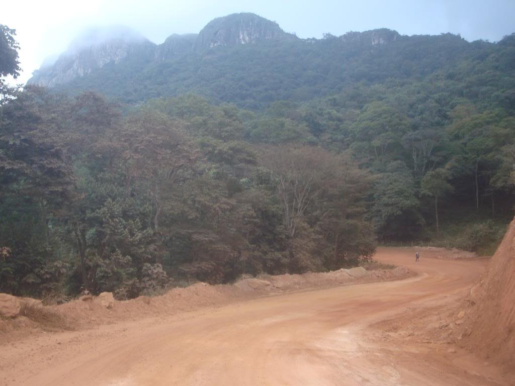 Logo após o asfalto, estrada de terra, com muito pó..... lindo visual das montanhas.... pra não perder o costume, subidas/descidas fortíssimas..... sorte que pegamos pouco sol.