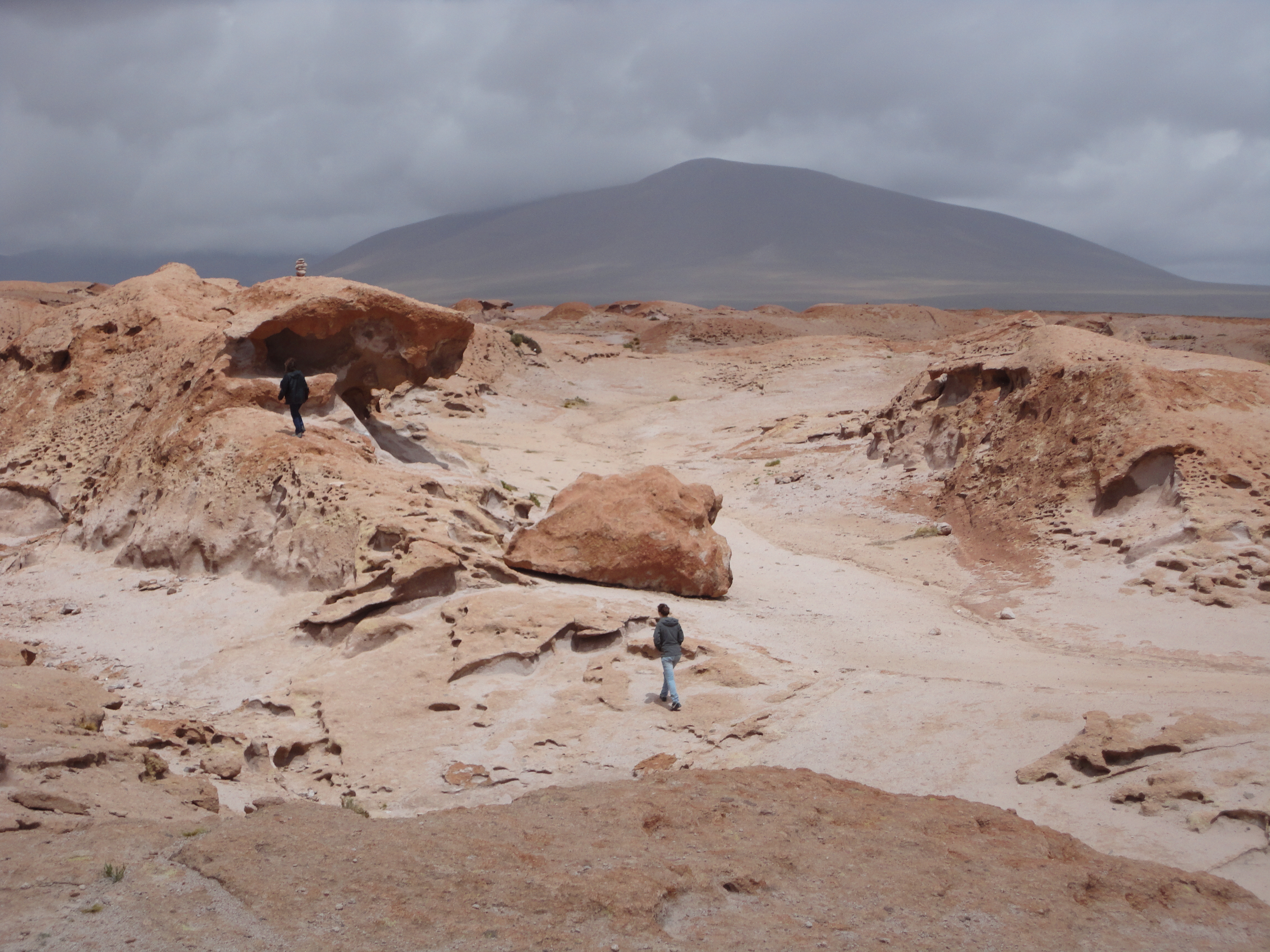 Membros Vivian Lira Postado Junho 9, 2013 Membros Postado Junho 9, 2013 Contratei a viagem para Uyuni já no primeiro dia em San Pedro, na mesma agência em que fiz todos os passeios pelo Deserto do Atacama, a World White Travel. Essa agência fica na Caracoles (principal rua de San Pedro) e eu a recomendo completamente - a filial boliviana fica em uma das principais ruas de Uyuni, a Av. Ferroviaria, bem perto da Plaza Arce, principal praça da cidade. Quando ainda estava planejando a viagem, li muito a respeito da Colque Tours e da Cordillera Traveller - você com certeza também vai ler muito sobre elas. Cheguei lá decidida a contratar uma das duas, mas tanto alguns mochileiros que conhecemos por lá quanto o dono do hostel em que ficamos nos disseram que ambas estavam tendo muitos problemas, e no final da viagem a Uyuni testemunhamos um. (Quem tiver preguiça de ler tudo, as informação importantes estão compiladas lá embaixo) Há algumas opções de pacotes, de dois, três e quatro dias. Escolhemos o completíssimo, de quatro dias, que custou 120.000 (cento e vinte mil) pesos chilenos. Eles aceitam todos os tipos de cartões, porém, acrescentam uma taxa de 5% a este valor. Todos os pacotes incluem café da manhã, almoço e janta, hospedagem, transporte e os passeios. A programação era a seguinte: 1º dia: Laguna Blanca, Laguna Verde, Deserto de Dali, Aguas Termales, Geisers Sol de Mañana, Laguna Colorada 2º dia: Arbol de Piedra, Laguna Altiplanica, Salar de Chiguana, San Juan, Hotel de Sal 3º dia: Isla del Pescado, Museo de Sal, Montores de Sal, Colchani, Salar de Uyuni, Cementerio de Trenes e Uyuni 4º dia: Retorno a San Pedro de Atacama. A própria agência também fez o serviço de câmbio. Compramos 150 bolivianos a 12.000 pesos chilenos. Se você não gastar esse dinheiro a agência te devolve tudo pelo preço que você comprou, sem nenhuma taxa. A viagem 1º dia: Laguna Blanca, Laguna Verde, Deserto de Dali, Aguas Termales, Geisers Sol de Mañana, Laguna Colorada Um micro-ônibus da agência nos pegou na porta do hostel às 5h da manhã do dia marcado. Seguimos numa viagem de aproximadamente cinco horas até a fronteira. Depois de sair do Chile, desembarcamos num lugar literalmente no meio do nada, que fica entre a alfândega do Chile e a da Bolívia. Só se vê horizonte para todos os lados. É onde você deixa o serviço chileno e "embarca" no serviço boliviano. É simplesmente um local a céu aberto, onde é feita a troca de carros. Tomamos café-da-manhã no micro-ônibus e em seguida iniciamos uma longa espera de cerca de 1h30 pelo nosso carro. Todo o passeio por Uyuni é feito num veículo modelo 4x4 para seis pessoas. O nosso era um Land Cruiser que cheirava a mofo e com o para-brisa quebrado. Fomos num grupo de cinco, eu com meu amigo, duas francesas e uma coreana. As belezas naturais da Bolívia já podem ser percebidas desde o começo da viagem. São vulcões enormes para todos os lados, todos com o cume coberto de neve, várias formações rochosas espetaculares... é tudo grande, diferente, lindo... é de deixar qualquer um impressionado, com o dedo nervoso no botão da máquina fotográfica. O triste é que é tudo tão grande e tão espetacular, que não "cabe" em fotos, nem da melhor câmera do mundo. É pra aproveitar cada minuto e guardar na memória mesmo. Por todo o percurso somos acompanhados por dezenas de outros carros como o nosso. Todo o passeio é feito em comboio. Em todas as paradas são centenas de turistas juntos. Por isso acredito que independente da agência que você contratar, o roteiro vai ser sempre igual, a diferença vai ficar na qualidade do carro, da comida e da hospedagem. Fizemos diversas pequenas paradas em lugares com formações rochosas interessantíssimas, até nossa primeira parada prevista no roteiro: a Laguna Blanca. Ficamos cerca de 1h por lá, almoçamos no carro (o guia acumula a função de cozinheiro) e seguimos para a Laguna Verde. De lá seguimos pro que pra mim foi o melhor do dia: o Deserto de Dali e o Arbol de Piedra. Dizem que o deserto ganhou este nome por suas formas rochosas lembrarem as obras do pintor surrealista Salvador Dali. É simplesmente espetacular. Já começávamos a sentir os primeiros sintomas da altitude. Um forte cansaço e certa dificuldade pra respirar. Mas nada que beber água, caminhar calmamente e comer comidas leves não aliviasse. A parti daí foi onde as coisas começaram a desandar pra gente. Janeiro é tempo de chuvas fortes lá, por conta do mau tempo, boa parte dos programas que contratamos não puderam ser feitos. Ficamos um tanto desapontados com a agência, pois não fomos avisados que isso poderia ocorrer e pagamos o valor integral. Sequer houve algum desconto ou compensação pelas perdas que tivemos. Se tivéssemos sido avisados, poderíamos ao menos ter optado por não fazê-lo nesta época. O primeiro passeio que ficou de fora de nossa viagem foi a piscina de água termal, que infelizmente vai ficar para outra oportunidade. A próxima parada foi na Laguna Colorada. Um dos principais pontos turísticos dessa viagem. Ela é exatamente como vemos nas fotos: vermelhinha (e fedorentinha). Seguimos para aquela que viria a ser uma das partes mais interessantes dessa jornada: as hospedarias. Ainda por volta das 16h fomos descarregar nossas malas no lugar onde passaríamos a primeira noite. Trata-se de uma espécie de acampamento. São uns galpões enormes, com dezenas de quartos coletivos, normalmente para seis pessoas, totalmente improvisados. Não há calefação, não há um chuveiro para tomar banho, o banheiro é unissex, com quatro vasos e duas pias e não há papel higiênico - demais artigos para higiene pessoal também são totalmente por sua conta - e não há onde comprar. Esses galpões ficam no meio do nada, próximos a Laguna Colorada, então não há como se refugiar. O frio é desesperador. Há camas nesta hospedaria, mas você vai precisar de sacos de dormir pa