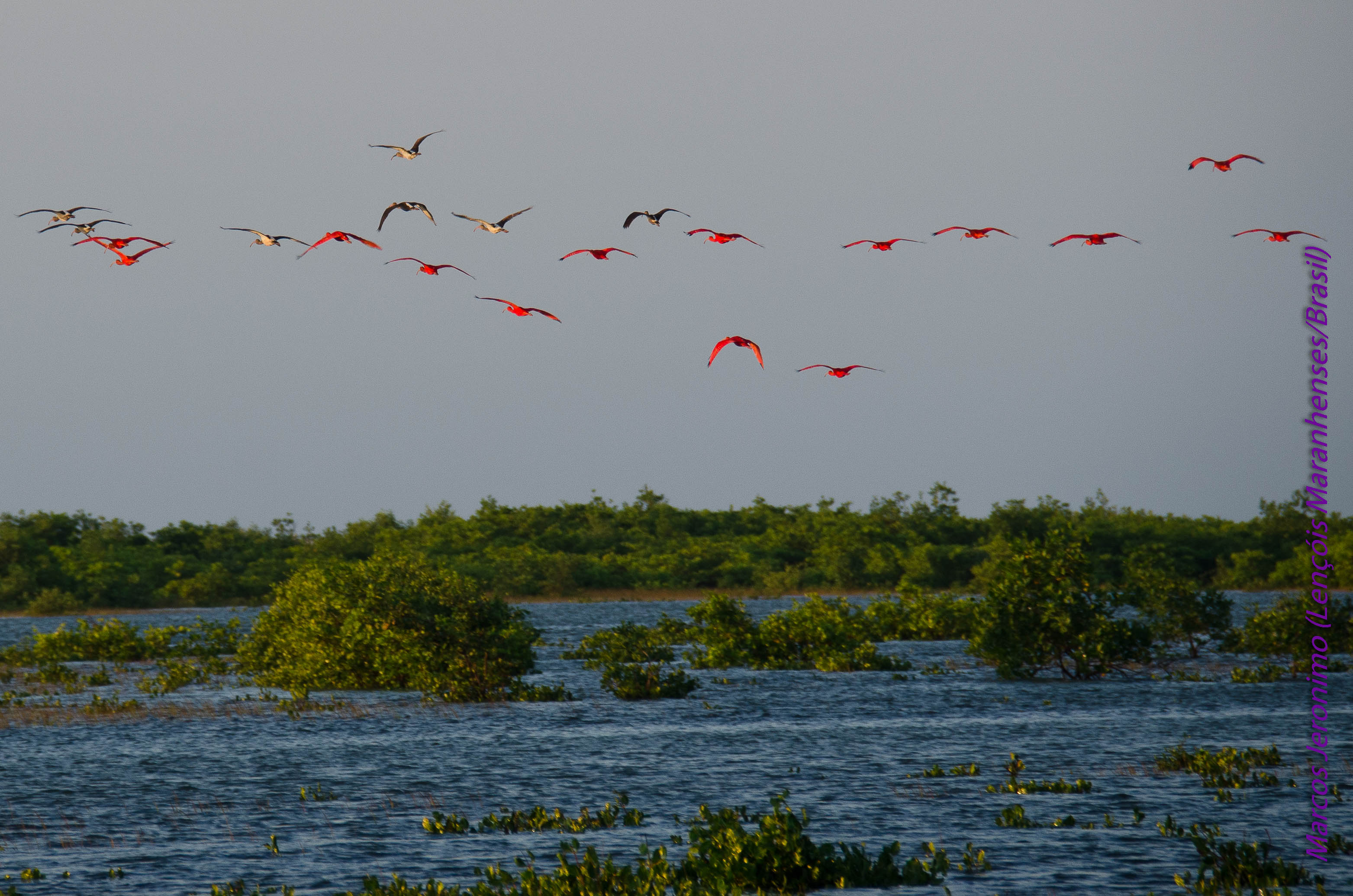 Para fechar esse segundo dia, fomos apreciar a revoada dos Guarás no fim da tarde [R$25,00 pp]. Para isso, é necessário uma canoa para atravessar o Rio Preguiças até o lado dos Pequenos Lençóis. O show das aves foi mesmo muito bonito.