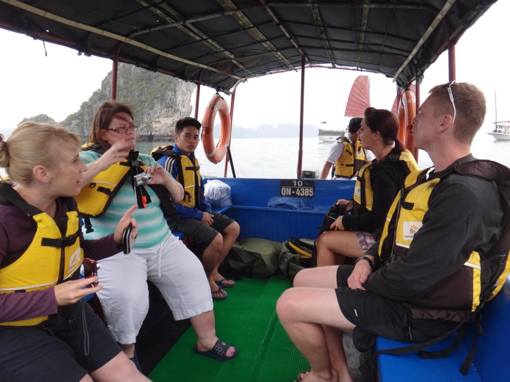 Membros fabiano_cwb Postado Novembro 4, 2013 Autor Membros Postado Novembro 4, 2013 (editado) Dia 07 – Hanói – Halong Bay No dia seguinte, acordei cedo (6:45h) pra arrumar a mala e depois tomar o café da manhã no restaurante do hotel. O café da manhã do hotel é muito bom. O restaurante também prepara omeletes, panquecas, torradas e "pho" (café da manhã típico dos locais). E pode repetir à vontade! O passeio a Halong Bay incluia o transfer desde o hotel. Eu tinha que estar pronto na recepção às 8:00h. Um pouco antes desci para fazer o check out. Como eu voltaria nesse hotel no dia seguinte, o gerente disse que eu poderia acertar tudo na volta. Deixei a mochila grande no guarda-volume do hotel e levei só a mochila pequena para Halong Bay. A van da empresa Indochina Junk passou primeiro no meu hotel e depois foi apanhar outros passageiros em outros hotéis nas redondezas. No caminho para Halong Bay, pude registrar algumas cenas de uma manhã de domingo na capital do Vietnã. Halong Bay não é muito longe de Hanói, mas a viagem leva cerca de 3 horas (a van vai beeem devagar, não passa de 60 km/h). No caminho tem uma parada de uns 30 minutos para toilete, lanche e compra de artesanato local. Era quase meio-dia quando chegamos na sede da empresa em Halong. Lá os passageiros são divididos de acordo com o barco e o pacote (1 ou 2 dias). Eu tinha feito reserva para o Prince IV, que era um melhores de acordo com reviews de sites da internet. O pacote era de 2 dias/1 noite, com refeições incluídas (bebidas à parte). O preço normal do pacote era de USD 205, mas como eu viajei sozinho havia um suplemento "single" de USD 90. O barco não era muito grande, havia apenas 3 quartos para os passageiros (máximo 6). Por isso era um dos mais exclusivos da frota e o trajeto fugia das hordas de turistas. É o preço que se paga para ter um pouco mais de sossego e contemplação de uma das maravilhas da natureza... Assim que chegamos no barco, o nosso guia Anh (não sei como se pronuncia) entregou as chaves do quartos para deixarmos as malas e avisou para logo subirmos no deck para instruções gerais da viagem. O Anh primeiramente apresentou a tripulação, composta por ele e mais 4 pessoas: o encarregado de manutenção, o capitão, o gerente e o cara mais importante, o chef! Depois explicou o roteiro do passeio, horários, as refeições inclusas, etc. Também fizemos as apresentações pessoais entre os passageiros. Junto comigo estavam viajando um casal inglês e duas australianas de Brisbane. Como o tempo estava bom, todas as refeições foram no deck externo. Com direto a vista incrível! Já era mais ou menos 13:00h quando o almoço começou a ser servido. O cardápio tinha um caldo de entrada (picante), salada de vegetais, mariscos, camarões, peixe e sobremesa (frutas). Quem não come frutos do mar ou é vegetariano tem que avisar quando estiver fechando o pacote em Hanoi, senão vai passar fome no passeio. Depois da comilança, tem um tempinho pra fazer a digestão e apreciar a paisagem da baía. Logo depois avistamos a primeira parada. Fica numa ilha com uma estreita faixa de areia. O barco não pode chegar até lá, daí temos que ir com o barco menor (que fica junto com o barco grande). Chegando na praia, têm algumas opções pra passar o tempo. Ficar lagarteando na areia, mergulhar ou andar de caiaque. Todo mundo foi de caiaque (e foi minha estreia nesse meio de transporte). Depois do passeio de caiaque, fomos encarar uma trilha até um mirante e uma caverna no alto da ilha. O esforço compensa. Daí voltamos pela mesma trilha até a praia. E pegamos o barco pequeno para voltar ao barco principal. Voltando ao barco, o Anh perguntou se alguém queria mergulhar. Vontade não me faltou, mas tenho que aprender a nadar direito (na verdade eu sei nadar onde dá pé, mas eu não consigo boiar, mas isso é uma longa história...). Daí só o Dave (inglês) teve coragem de encarar a água (que estava bem fria e com correnteza) Depois do mergulho, o barco continua viagem até o local onde vamos ancorar e passar a noite. A prática de atividades físicas geralmente dá fome. E que fome! Daí chegou outro momento muito aguardado: o jantar! Também teve uma sequência de pratos, começando com uma salada de entrada, spring rolls (rolinho primavera), camarões, etc. Depois do jantar ainda tinha a opção de pesca noturna de lulas (eu não gosto de pescar nem de dia, imagina à noite...). Fiquei na mesa batendo papo com os outros passageiros e depois fui dormir, afinal no dia seguinte as atividades começavam bem cedo (6:00h)! . Editado Novembro 6, 2013 por Visitante Citar