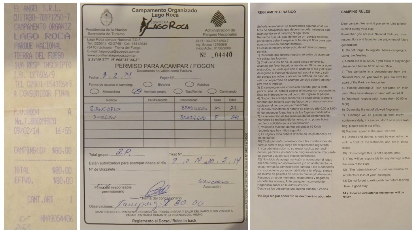 Membros Koslinsky Postado Novembro 23, 2014 Autor Membros Postado Novembro 23, 2014 [t1]Dia 09 - 09/02/2014 – De Rio Grande a Ushuaia![/t1] • Quilometragem do dia: 244• Quilometragem acumulada da viagem: 5.315 • Gasto aproximado do dia: R$ 349,53 Depois de 5.278,9 km: Ushuaia! No nono dia de viagem saímos por volta das 10 horas (9,5°C) de Rio Grande e seguimos para Ushuaia. Paramos em Tolhuin para abastecer e em outros diversos pontos do percurso para fotografar. A natureza que beira a estrada para Ushuaia é um espetáculo. As árvores mais altas começam a aparecer, mais e mais guanacos e montanhas! A estrada é boa, é larga o suficiente para duas pistas, quase toda pavimentada, e quase toda protegida com guardrails. No caminho os pontos mais bonitos para mim foram a vista do Lago Fagnano, a vista do Lago Escondido com o Paso Garibaldi e a visão das montanhas. Ao chegarmos em Ushuaia, às 14 horas, procuramos um lugar para almoçar e uma agência para os passeios do dia seguinte. Percebemos que em Ushuaia os restaurantes não ficam abertos durante o dia à disposição dos atrasados, mas felizmente achamos um lugar para comer: Ice Bar. A cidade de Ushuaia é muito bonita com ruas íngremes, de um lado montanhas com o topo nevado e do outro mar! Nas ruas principais de Ushuaia, principalmente na San Martin, existem várias opções de agência de turismo. Pelo que vimos, os valores eram todos parecidos. Os principais passeios em Ushuaia segundo as agências são: • Parque Nacional Tierra del Fuego: com a opção do Tren del Fin del Mundo. Como estávamos de carro decidimos conhecer o parque por nós mesmos. • Navegación Canal Beagle: Contratamos este passeio para o dia seguinte. É imperdível!• Travesía Lagos: Não fizemos porque já tínhamos feito boa parte do percurso entre as montanhas no caminho até Ushuaia.• Avistaje de castores: Passeio noturno.• Trekking Laguna Esmeralda: Fizemos por nós mesmos no terceiro dia em Ushuaia.• Trekking Glaciar Albino: Resolvemos conhecer apenas o Glaciar Martial no terceiro dia em Ushuaia.• Sobrevuelos: Não tínhamos cacife para este passeio.• Cabalgatas: Apesar de amarmos cavalos, este vai ficar pra próxima visita. Fechamos então o passeio de barco pelo Beagle para o dia seguinte. Depois descobrimos que o passeio de barco pode ser acertado, talvez com valores melhores, diretamente nas pequenas cabanas que ficam perto da entrada do Porto de Ushuaia. A agência que comercializou o passeio para nós somente intermediou a venda. Pagamos pelo passeio no Beagle 800 pesos argentinos para duas pessoas. Depois de tudo acertado para o dia seguinte, seguimos para o Parque Nacional Tierra del Fuego. Este parque foi uma das atrações mais incríveis da nossa viagem. Nele, além de paisagens magníficas, também se encontra o fim da Ruta 3, considerado turisticamente o fim do mundo, pois é o ponto mais sul do mundo que se pode chegar de carro. Chegamos no parque perto das 16h30, pagamos a entrada – 60 pesos argentinos por pessoa – e seguimos para a área de acampamento Lago Roca. Segundo o guia O Viajante América do Sul, o guarda-parques funciona das 7h às 21h (das 8h até o entardecer/escurecer), e quem entra entre as 22h-7h não paga ingresso. E no inverno a entrada é gratuita todo os dia No parque existem áreas de camping selvagem e estruturado. Decidimos ficar no Lago Roca, pois ele possui estrutura de banheiros (baños) e chuveiros (duchas). O valor para ficar no camping era de 40 pesos por pessoa. Depois de montarmos o acampamento fomos caminhar pela redondeza e fizemos uma pequena parte da trilha Hito XXIV, que margeia o Lago Roca e termina na fronteira Argentina-Chile. No verão, quanto mais ao sul mais tarde o sol se põe. Caminhamos bastante, tiramos muitas fotos, fizemos nosso jantar, nos deitamos e ainda estava claro às 22 horas. [t3]Mais informações[/t3] Atrações e pontos interessantes • Lago Fagnano: 100 km antes de Ushuaia. Um dos maiores lagos da América do Sul. É muito bonito e lembra a região dos Lagos mais ao norte na Argentina.• Lago Escondido e Paso Garibaldi: 60 km antes de Ushuaia. Lago muito bonito em meio às montanhas e ao seu lado o Paso Garibaldi, em que são feitos passeios em veículos 4x4.• Cidade de Ushuaia: Cidade bem turística com muitas opções de compras. Quando fomos os preços não estavam bons em relação ao Brasil.• Parque Nacional Terra do Fogo: Além de marcar o fim da ruta 3, possui paisagens de tirar o fôlego. Hospedagem Camping Lago Roca – Muito bom :'> :'> :'> Endereço: Parque Nacional Tierra del Fuego Página: https://www.facebook.com/confiteria.lagoroca Preço: 40 pesos argentinos por pessoa. Banheiros com aquecimento e água quente. Paisagem maravilhosa! Gastos do dia Citar