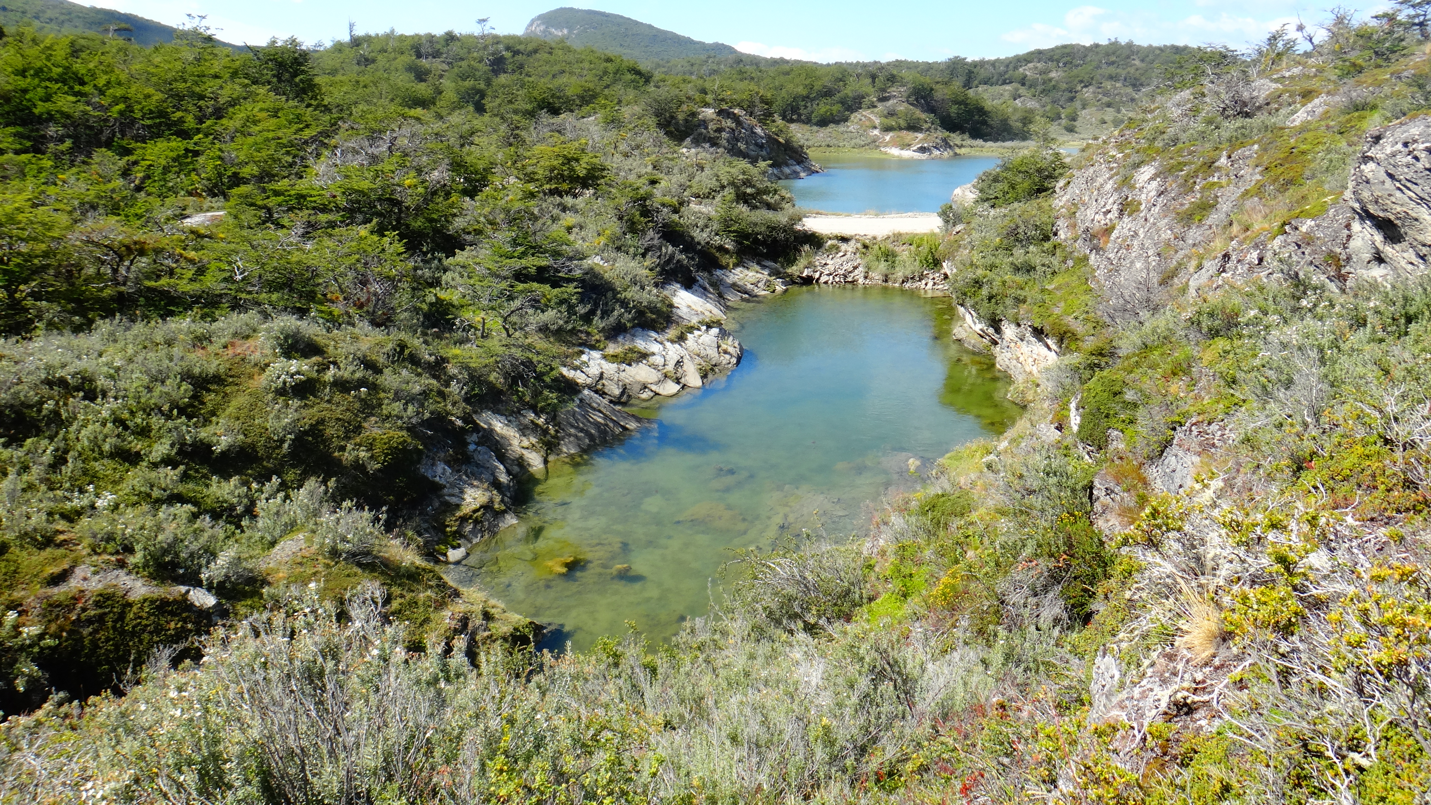 Membros Koslinsky Postado Novembro 28, 2014 Autor Membros Postado Novembro 28, 2014 [t1]Dia 10 - 10/02/2014 – Ushuaia: Parque Nacional Tierra del Fuego e Canal do Beagle[/t1] • Quilometragem do dia: 43• Quilometragem acumulada da viagem: 5.358 • Gasto aproximado do dia: R$ 276,51 Nosso objetivo do dia era, pela manhã, conhecer melhor o Parque Nacional Tierra del Fuego e, à tarde, fazer o passeio de barco pelo Canal do Beagle. O PN Tierra del Fuego tem muitas atrações e diversas opções de trilhas suficientes para preencher vários dias. Nós tivemos basicamente um dia no parque: a tarde do dia anterior em que conhecemos o Lago Roca e caminhamos pela região, e a manhã deste dia, em que chegamos ao fim da Ruta 3 na Bahia Lapataia, visitamos o Mirador Lapataia, a Castoreira, Laguna Negra e sua turfa, Laguna Verde e a Enseada Zaratiegui. O dia estava ensolarado e frio (a previsão era de mínima 5° e máxima 10°C). Saímos do Lago Roca e seguimos a Ruta 3 até o fim. Pouco antes de se chegar ao parque a RN 3 não está mais pavimentada, porém em ótimo estado. A RN 3 começa em Buenos Aires e termina em seus 3.079 km na Bahia Lapataia. O legal deste lugar, é que é o fim da Ruta Nacional 3 indica o fim da estrada onde se pode chegar de carro mais ao sul do mundo! O Mirador Lapataia é composto por passarelas para se admirar a paisagem de vários lugares. Saindo do Mirador Lapataia voltamos de carro um pouco do caminho até a placa que indicava a pequena trilha para a Castoreira. Segundo as placas informativas do parque, em 1946 foram importados castores do Canadá com o intuito de comercializar suas peles. Como estes animais não são nativos da região, não possuem predadores e competidores naturais e assim se reproduziram rapidamente. Eles são considerados uma praga para a região, pois cortam as árvores para se alimentar, gastar seus dentes que crescem constantemente e para construir seus diques. Estes diques prejudicam o parque porque retêm os sedimentos, a matéria orgânica e a água, modificando a dinâmica natural dos rios, arroios e ciclo dos nutrientes, sendo responsáveis pelo desaparecimento de áreas florestais. Não vimos nenhum castor porque ele tem hábitos noturnos. Existe opção de passeio para avisar os castores. Depois de visitar a Castoreira voltamos a RN 3 mais um pouco de carro e paramos para visitar a Laguna Negra. Para chegar ao mirante da Laguna Negra é necessário percorrer uma trilha de uns 15 minutos. Esta e as outras trilhas do parque são muito bonitas e bem organizadas. A Laguna Negra é na verdade um turbal (em português, turfa) em formação. A turfa é composta de matéria orgânica parcialmente decomposta. Ao morrer, a vegetação se decompõe muito lentamente por causa das baixas temperaturas, da falta de oxigênio e acidez da água e solo, os quais impedem a ação das bactérias e organismos decompositores. Por causa da lentidão na decomposição, é possível, através da turfa, colher material para estudo com informações de milhares de anos. Uma placa da Laguna Negra informava que há turfa de até 14 mil anos. Seguindo pela mesma trilha do Mirador da Laguna Negra fomos até a Laguna Verde. A paisagem é magnífica. Na volta para a cidade de Ushuaia, antes de sair do parque, visitamos a Enseada Zaratiegui. Nela vemos o Beagle, a Ilha Redonda e ao fundo o Chile (ilhas Navarino e Hoste). Nesta enseada se encontra a Unidad Postal Fin del Mundo, que é a unidade postal ativa mais ao sul do mundo. Lá, além de comprar suvenir, você pode enviar cartões postais e carimbar seu passaporte como lembrança da chegada a este ponto (15 pesos por carimbo). Próximo das 14 horas, saímos do parque e seguimos para o Porto de Ushuaia para o nosso passeio pelo Beagle marcado para as 15 horas. No caminho almoçamos um sanduíche. No dia anterior tínhamos contratado o passeio com uma agência da Av. San Martin que somente intermediou a venda da agência Canoero Catamaranes, que está localizada em uma das cabaninhas ao lado da entrada do Porto de Ushuaia. Por causa desta intermediação tínhamos um voucher que precisava ser trocado pelo ingresso na Canoero Catamaranes. Ao chegar lá, um senhor, acredito que seja o dono desta agência, nos ofereceu sem custo adicional a troca do nosso passeio contratado, sem a pinguineira, para o passeio com a pinguineira. A diferença era de 200 pesos por pessoa (que não pagamos) e mais duas horas de duração. Que sorte a nossa! Ao entrar no Porto de Ushuaia é necessário pagar uma taxa de 10 pesos por pessoa. O barco saiu pouco depois das 15h30. O passeio começa com a vista de Ushuaia e suas montanhas, com destaque para o Glaciar Martial ao fundo. Meia hora depois, contemplamos a Isla de los Lobos repleta de cormoranes e leões marinhos. Saindo da ilha, poucos minutos depois avistamos o Farol Les Eclaireurs, também conhecido como o Farol do Fim do Mundo, que sinaliza aos navegantes a entrada da Baía de Ushuaia. Saindo do farol, depois de 30 minutos, chegamos à Pinguinera da Isla Martillo. O barco para bem encostado à praia, então visualizamos bem de perto milhares dos típicos Pinguins de Magalhães e alguns Pinguins Gentoo (ou Papua), maiores e ainda mais estabanados que os de Magalhães. O retorno levou quase uma hora incluindo uma parada para uma atração surpresa da natureza: baleias francas. Vimos uma baleia com seu filhote! De novo, muita sorte, pois não é comum o aparecimento das baleias nessa época do ano. Uma dica para o passeio é levar um binóculo. Nós levamos um bem simples que compramos no Paraguai. Deu pra ver de perto os detalhes dos lugares visitados. Pra finalizar, ainda vimos um fim de tarde incrível e um frio de congelar até o pensamento. Neste dia não sabíamos onde passar a noite. Como estávamos muito cansados não estávamos pensando em acampar (sabíamos da existência do Camping Pista del Andino que muitos indicam). Então procuramos hostels e pousadas, mas nã