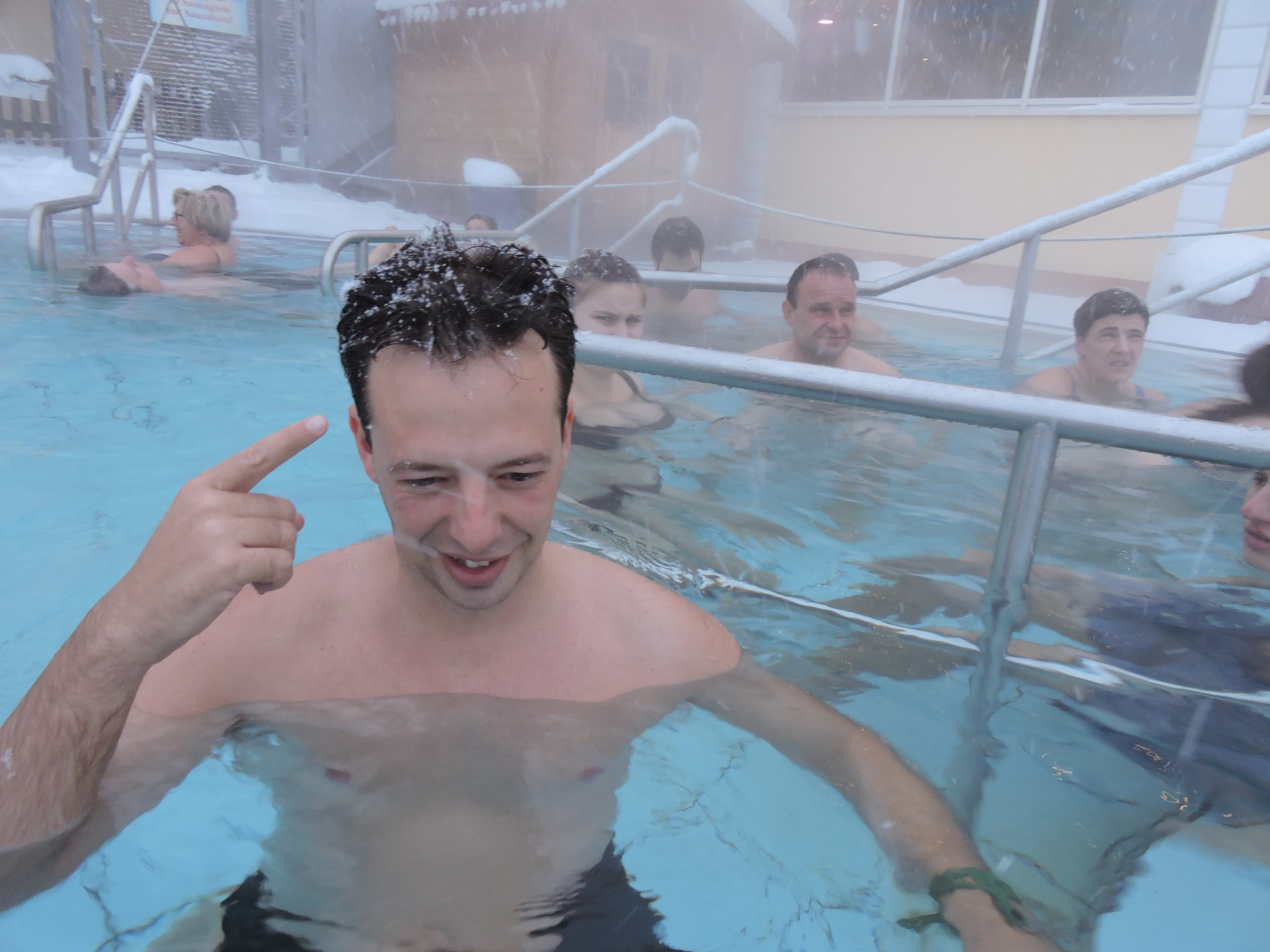 Membros Cris e Fran Postado Março 30, 2015 Autor Membros Postado Março 30, 2015 29/12/2014 Fomos no Kristall Thermes – 12,50 euros por pessoa para 2 horas - http://www.kristalltherme-schwangau.de/Infos/infos.php?d=1 . Lugar incrível, SPA junto com piscinas termais. Almoçamos um prato com massa e frangos e fomos para as piscinas, agora começa a parte engraçada. Chegando no vestiário era um entra e sai de gente o tempo todo, até que eu vejo um homem andando peladão com o tico de fora. Me segurei para não gritar de rir, daí começou a sessão de homens e mulheres pelados pra lá e pra cá como se estivessem em casa. Os corpos todos brancos com gordura localizada na barriga e culotes, na minha visão eram feios. Coloquei meu biquíni e me senti uma E.T., além de eu ser bronzeada e pequena tenho as coxas grossas daí já viu né! Mas logo fui me acostumando com as olhadas e me entreguei ao calor das águas quentes das piscinas. Haviam 7 piscinas e cada uma com uma propriedade diferente. Uma com 12% de sal, outra com 0,5% de sal e outra com 0,3%. Havia uma com cromoterapia e menta na água, dizia que auxilia no emagrecimento. Outra caía água através de cristais presos em um pilar. Na parte de cima do SPA é uma área de nudismo, bem que eles ficam pelados em qualquer lugar. O Cris não se importou de ficar peladão no vestiário. Na piscina principal teve aula de hidroginástica bem bacana. No dia 29/12 era aniversário da minha irmã caçula e para estarmos presentes no dia dela brindamos com uma cerveja alemã gravando um vídeo bem legal e enviamos. Fussen Fussen Fussen Citar
