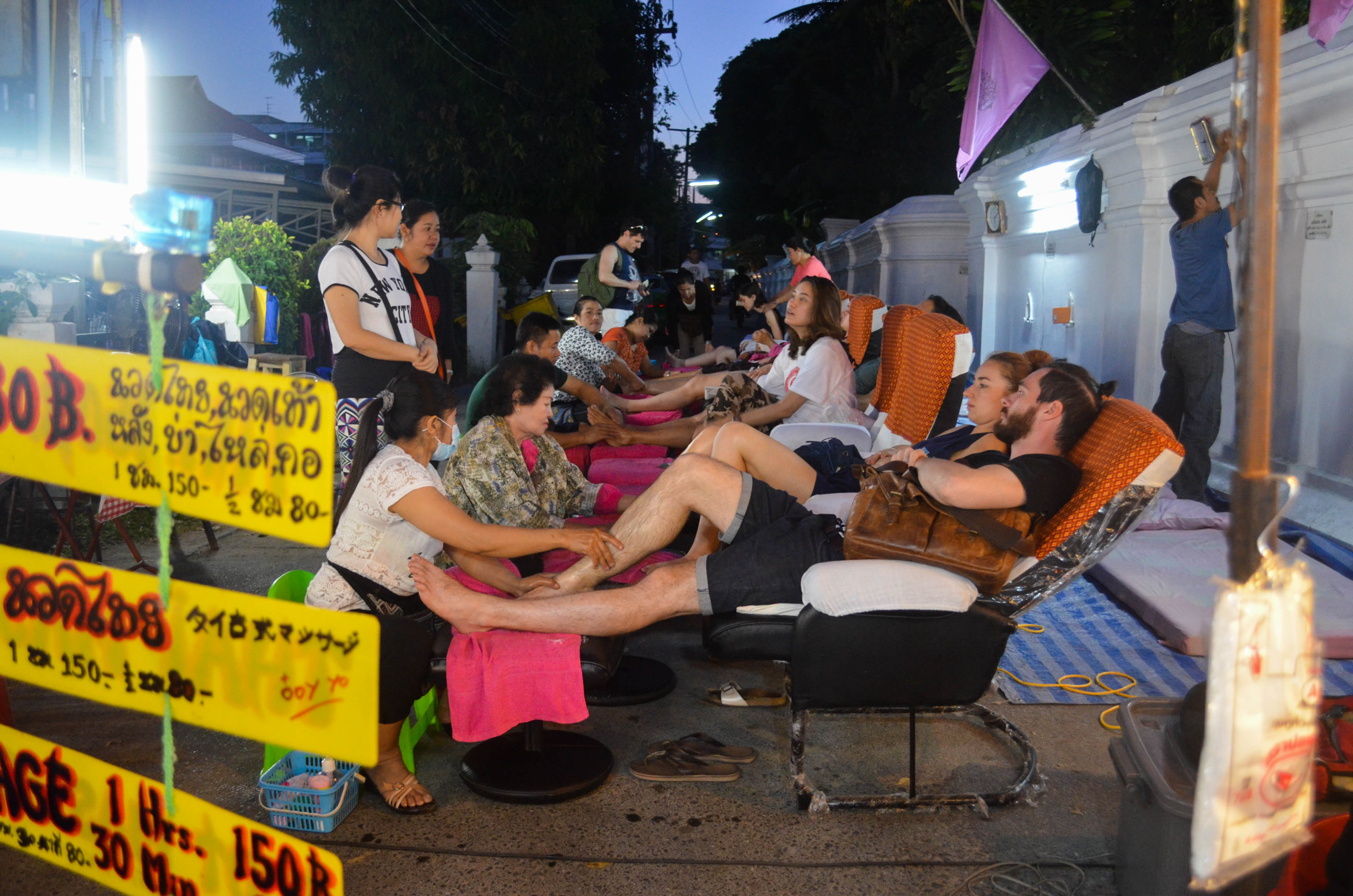 Membros Fabiano Gauss Postado Março 4, 2016 Autor Membros Postado Março 4, 2016 DIA 4 – CHEGADA EM CHIANG MAI E SUNDAY MARKET. Depois de mais um café da manhã no Seven Eleven, perdemos algum tempo arrumando as malas pois nosso voo estava marcado para o meio dia com destino à Chiang Mai. Combinamos com o mesmo taxista que nos levou no dia anterior para o Floating Market de nos levar para o aeroporto Don Mueang, de onde saia nosso voo. Apesar de estar um pouco magoado com esse camarada, aceitei ir com ele, pois prometeu fazer a viagem com o taxímetro ligado. Check-out feito com rapidez no hotel, e o taxista já nos esperava sorridente pontual às 10hs da manhã, horário combinado. Taximetro ligado, partiu aeroporto. Depois de aproximadamente 30 minutos, chegamos ao nosso destino e pagamos os 220 Baht que o taxímetro marcou. Curiosidade quanto aos taxis: a “bandeirada” dos táxis Taillandeses é de 35 Baht, e todos sempre estão com ar condicionado ligado. O aeroporto Don Mueang, os Tailandeses falam Dan Muan, é o “segundo” aeroporto de Bangkok, menor que o Suvarnabhumi. É do Don Mueang que saem os voos das companhias Low Cost. O aeroporto é organizadinho. Chegamos 1h30 adiantados, não há necessidade de tanta antecedência para voos domésticos. Logo identificamos os guichês da Nok Air, entramos na fila de quem já tinha feito o chekin online (fizemos o mesmo pelo celular) e rapidinho despachamos as malas e fomos liberados. Em relação a franquia de bagagem da Nok Air: É permitido 7 kg de bagagem de mão para cada passageiro além de 15 kg para despachar, isso era o básico. Já tinha ouvido falar que essas Low Cost eram baratas mas que por outro lado você não tinha direito a despachar nada. Na Nok Air podíamos despachar sim, sem valor adicional, tanto que despachamos nossas malas, pois já estavam com mais de 7 kg cada. Futuramente viajaríamos com a Thai Lion e Air Asia. A Thai Lion Air, tem a mesma franquia de bagagem que a Nok Air, já a Air Asia...uma porcaria viu, só era permitido os 7 kg de bagagem de mão. O Voo foi tranquilo e rápido, menos de 1 hora. Eles serviram um saquinho com um pãozinho de feijão doce e uma água. No aeroporto de Chiang Mai, o translado de táxi para a cidade era tabelado, 150 Baht, não por pessoa, o carro. Ainda saímos do aeroporto para ver se tinha van, ou ônibus, mas não vimos nada. Acabamos pegando um táxi mesmo que nos deixou na porta do nosso hotel. Estava desconfiado com o Thana Hotel pois foi muito barato, 4 noites 220 reais. Mas não tenho o que reclamar, tivemos o que queríamos. Quarto com banheiro privado, ar condicionado, tudo funcionando. O quarto foi limpo diariamente, toalhas de banho trocadas diariamente, funcionários atenciosos. Só um porém em relação a estrutura do quarto, a pia que em uma casa normal é dentro do banheiro, ficava na varanda do quarto. O Hotel tem uma piscina bonitinha, mas que nem usamos. Não foi cobrado nenhum valor de caução. A localização do hotel também é boa, em uma ruazinha super calma, e apesar de não ficar dentro do quadrado murado da cidade, que muita gente diz que é uma boa região para ficar, ele ficava à 4 minutos de caminhada do Tha Phae gate, uma das entradas desse quadrado murado. E ficava também a uns 7 minutos do Night Baazar, mercado noturno em Chiang Mai. Eu falei no início do relato sobre onde ficar em Chiang Mai, tem um mapa inclusive. Mas resumindo, creio que se você se hospedar dentro do quadrado, ou na região dos gates, você estará bem localizado. O clima em Chiang Mai é bem mais fresco do que em Bangkok. A cidade tem uma vibe totalmente diferente que a metrópole Bangkok, o clima por aqui é mais de interior. Era domingo, e já sabendo disso, programamos para este dia apenas a visita ao Sunday Market, feira de rua que acontece apenas aos domingos em Chiang Mai, das 15hs até tarde da noite. Caminhando em direção ao Sunday Market começamos a perceber que os preços em Chiang Mai eram melhores que em Bangkok: 1 kg de roupa na lavanderia, em Bangkok 40 Baht, em Chiang Mai 30 Baht. O câmbio em Chiang Mai estava com melhor cotação. Agora atenção!!! Meia hora de Foot Massage por 80 Baht, 1 hora por 150 Baht, na rua do Sunday Market. Foi o melhor preço de massagem que vi em toda a Tailândia. O Sunday Market começa no Tha Phae gate e termina no Templo Wat Phra Singh, ou vice e versa. Cara, que feira animal, gigante, muitas coisas baratas e diferentes. Vende de tudo. Muitos artistas de rua. Muuuuita gente, muita, muita gente. Você anda trombando o tempo todo, principalmente conforme vai anoitecendo. Havia muito turista por lá, mas o negócio é que tinha muitos locais também. Vi muitos casais tailandeses passeando na feira por exemplo. Por lá você encontra uma porção de comidas diferentes que você não terá idéia do que é. Essa rua onde acontece o Sunday Market me impressionou pela quantidade de bares e restaurantes com decoração arrojada e moderna, dava vontade de sentar e comer em todos. Na verdade nesta rua a oferta de opções para comer é imensa, e acaba sendo triplicada no domingo com as opções das barraquinhas do Sunday Market. Esta rua também me impressionou pela quantidade de templos, pequenos, como se fossem igrejas de bairro sabe, mas bonitos. Nem me lembro exatamente o que comemos, sei que experimentei um pouquinho de muitas besteirinhas alimentícias que vendia por lá. Dei uma moeda de doação para uns ceguinhos que cantavam e tocavam músicas locais e no meio da rua. Tinha também uma Tailandesa ousada cantando Celine Dion. Comprei algumas camisetas regatas com estampas divertidas, já me preparando para as ilhas, por 90 Baht cada. Fiz meia hora de foot massage por +- 8 reais. Foi uma tarde/noite incrível. Voltamos destruídos para o hotel de tanto andar para lá e para cá no meio de tanta gente. A primeira impressão da cidade foi maravilhosa, e já posso adiantar que fiquei apaixonado por Chiang Mai. 