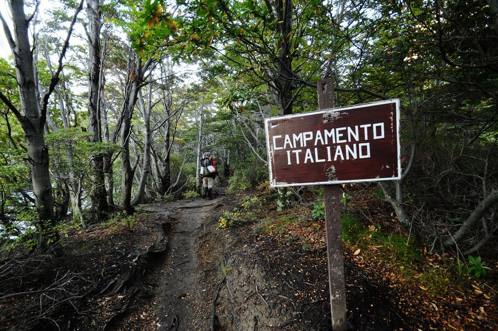 O percurso no começo é bem limpo, aberto e com pouca variação de altitude. Inclusive tudo parecia tão óbvio que cometemos um erro primário. Não observamos a placa que apontava para o Acampamento Las torres e fomos em outra direção. Eu explico: como o trecho até o camping é a última perna do "W" isto significa dizer que ele também é facultativo ou seja, você pode, caso queira, passar por ele e seguir em frente.