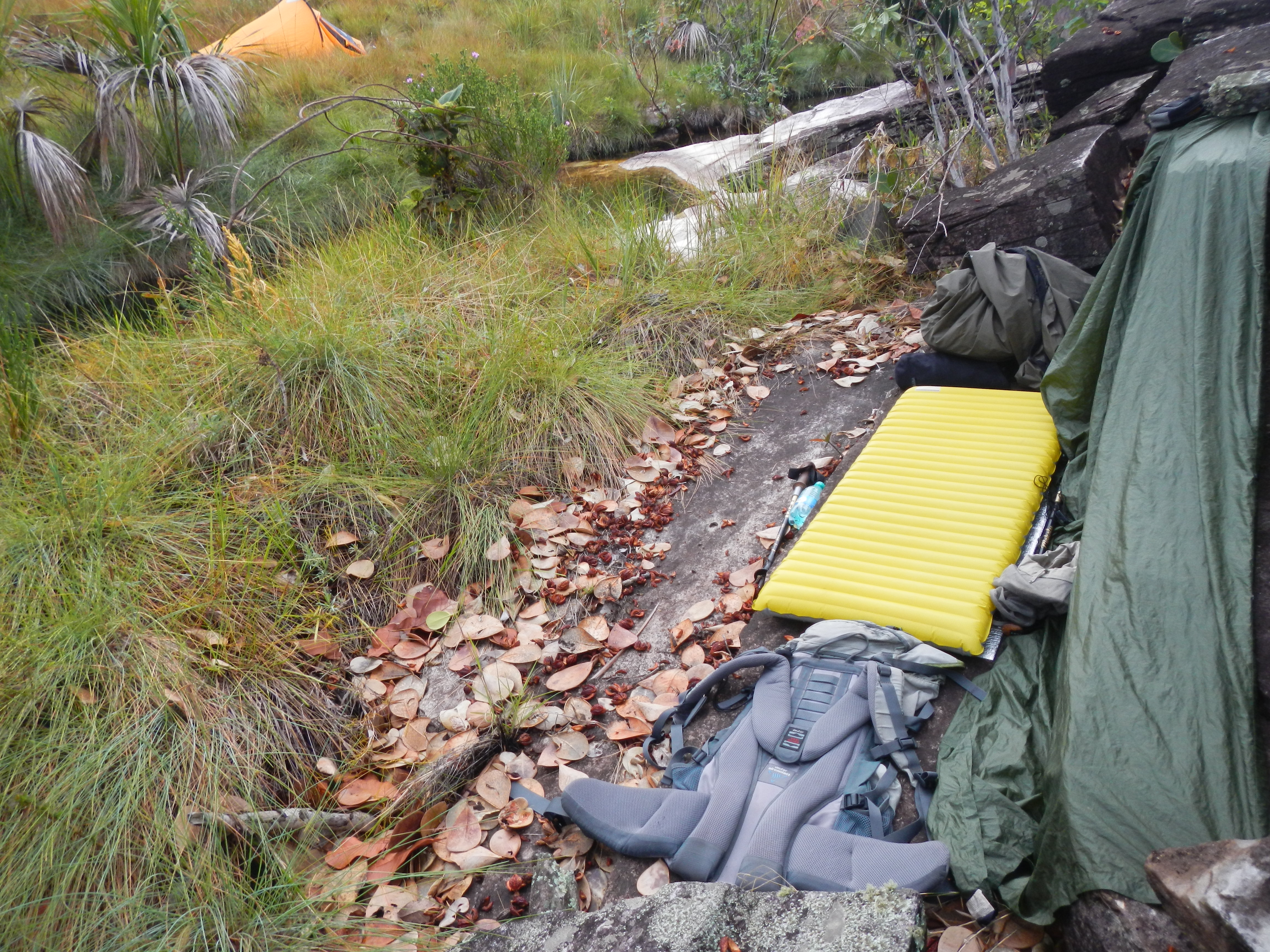 Membros de Honra peter tofte Postado Novembro 26, 2013 Membros de Honra Postado Novembro 26, 2013 Prezados: Tenho pouca experiência de bivaque. Posto algumas fotos. Bivaque perto da Cidade de Pedra, em Cocalzinho/GO. Clima seco, ideal para uso do saco de bivaque (pouca ou nenhuma condensação). A tarpa/poncho verde (Integral designs, em silnylon) está de prontidão ao lado do saco de dormir, caso chova durante a noite. Na última foto o saco de bivaque Rab Survival Lite com o saco de dormir dentro. Abaixo um bivaque entre o Morro do Getúlio e a encosta do Caratuva, perto da bifurcação das trilhas para o Caratuva e para o PP, em Antonina, Paraná. Tempo ruim, névoa, chuva constante e muito vento. De noite 9,7º C. Passei frio. Condensação no saco (de bivaque!). A barraca ao lado é a Lightwave trek0 do Edver. Usei o poncho para fazer o abrigo. Mas valeu a experiência. Vivendo e aprendendo! Abs, Peter Citar